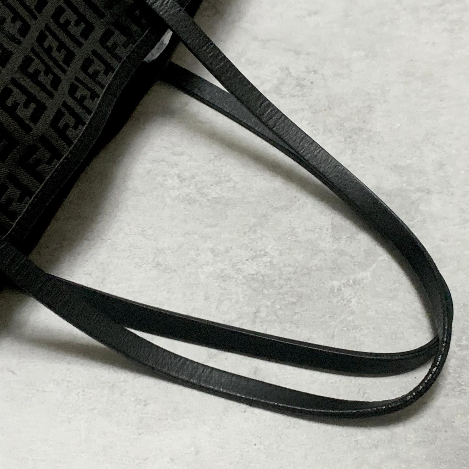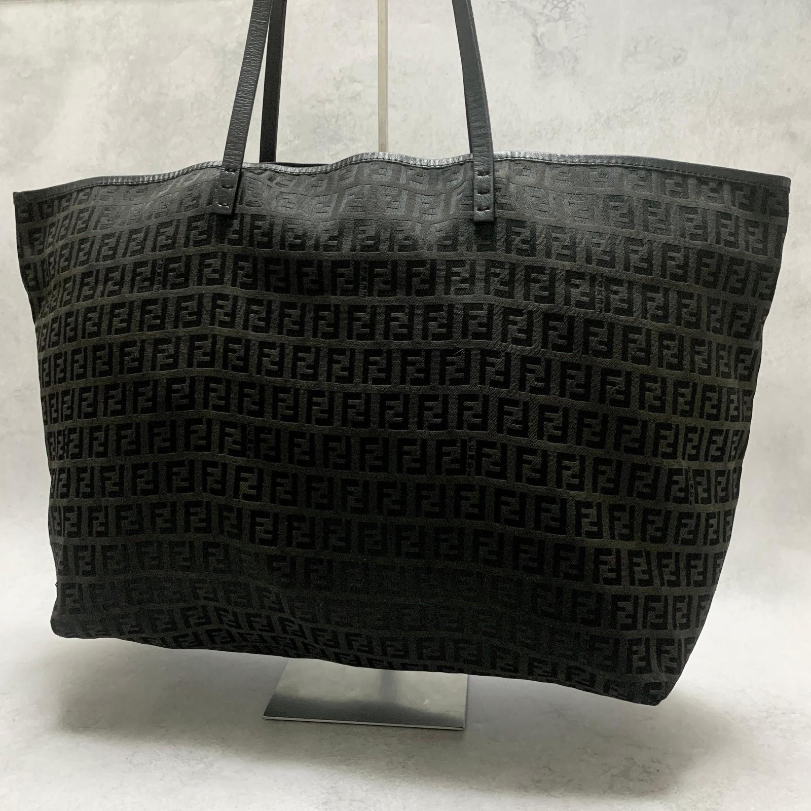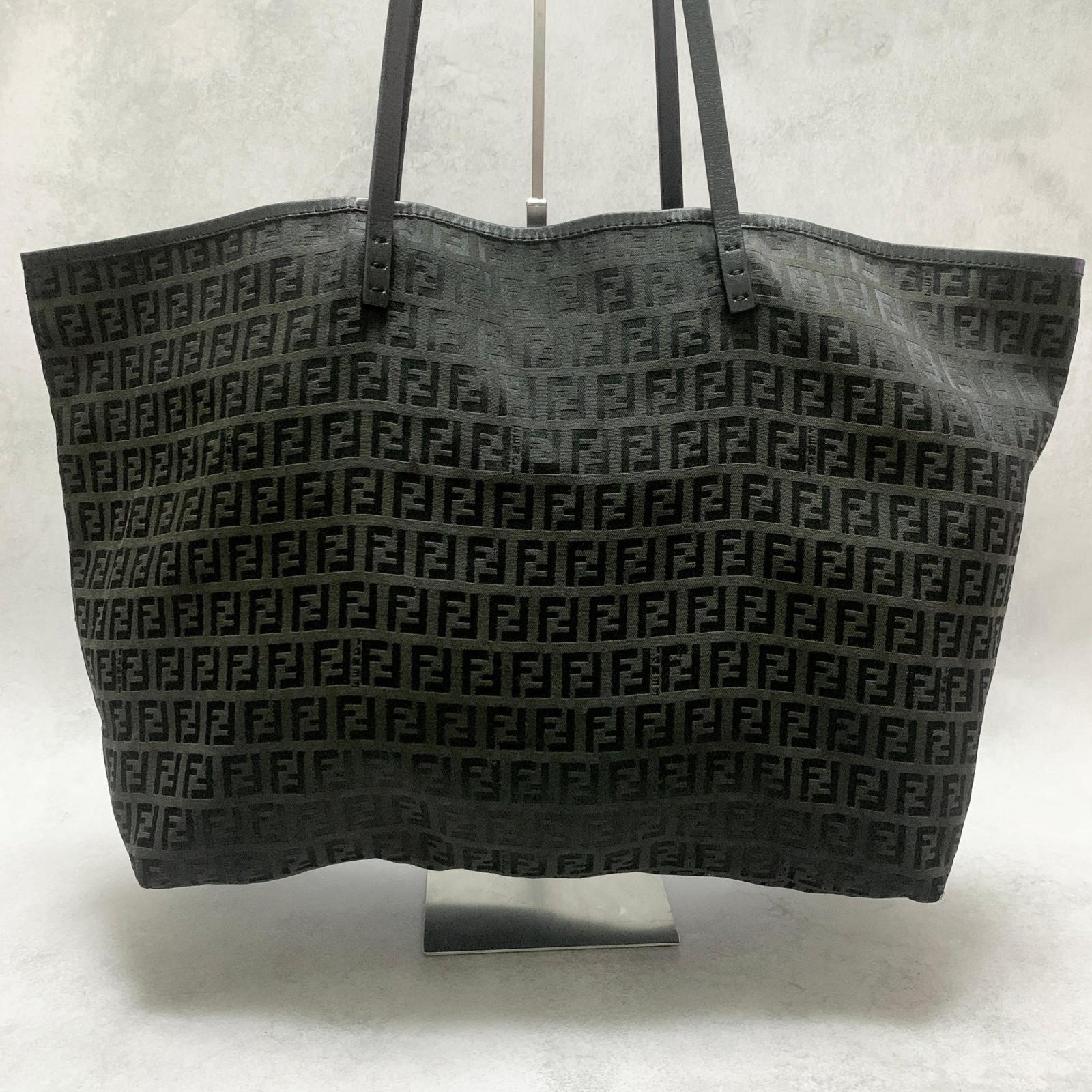 FENDI Bag FF Zucchino With Pouch Hand Tote Purse Canvas Black Used Authentic