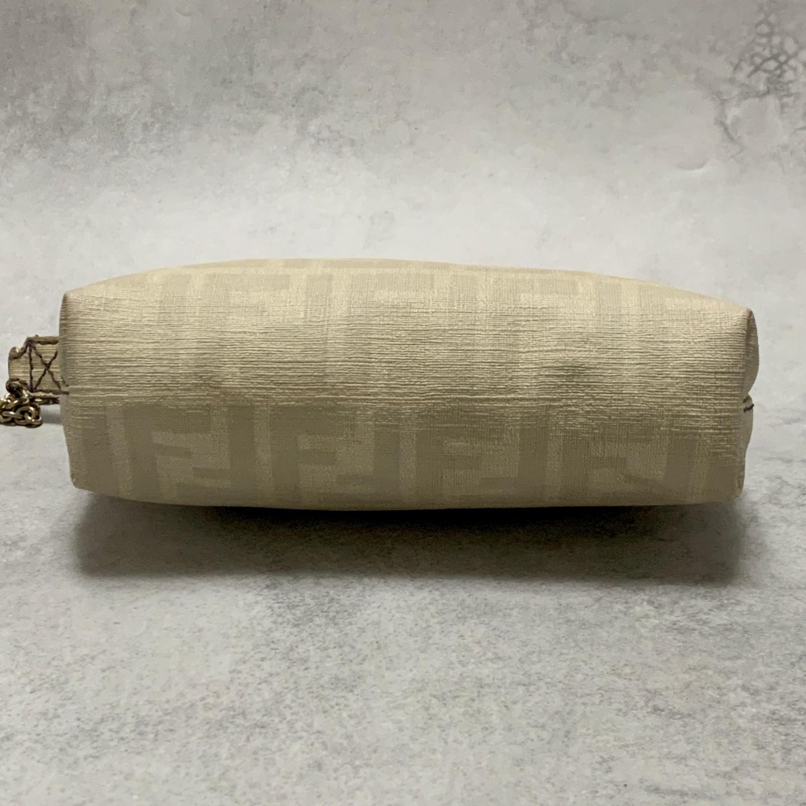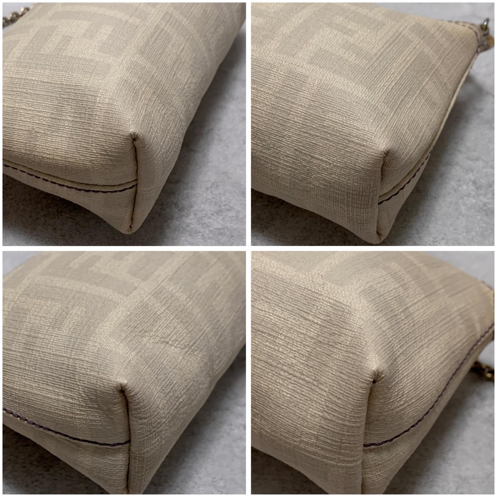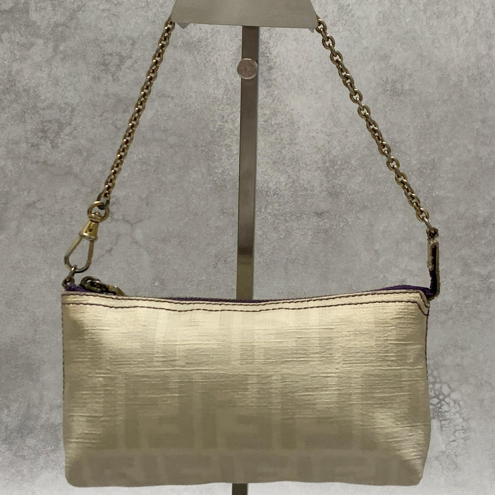 FENDI Bag Nano Baguette Chain Hand Tote Purse Leather White Gold Authentic