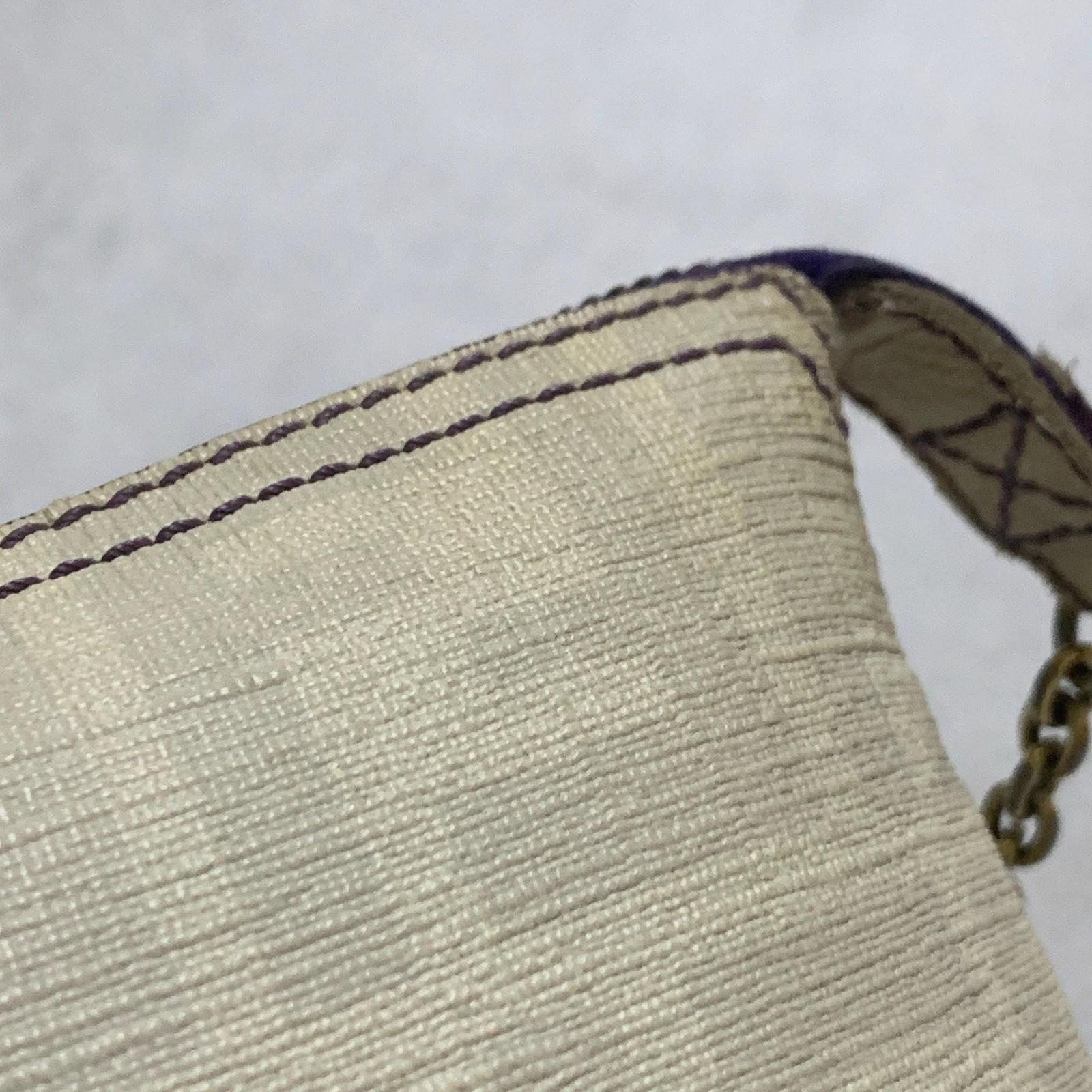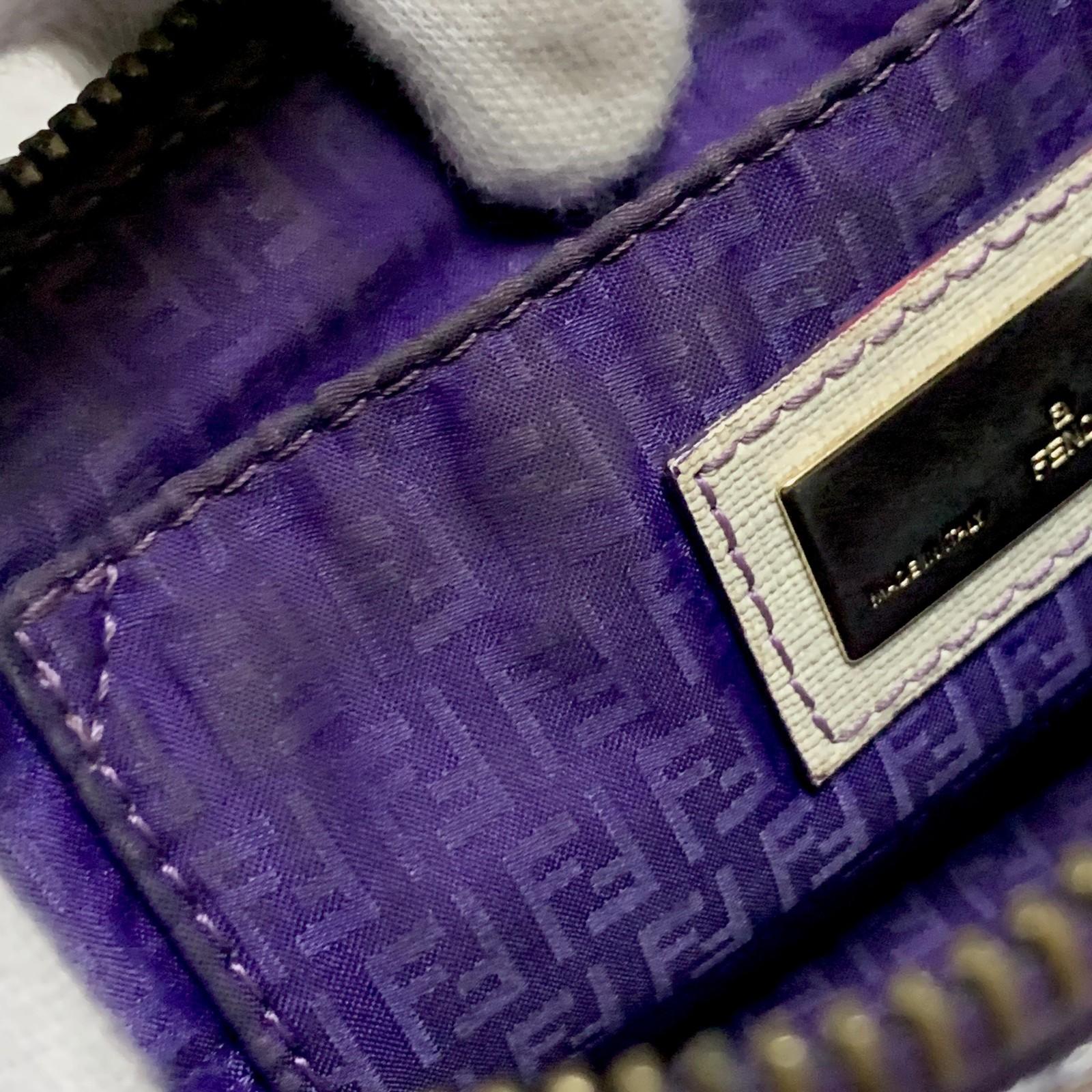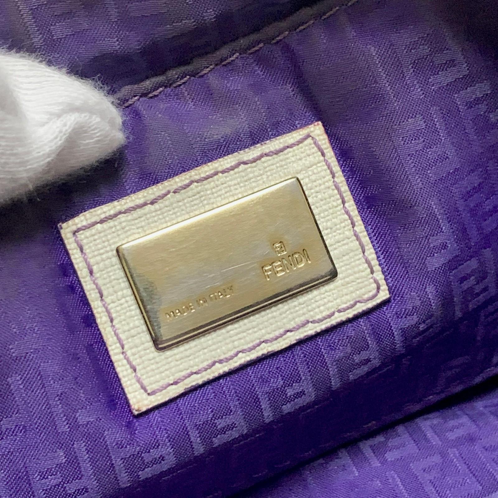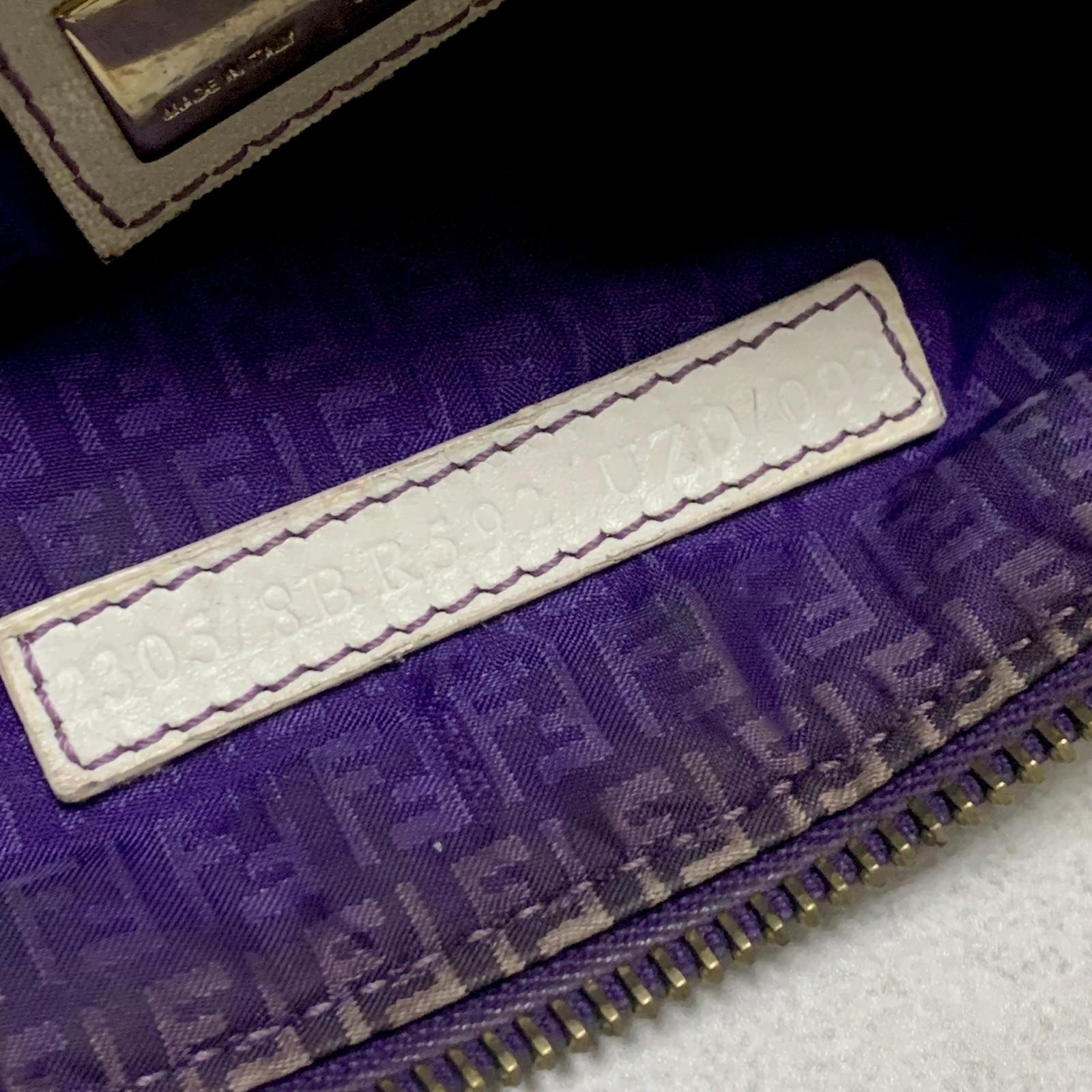 FENDI Bag Nano Baguette Chain Hand Tote Purse Leather White Gold Authentic