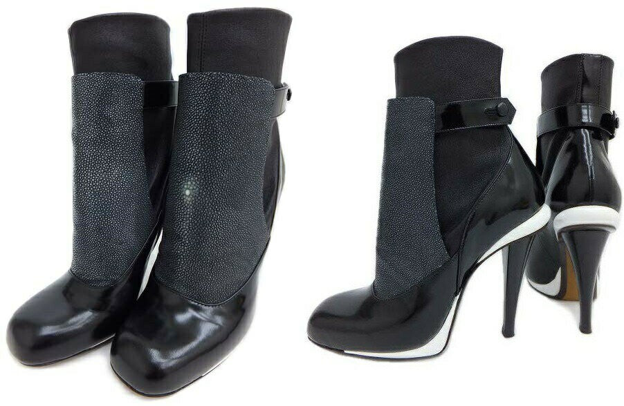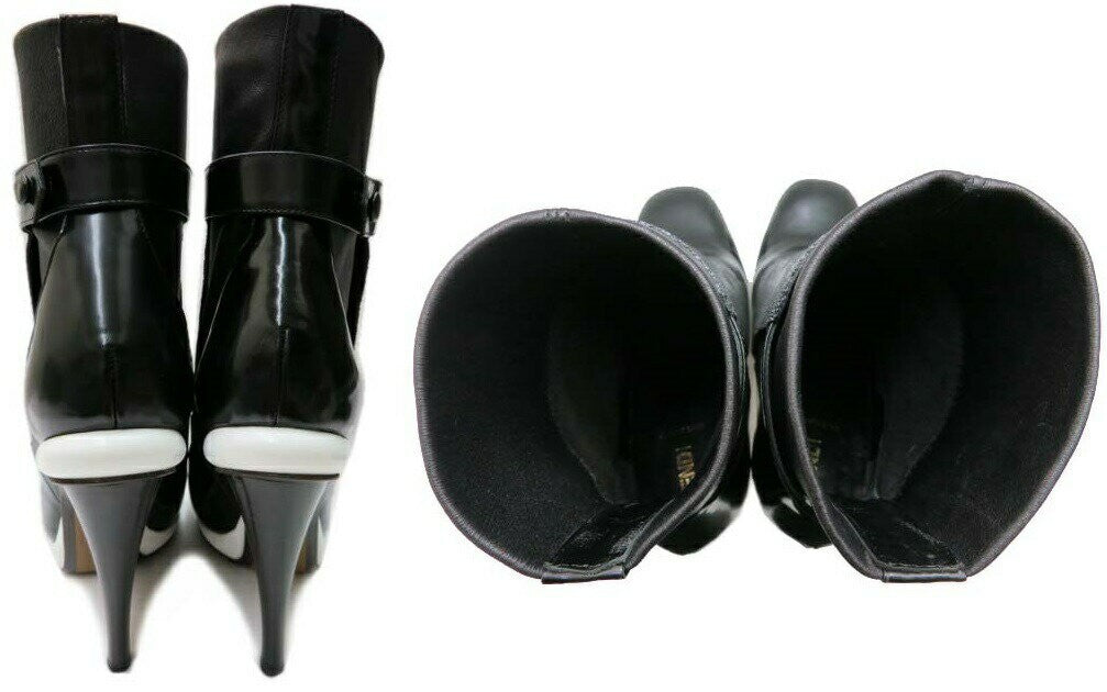FENDI Boots Shoes EU 37.5 US 7.5 Leather Razza Black White Authentic