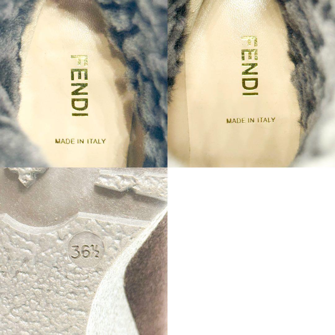 FENDI Boots Shoes FF Zucca EU 36.5 US 6.5 Suede Fur Brown Authentic