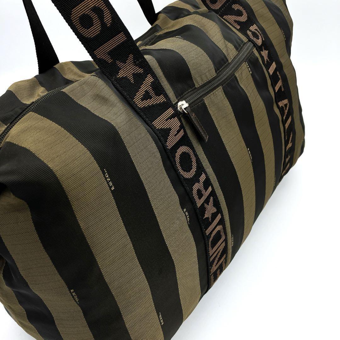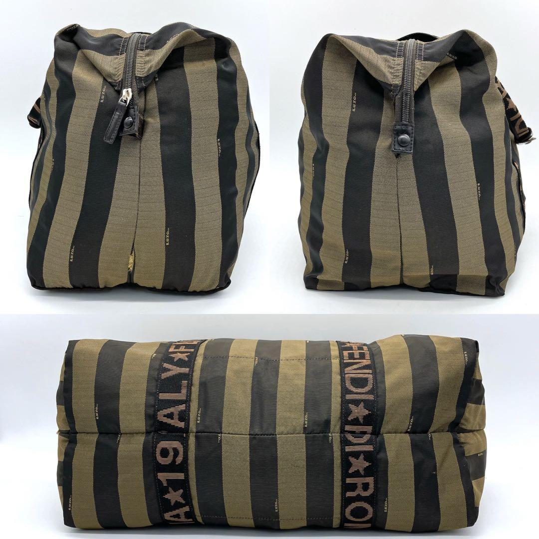 FENDI Boston Bag Logo Pecan Nylon Black Brown Authentic