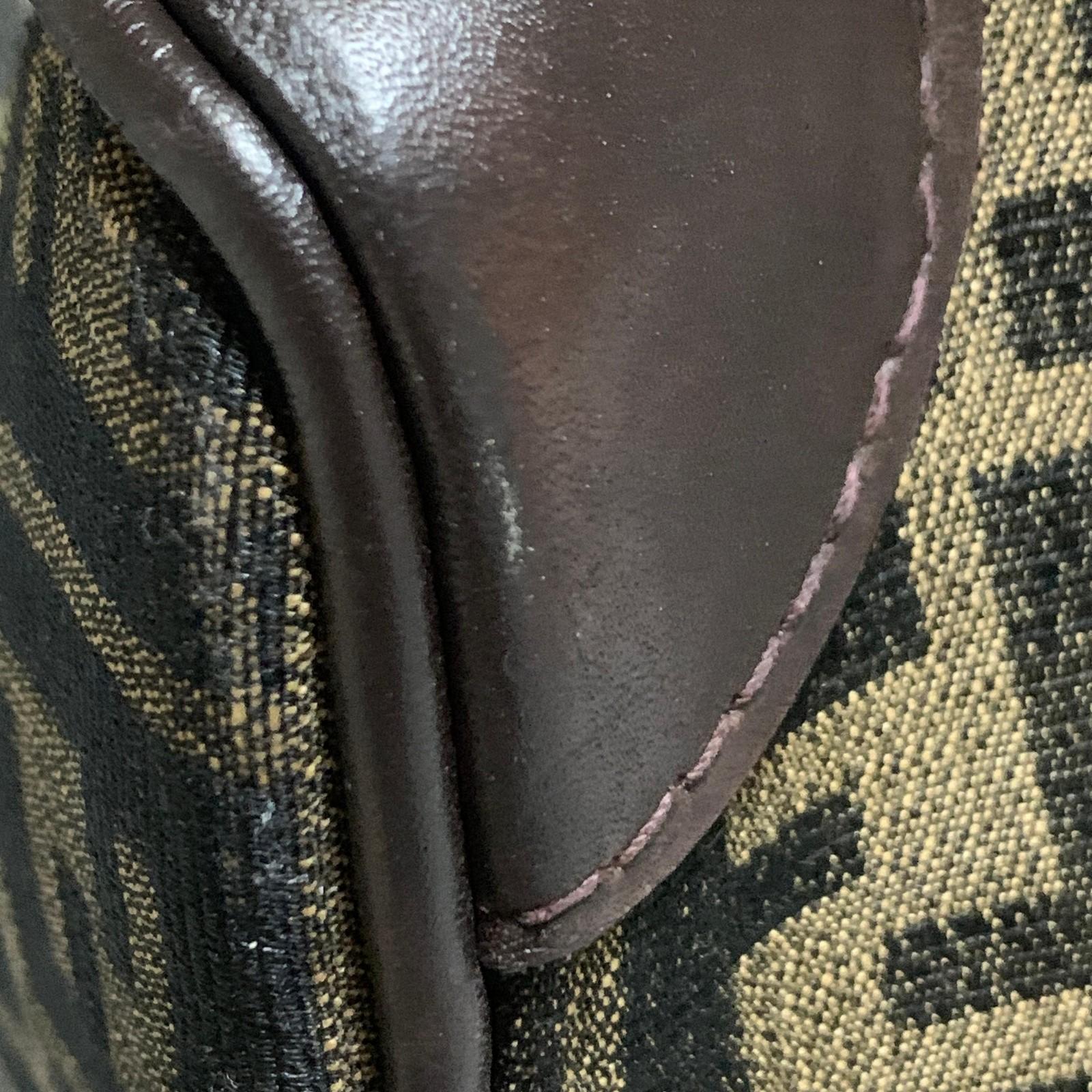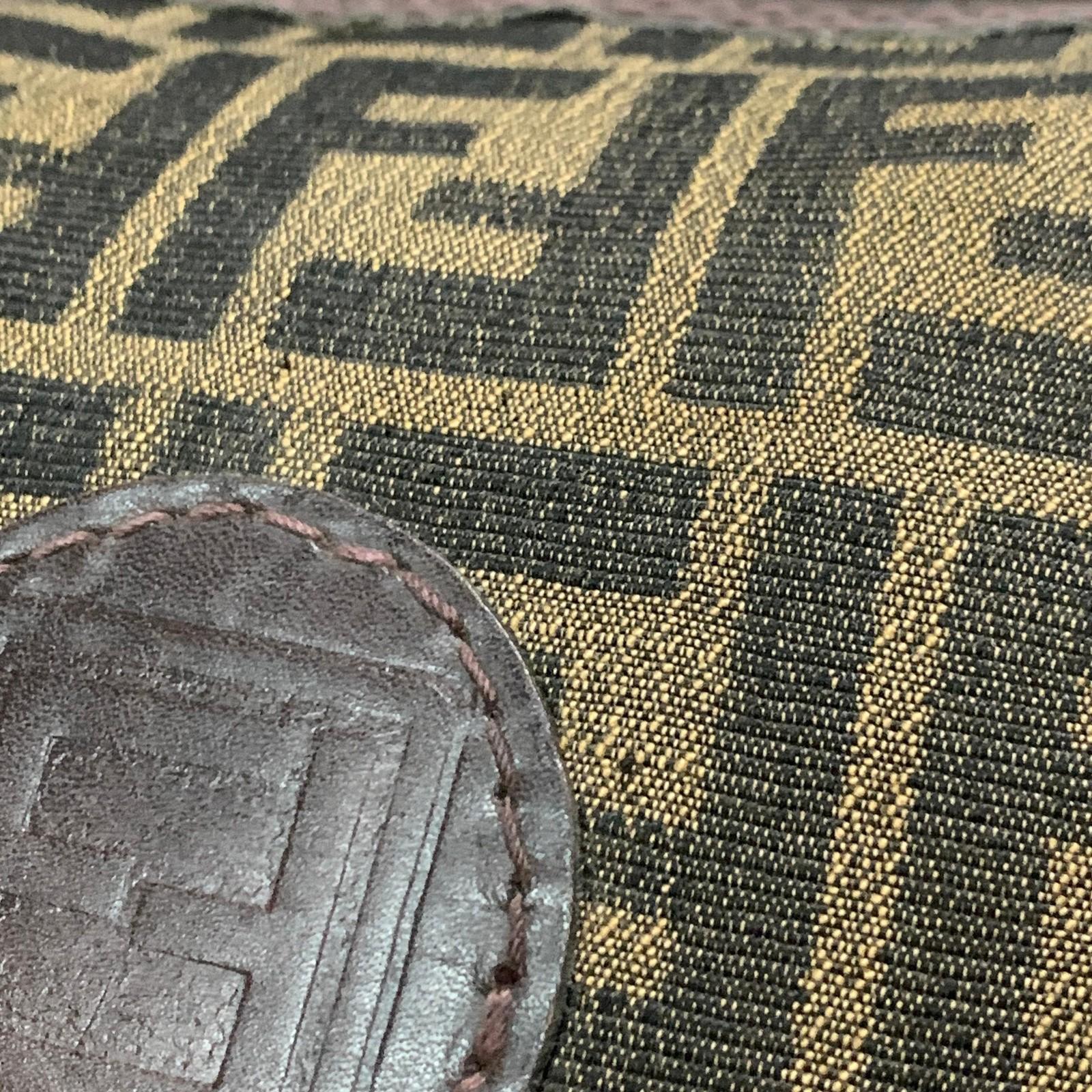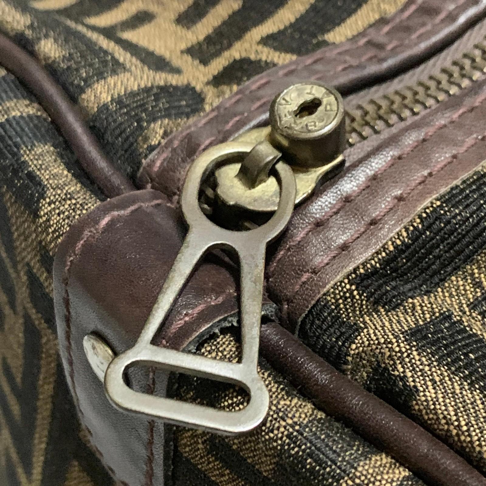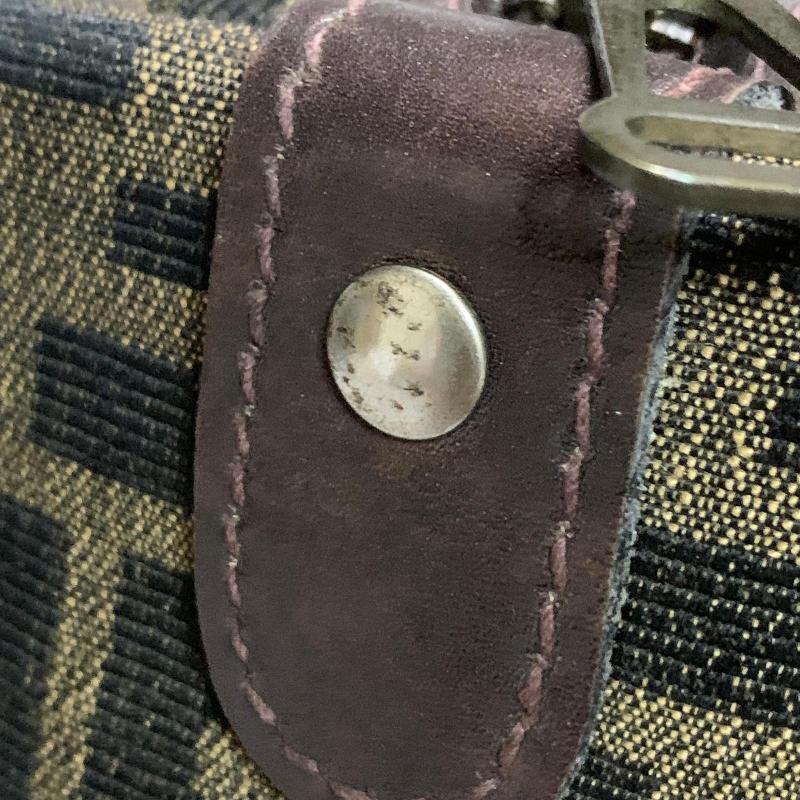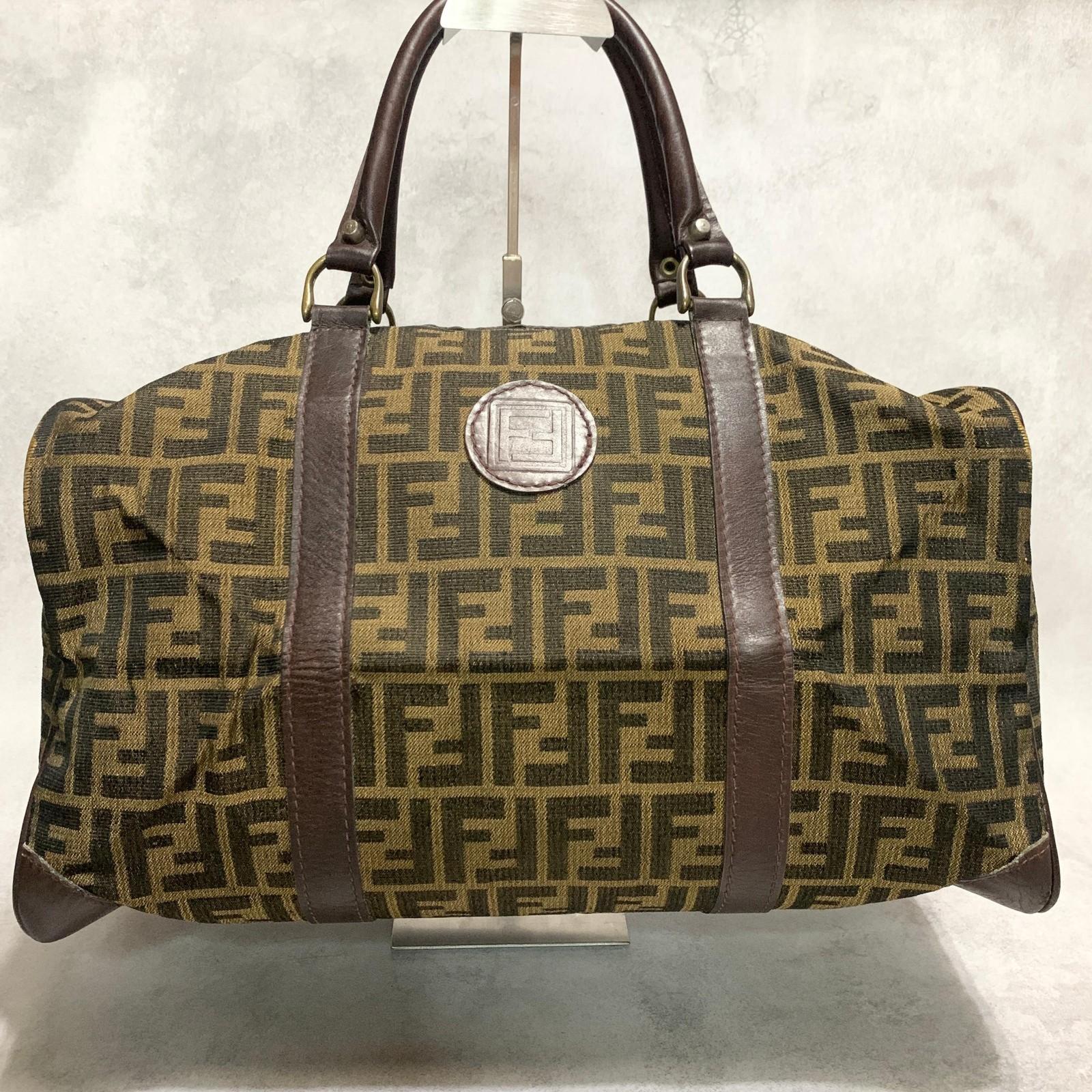 FENDI Boston Bag Zucca Canvas FF Handbag Tote Purse Brown Used Authentic Unisex