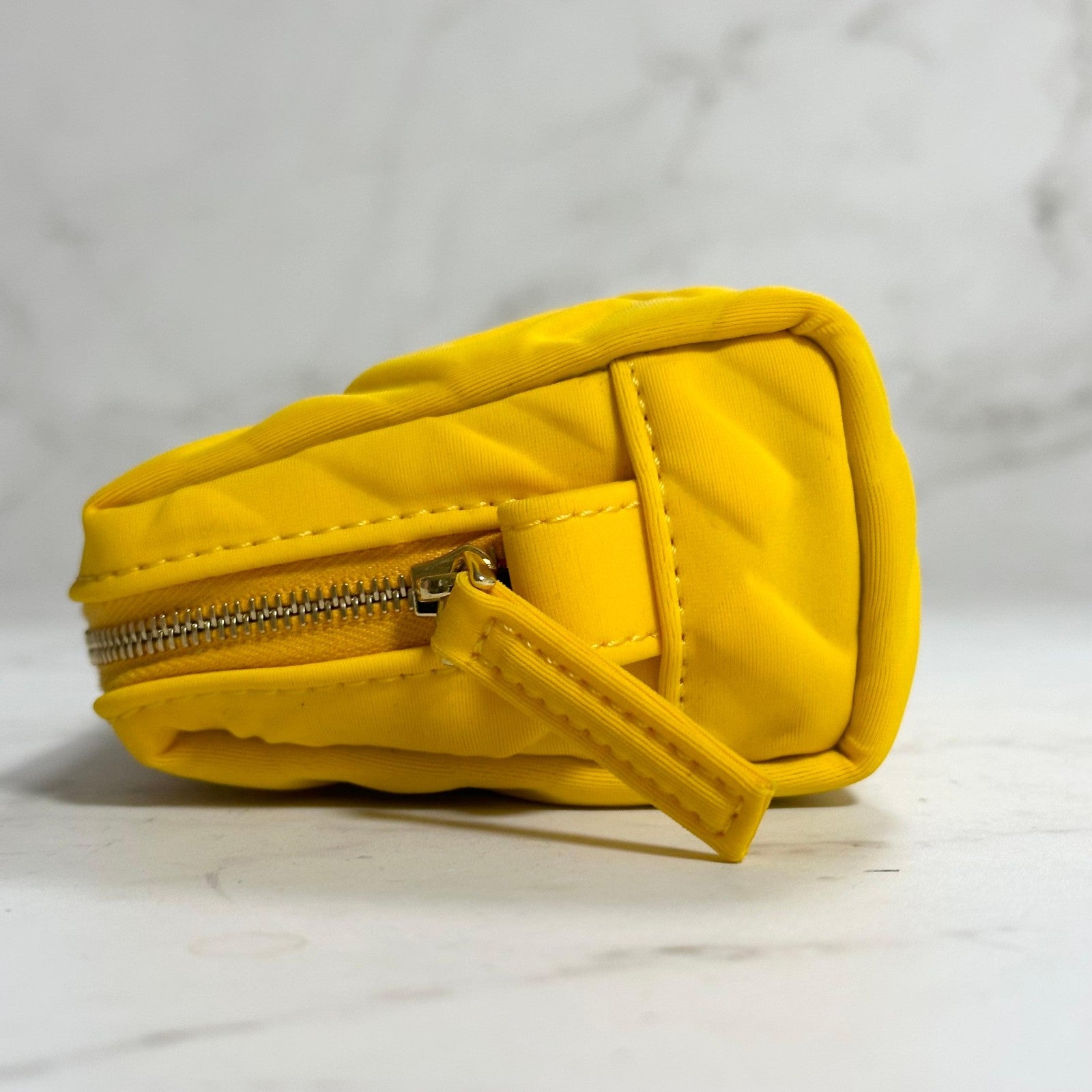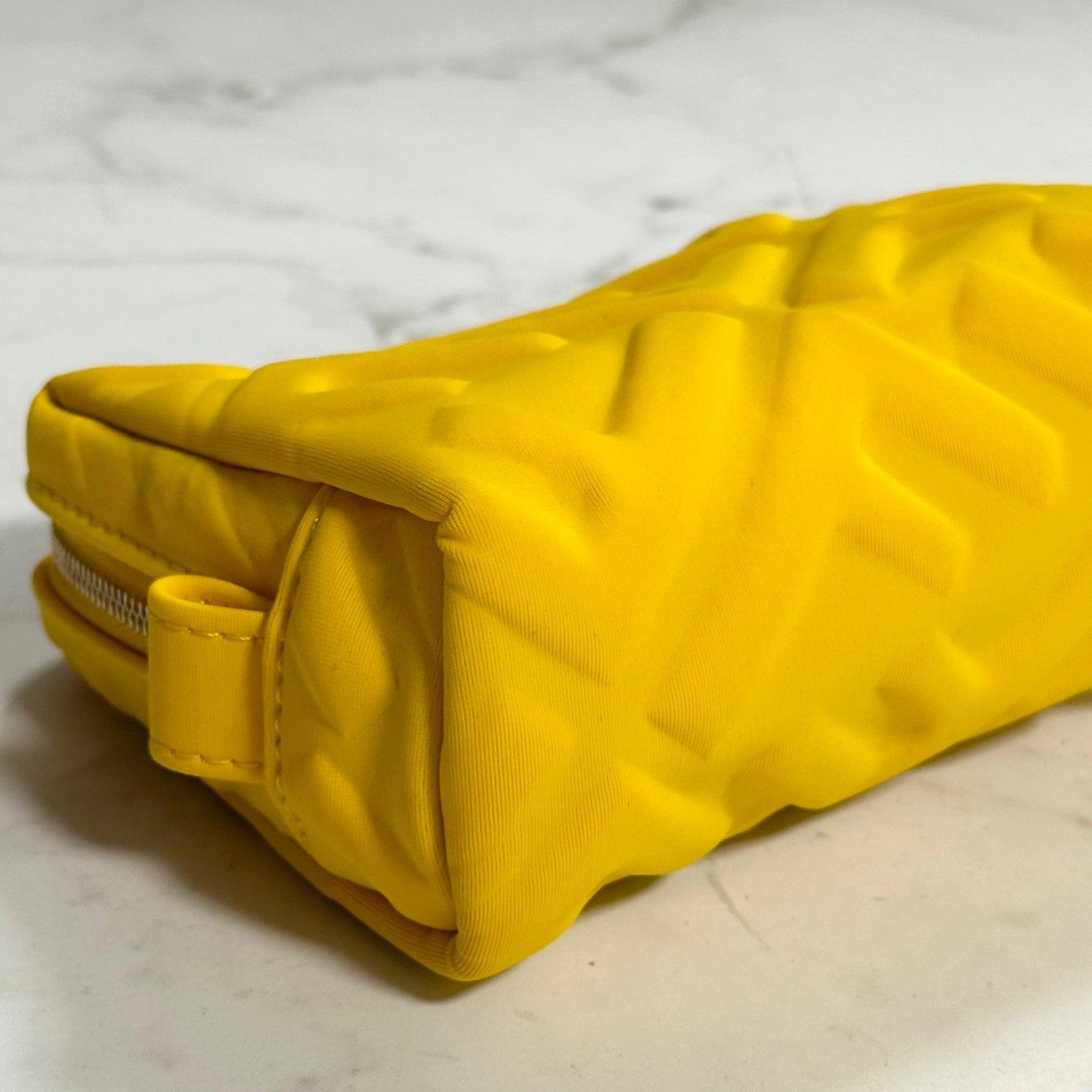 FENDI Cosmetic Pouch Purse FF Embossed Zucca Yellow Authentic