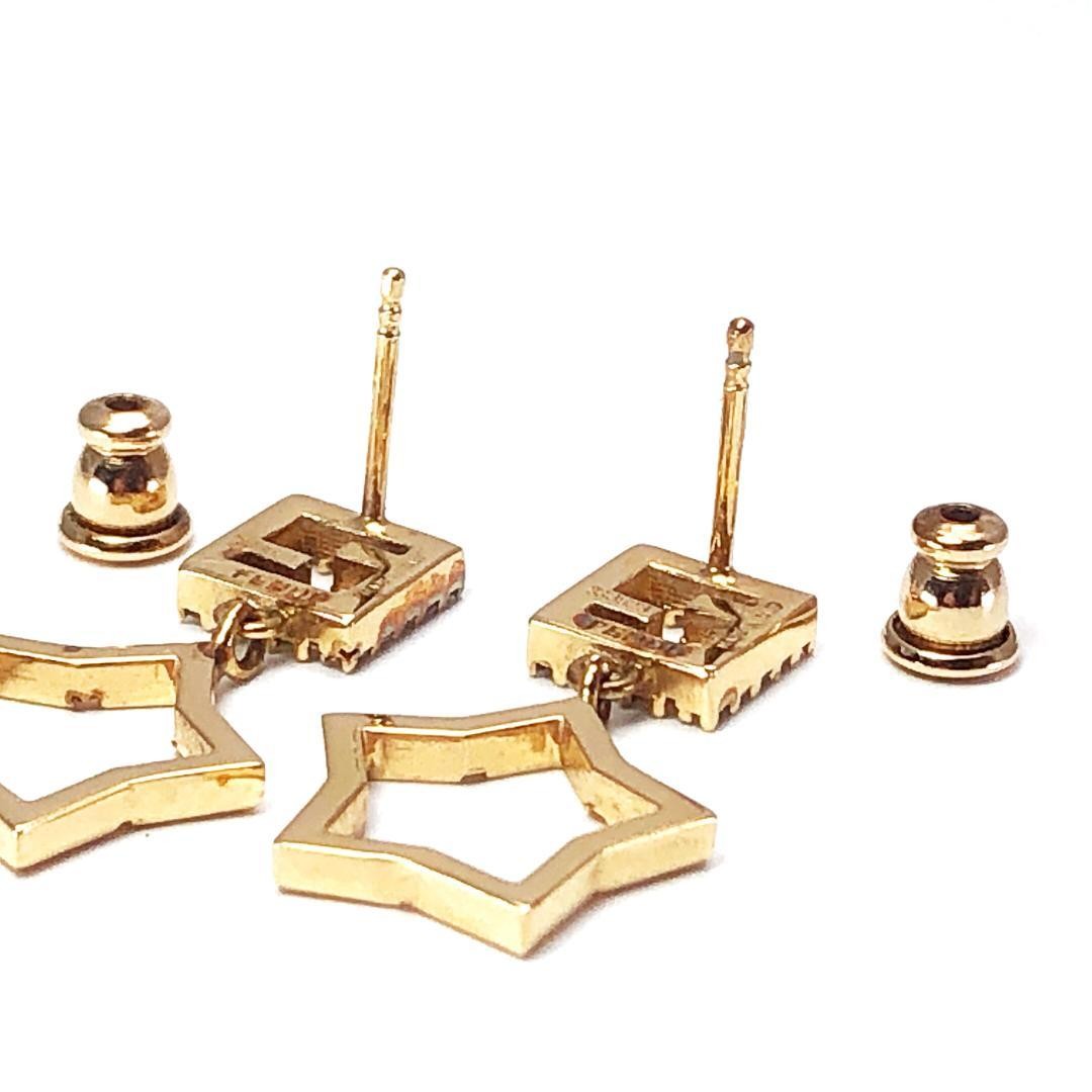 FENDI Earrings FF GP Rhinestone Gold Women Accessory Authentic