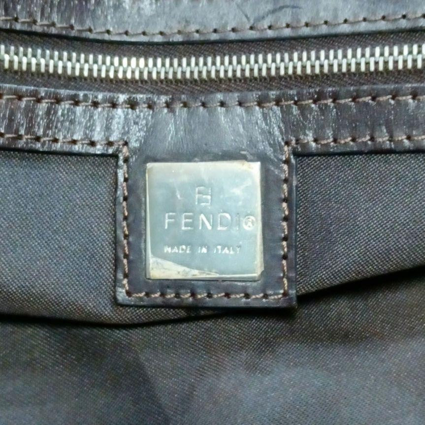 FENDI Hand Bag Tote Purse Corduroy Canvas Leather Beige Brown Authentic