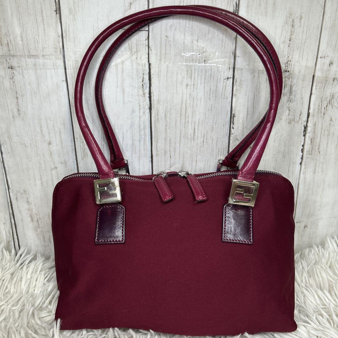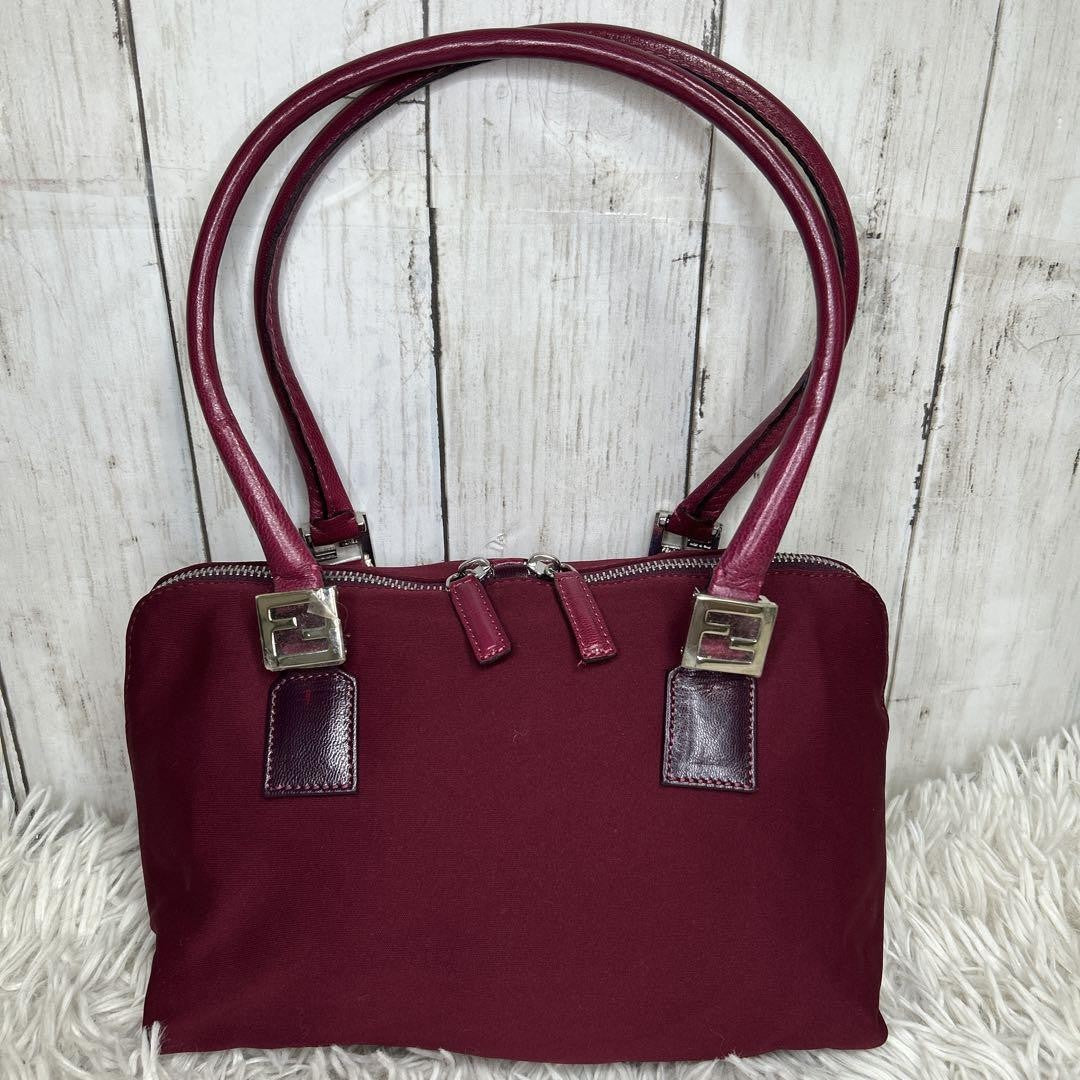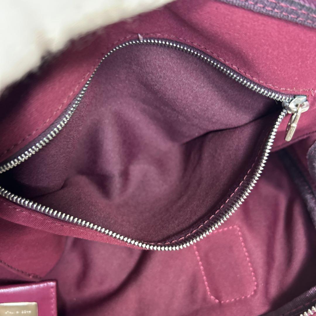 FENDI Hand Bag Tote Purse FF Baguette Leather Red Bordeaux Authentic