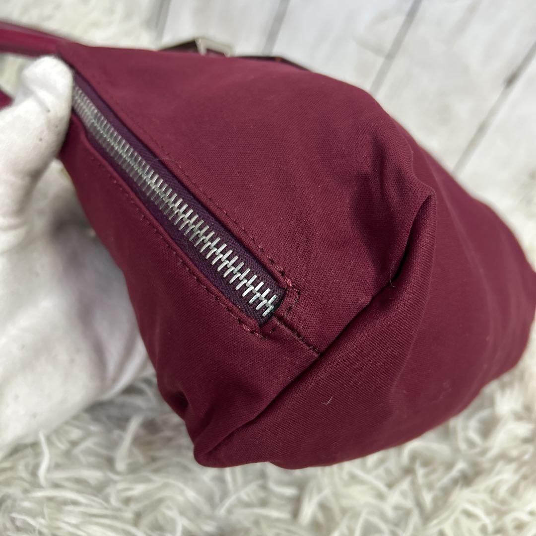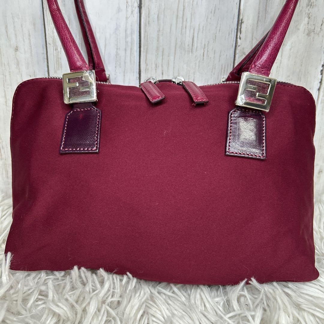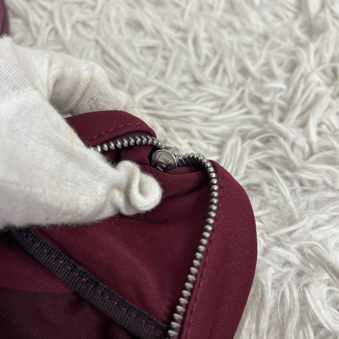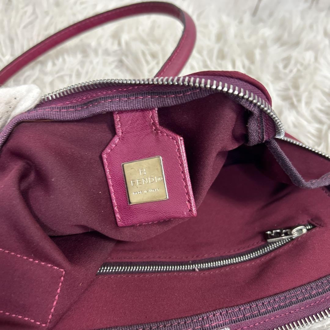 FENDI Hand Bag Tote Purse FF Baguette Leather Red Bordeaux Authentic