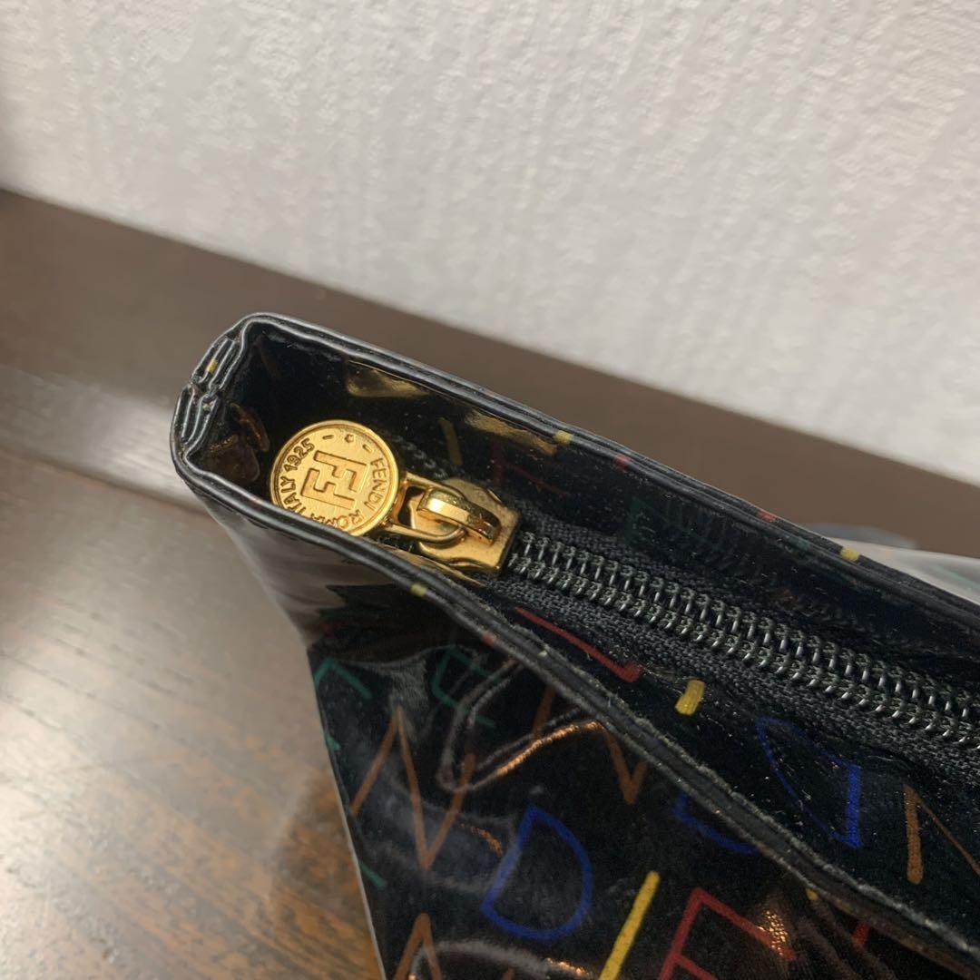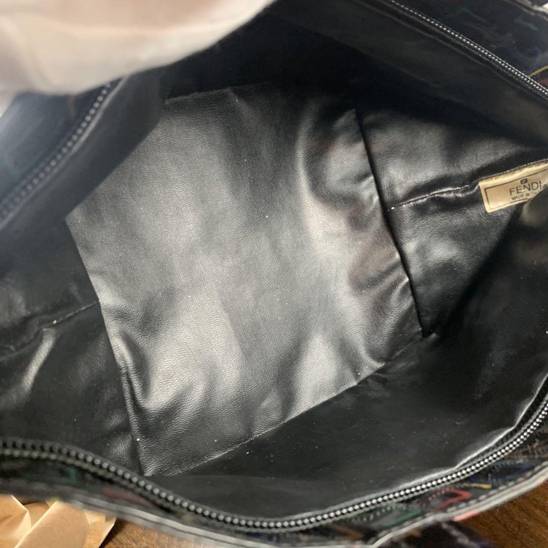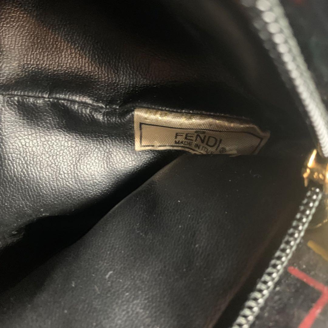 FENDI Hand Bag Tote Purse FF Black Multicolor Authentic