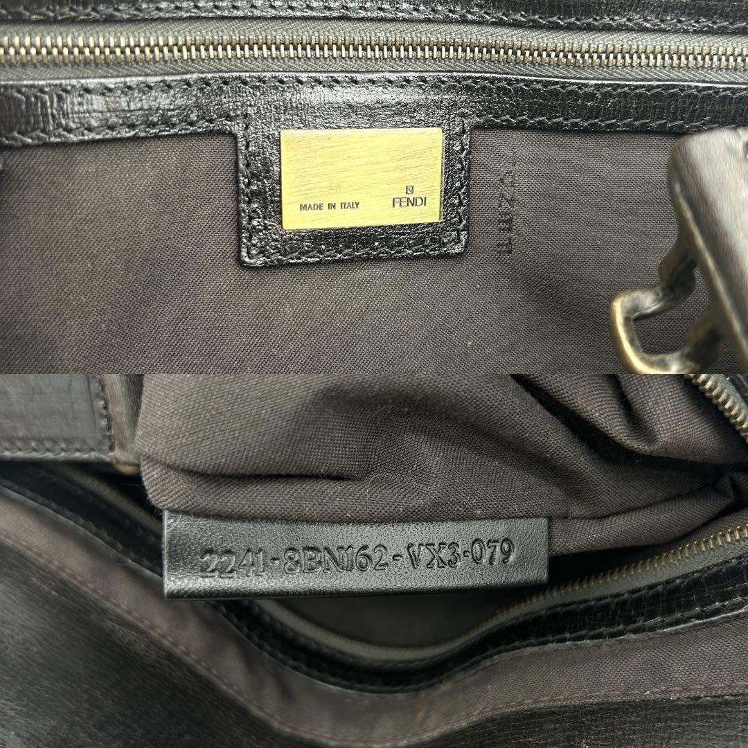 FENDI Hand Bag Tote Purse FF Leather Khaki Authentic