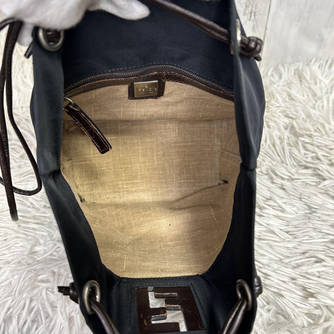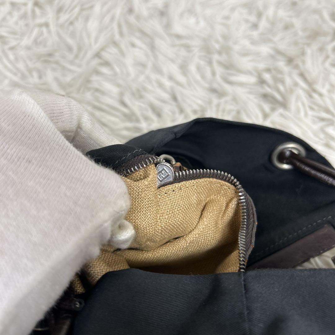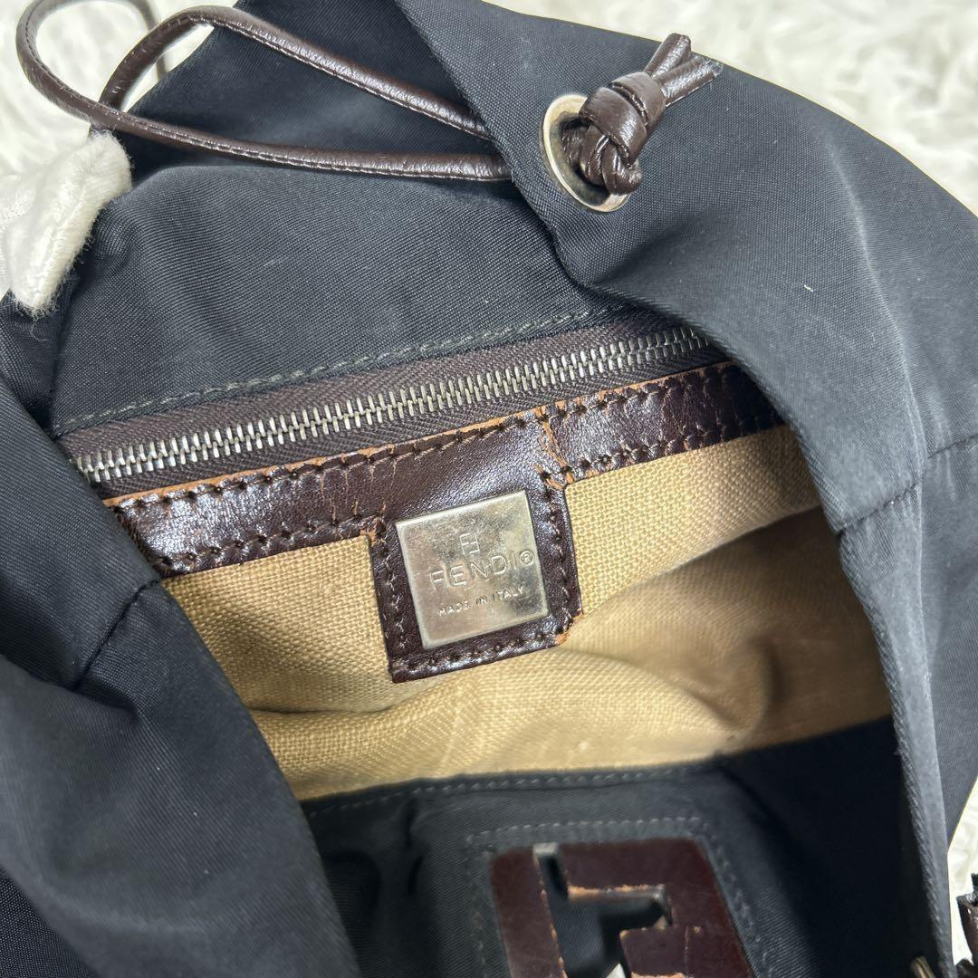 FENDI Hand Bag Tote Purse FF Leather Nylon Black Brown Authentic