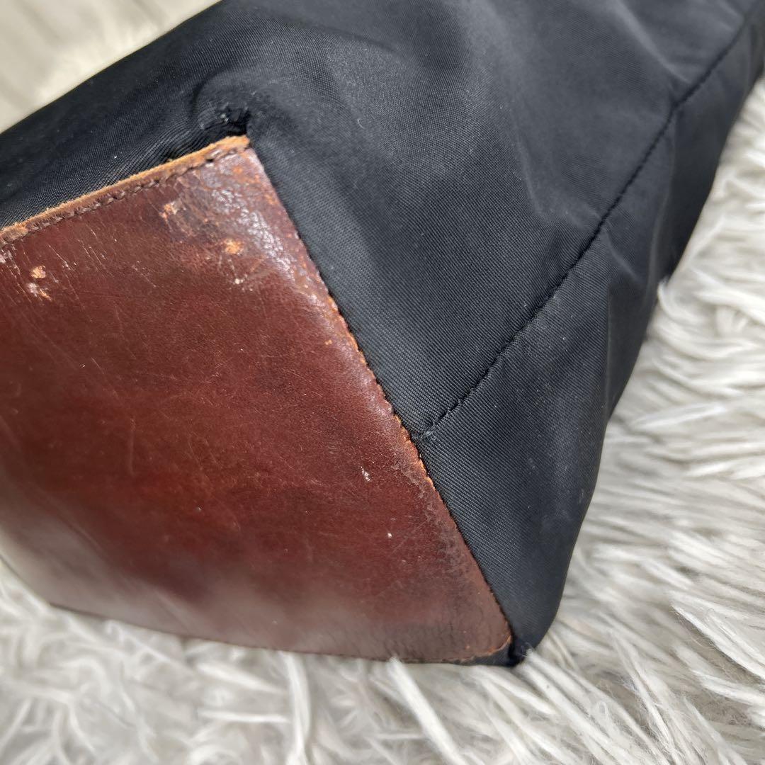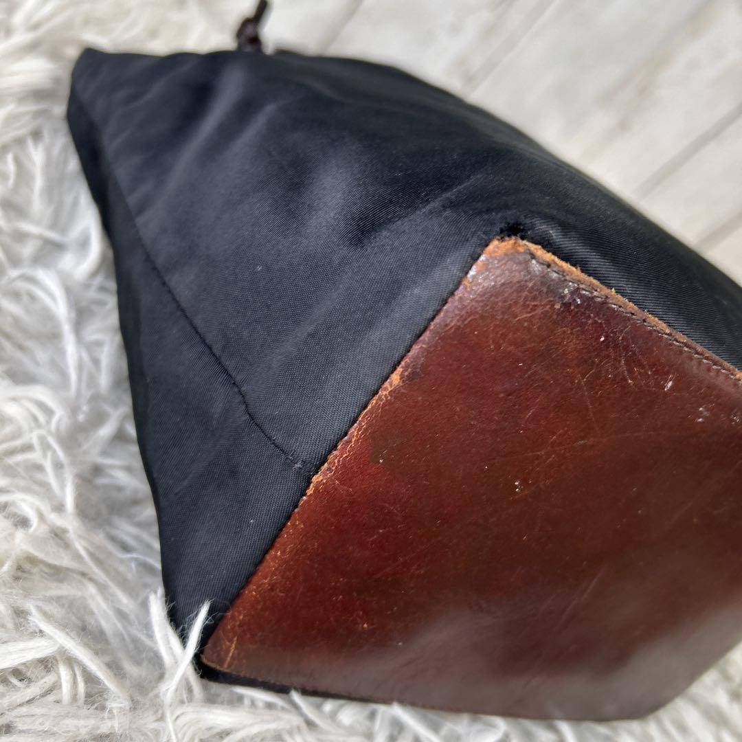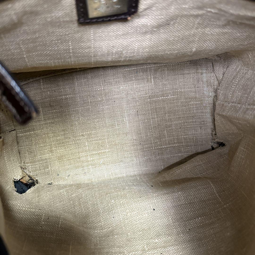 FENDI Hand Bag Tote Purse FF Leather Nylon Black Brown Authentic