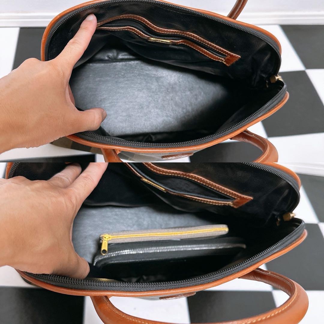 As you can see in the last photo, the metal fittings that open and close the zipper pocket inside the bag are missing, so it is just a regular pocket.