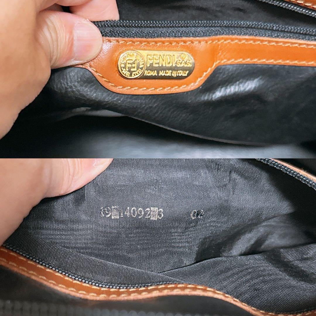 FENDI Hand Bag Tote Purse FF Pecan PVC Authentic