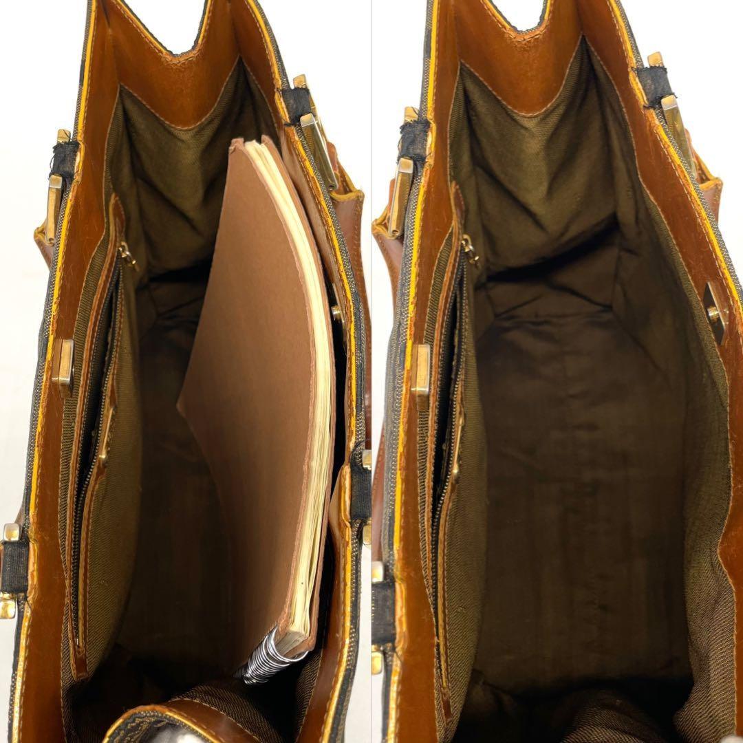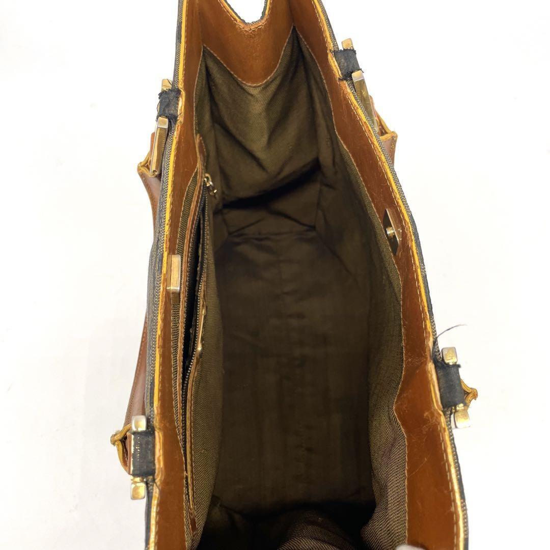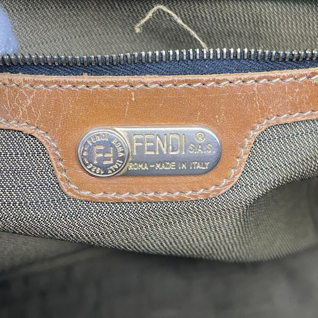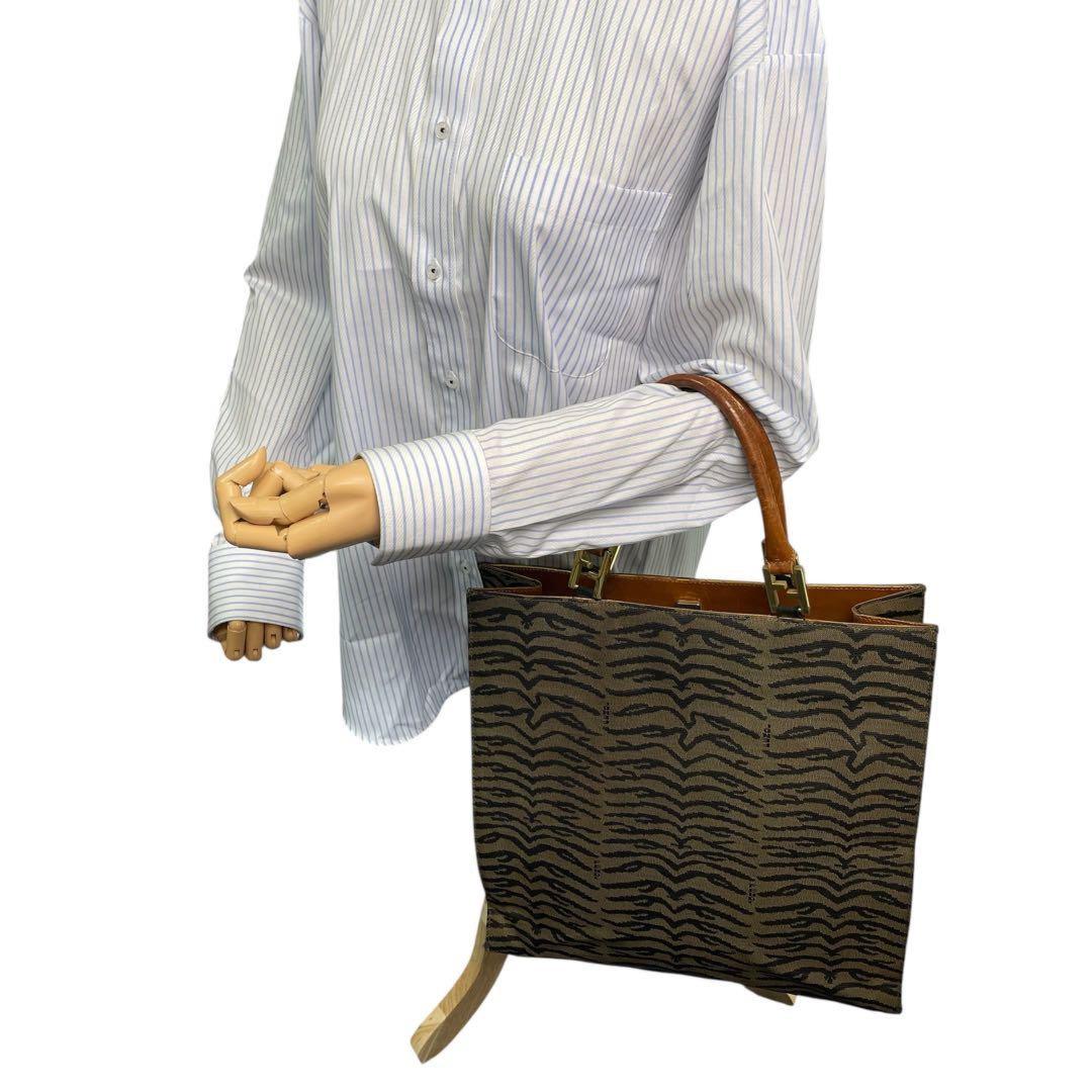 FENDI Hand Bag Tote Purse FF Zebra Canvas Leather Brown Authentic