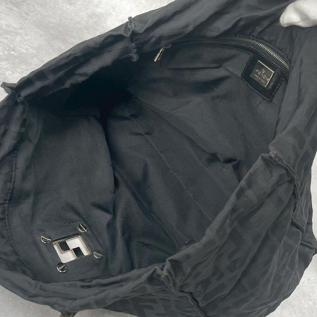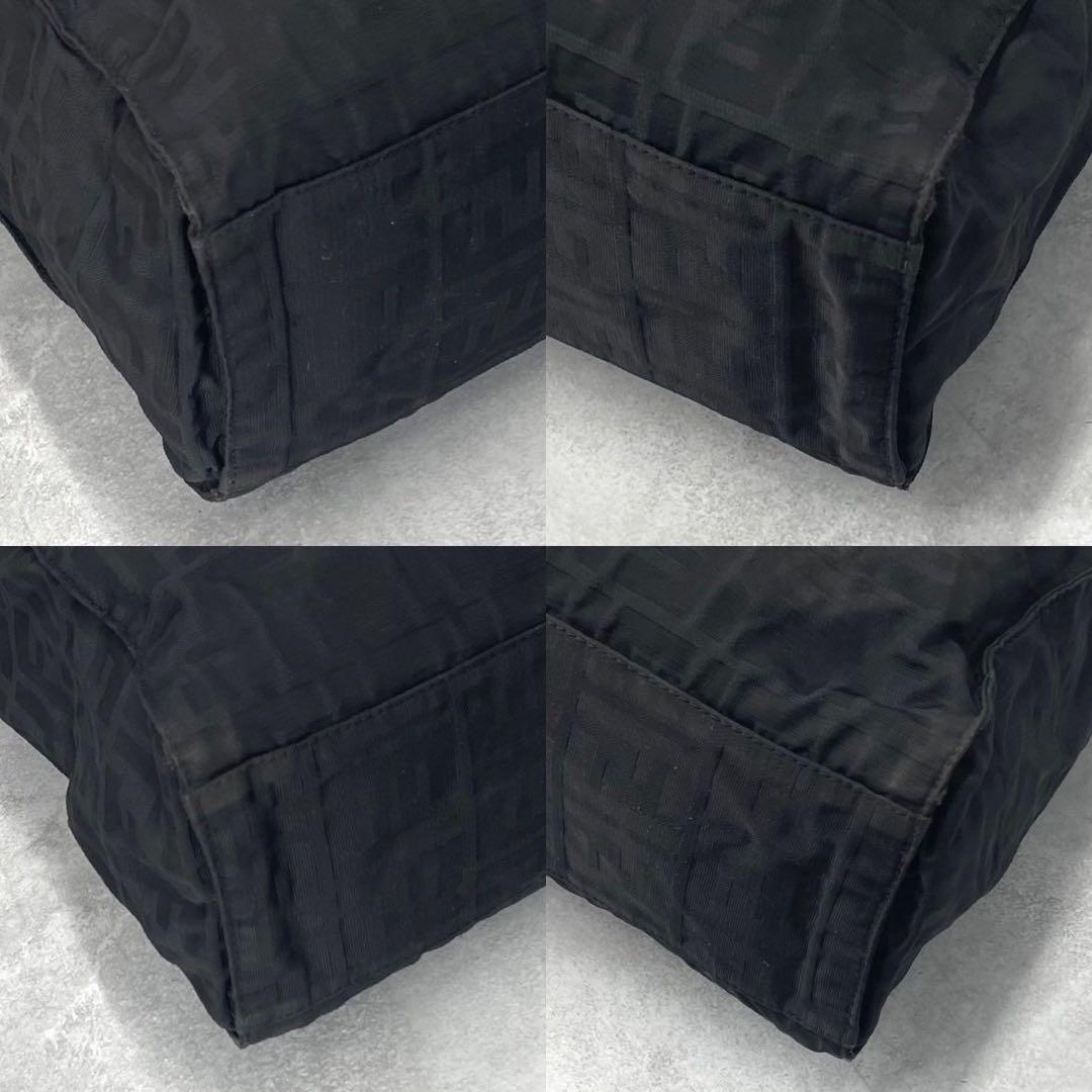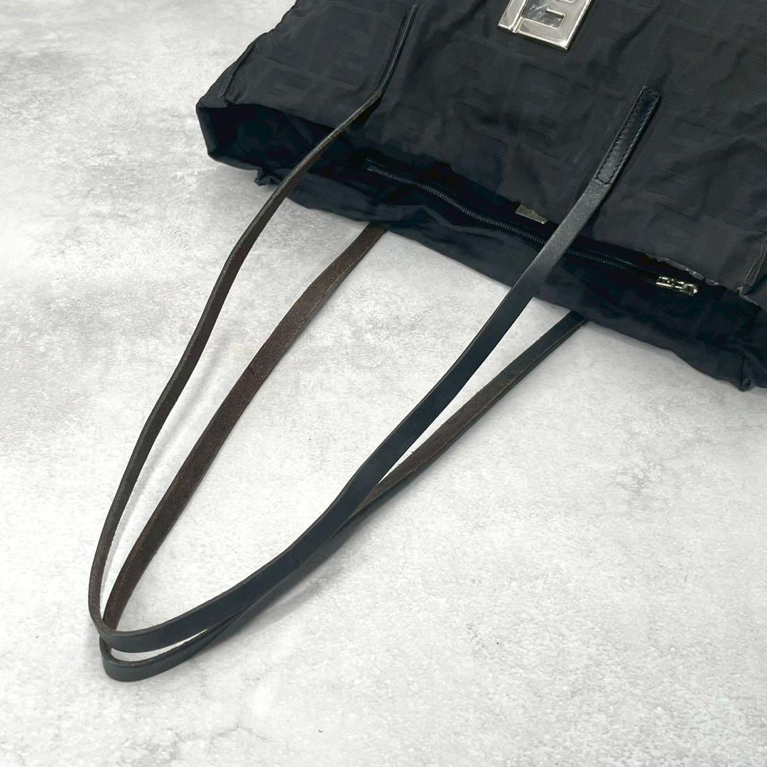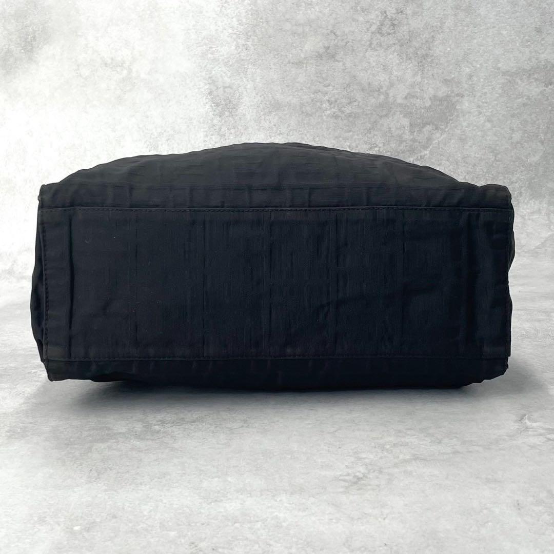 FENDI Hand Bag Tote Purse FF Zucca Canvas Leather Black Authentic