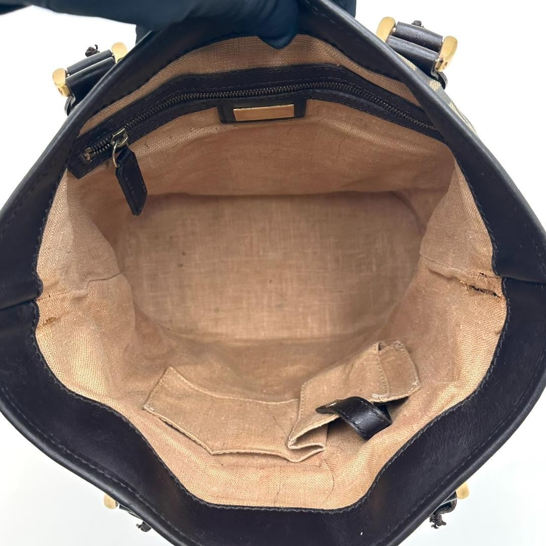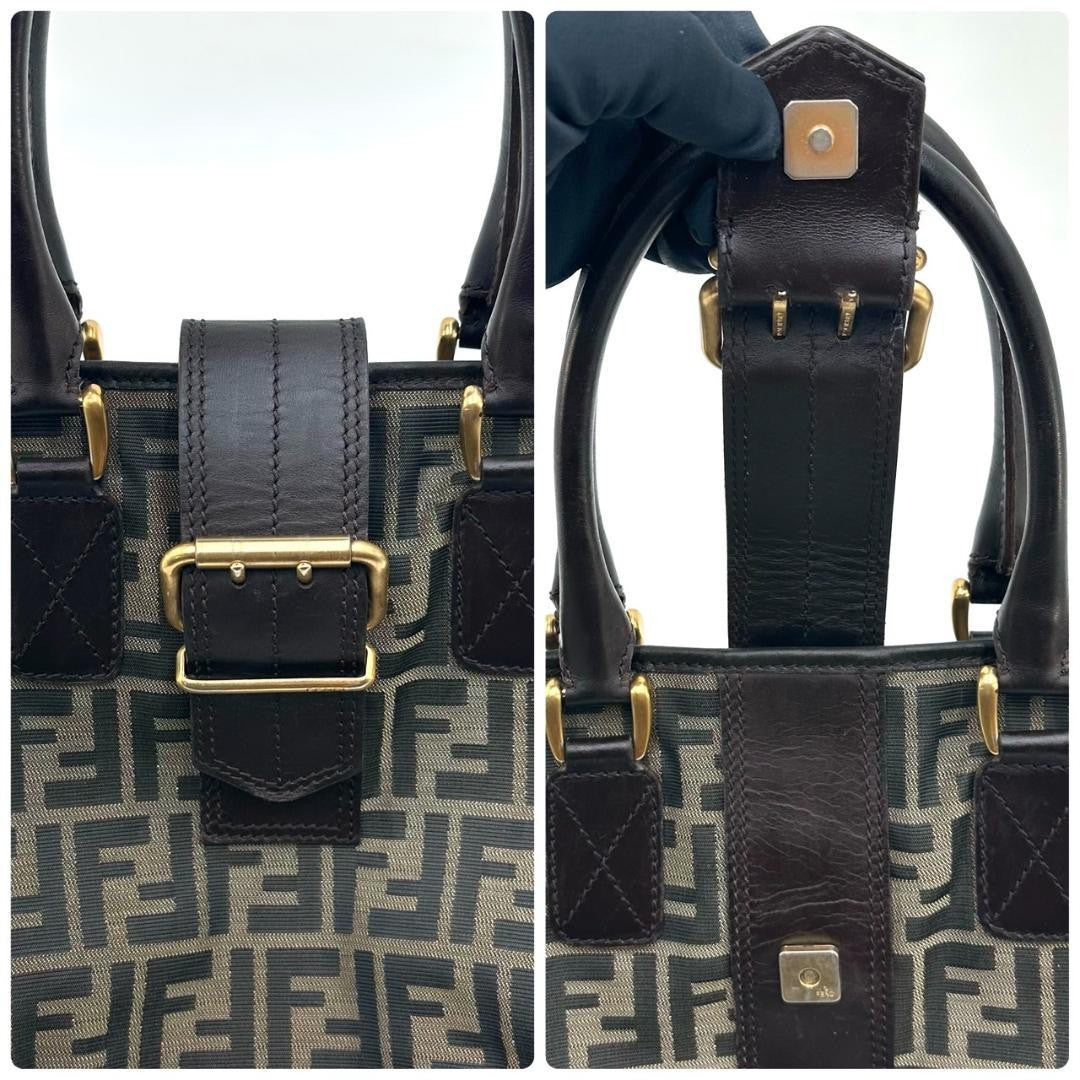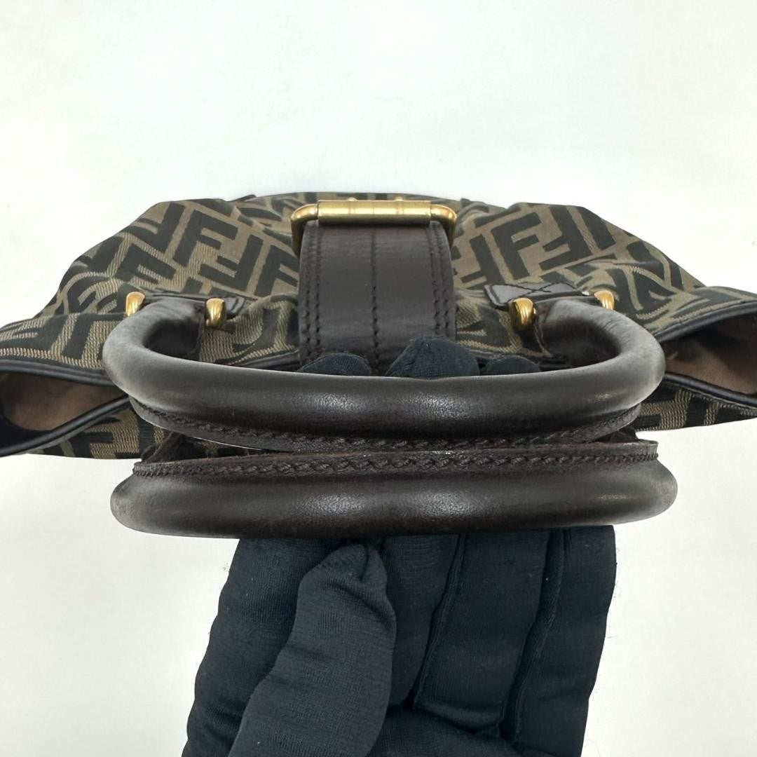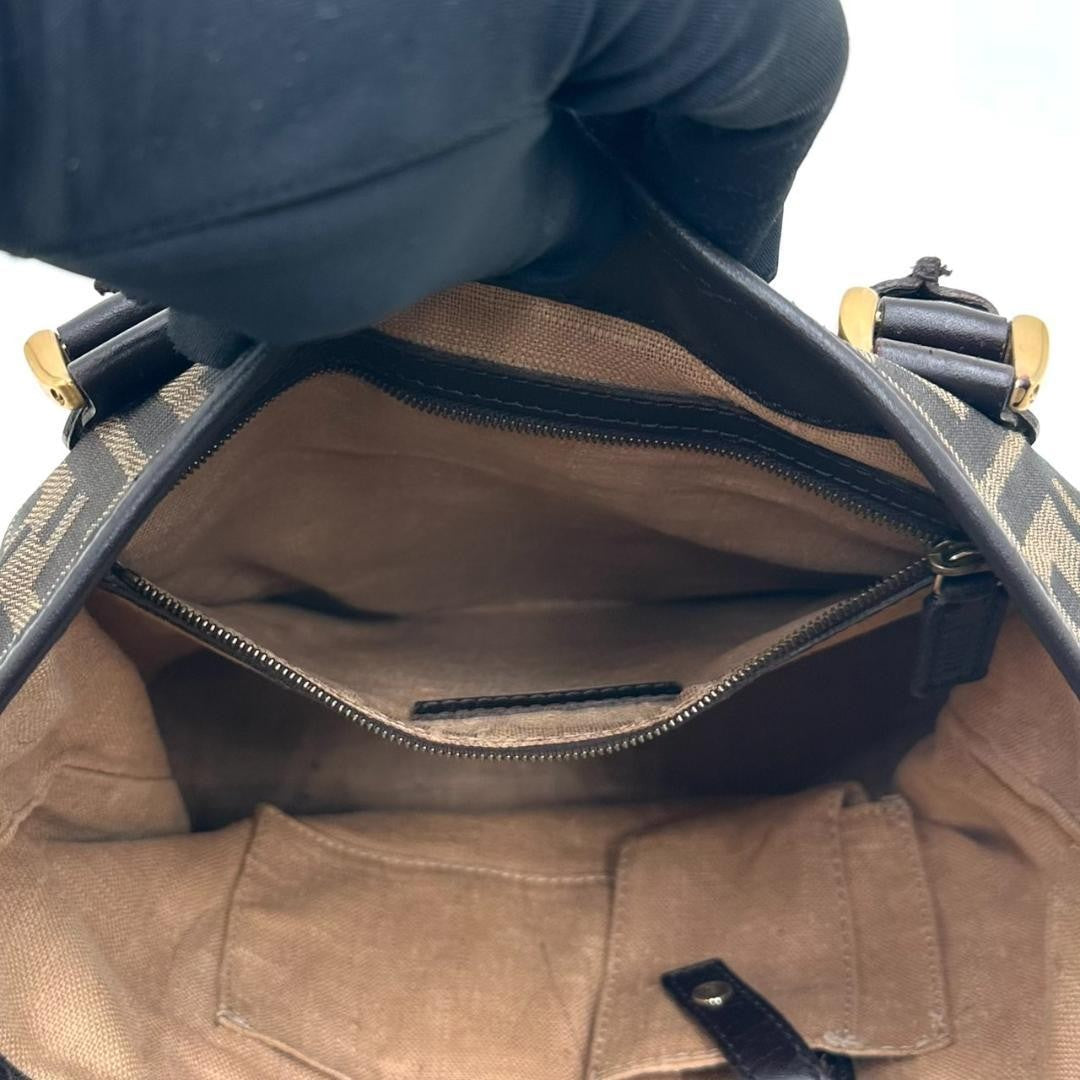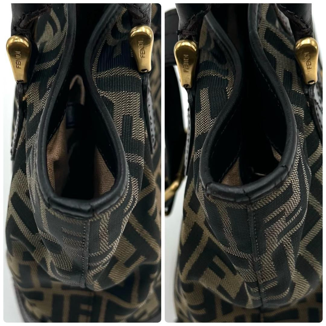 FENDI Hand Bag Tote Purse FF Zucca Canvas Leather Dark Brown Beige Black Auth