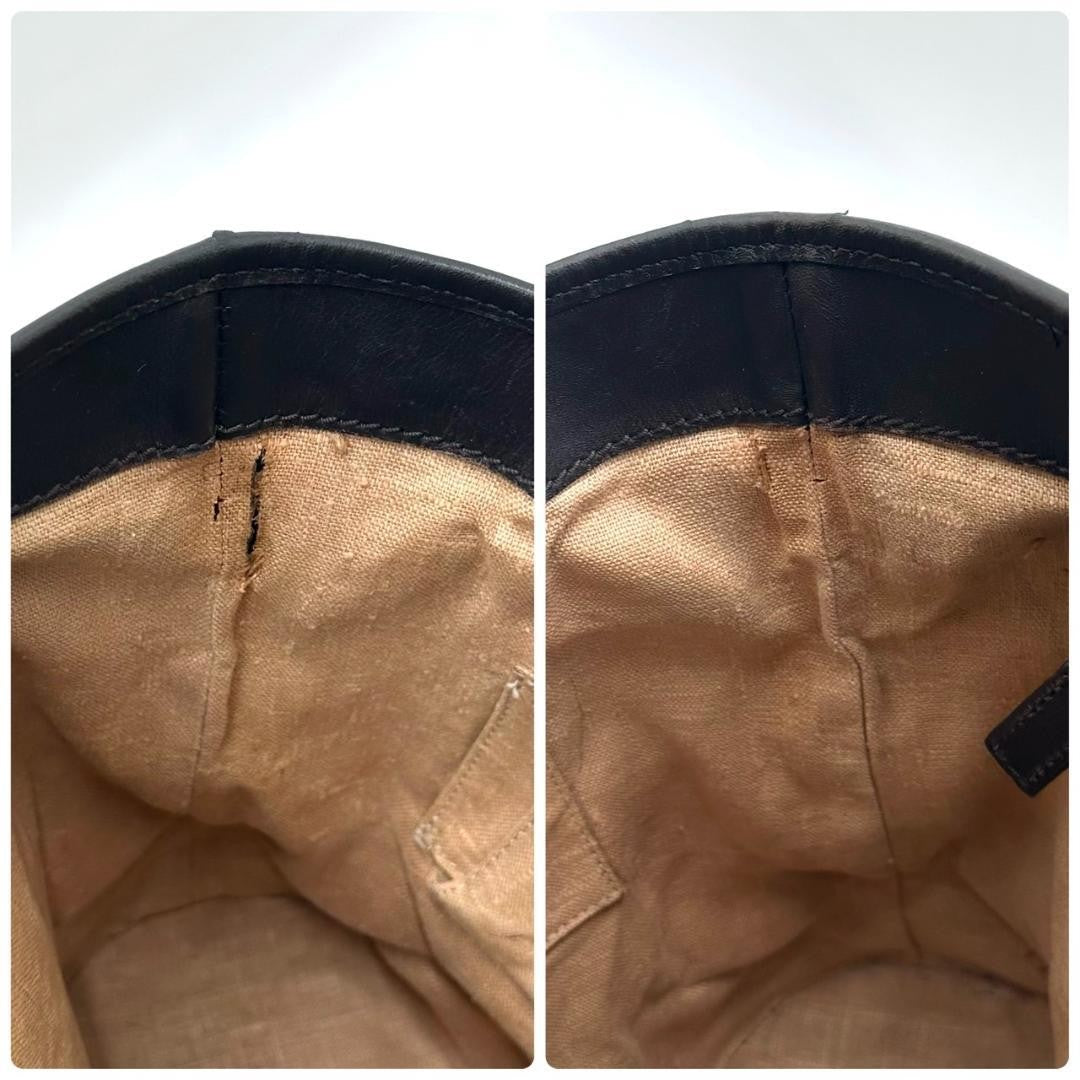 The leather on both sides of the opening is slightly cracked, the metal fittings are slightly scuffed and slightly dull, the interior is slightly dirty, and there are signs of repairs to the loose threads on both sides of the upper interior. However, there is no noticeable dirt or major damage that would interfere with use, and the item is still in good condition and ready for use.