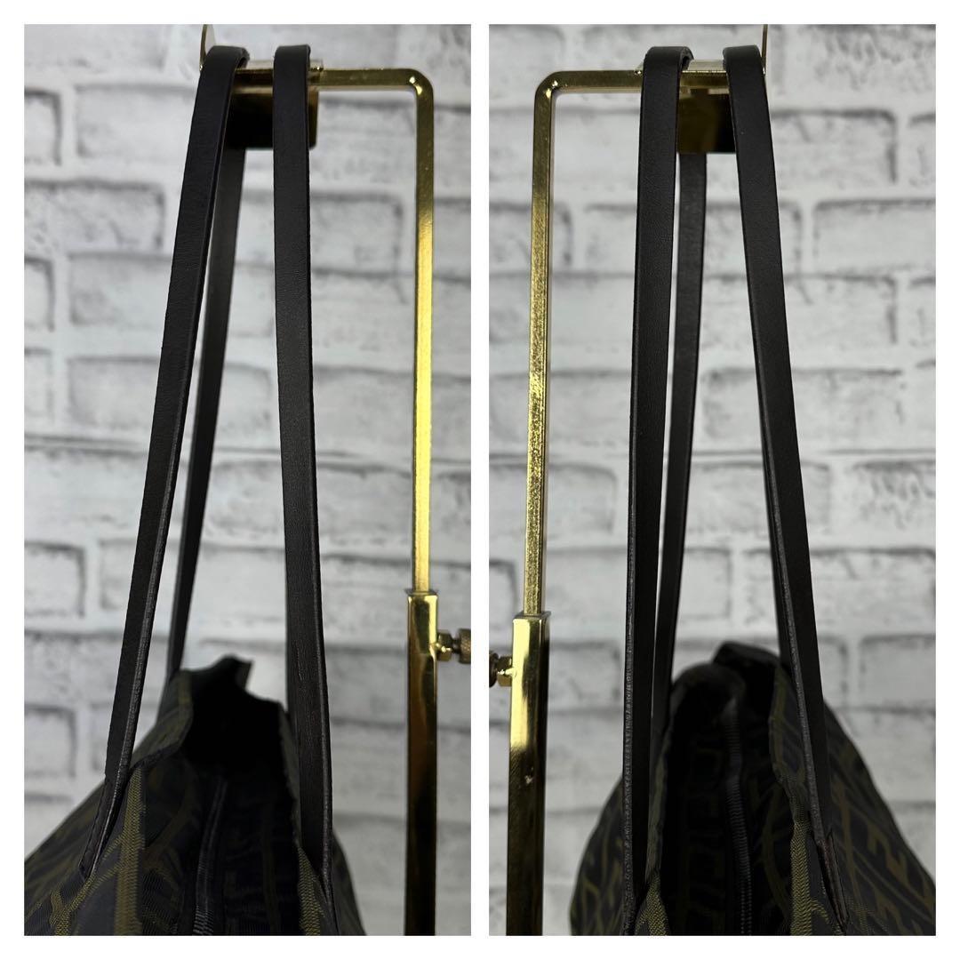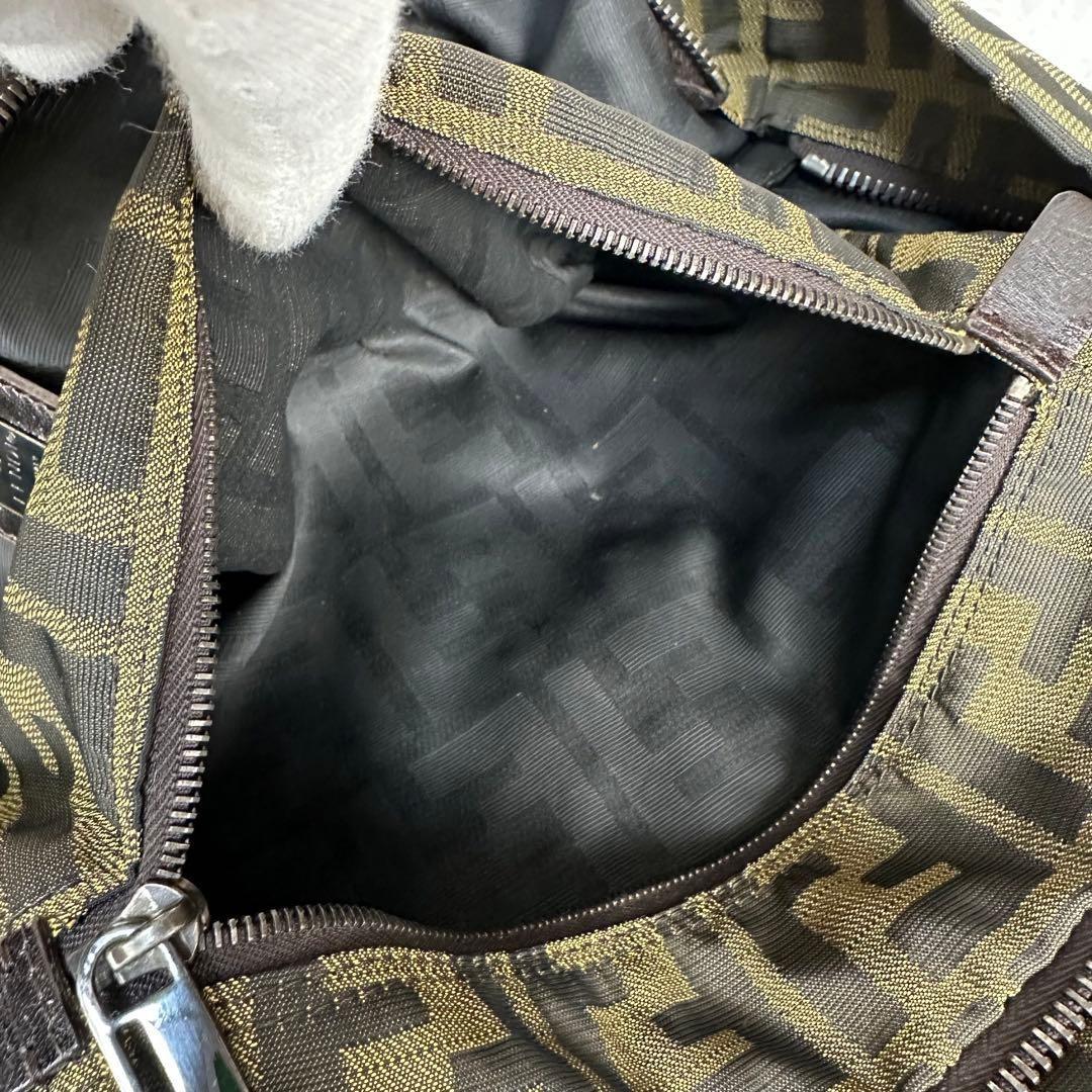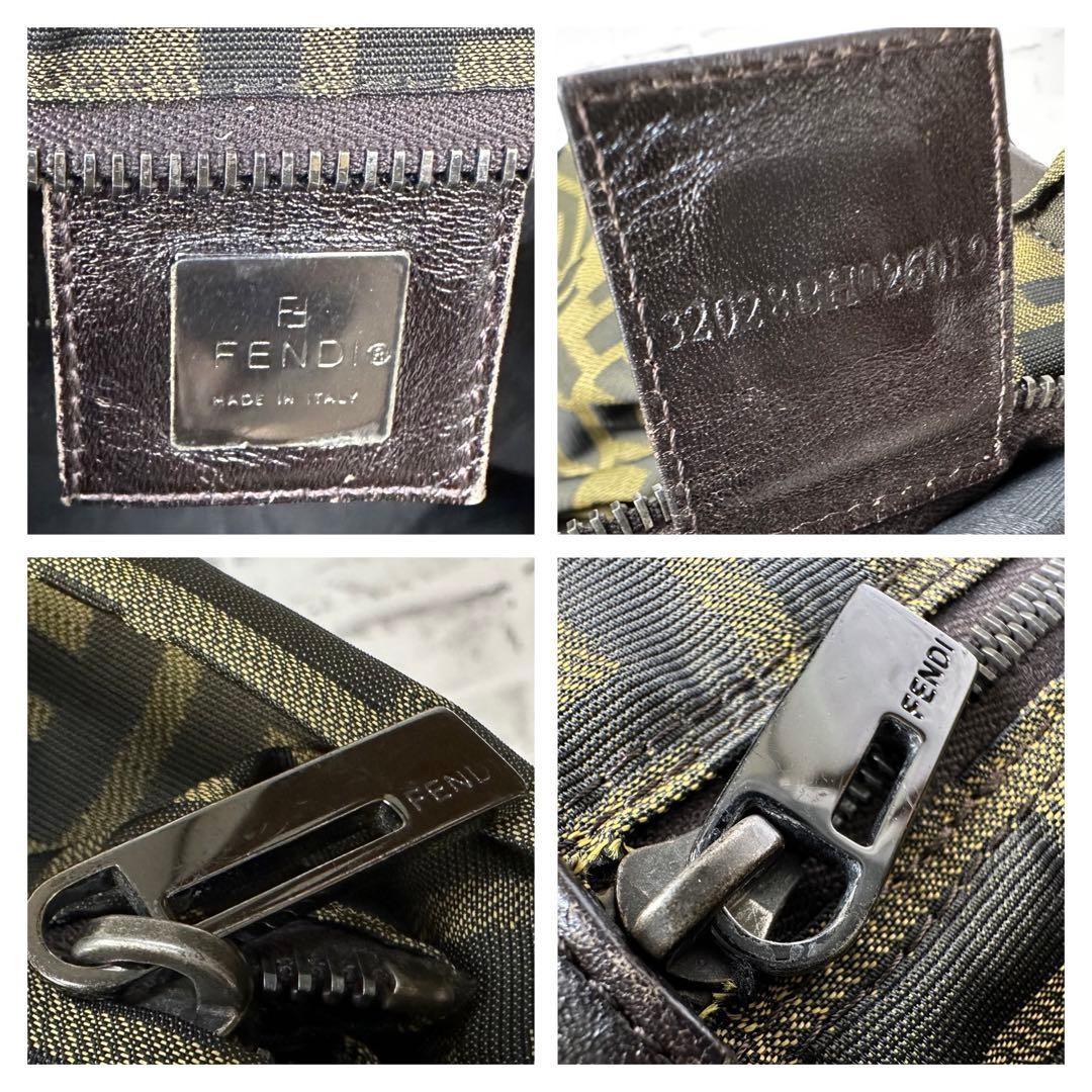 FENDI Hand Bag Tote Purse FF Zucca Canvas Leather Green Authentic