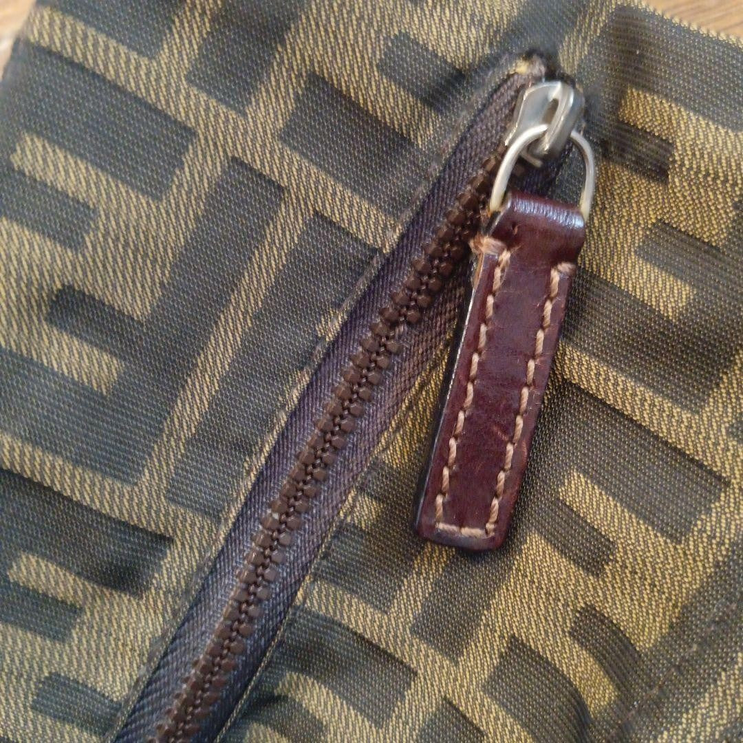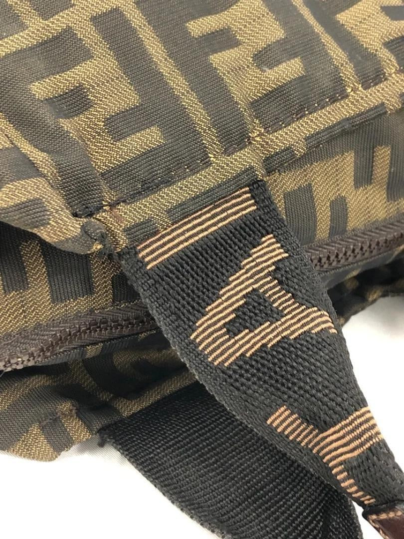 FENDI Hand Bag Tote Purse FF Zucca Nylon Brown Authentic