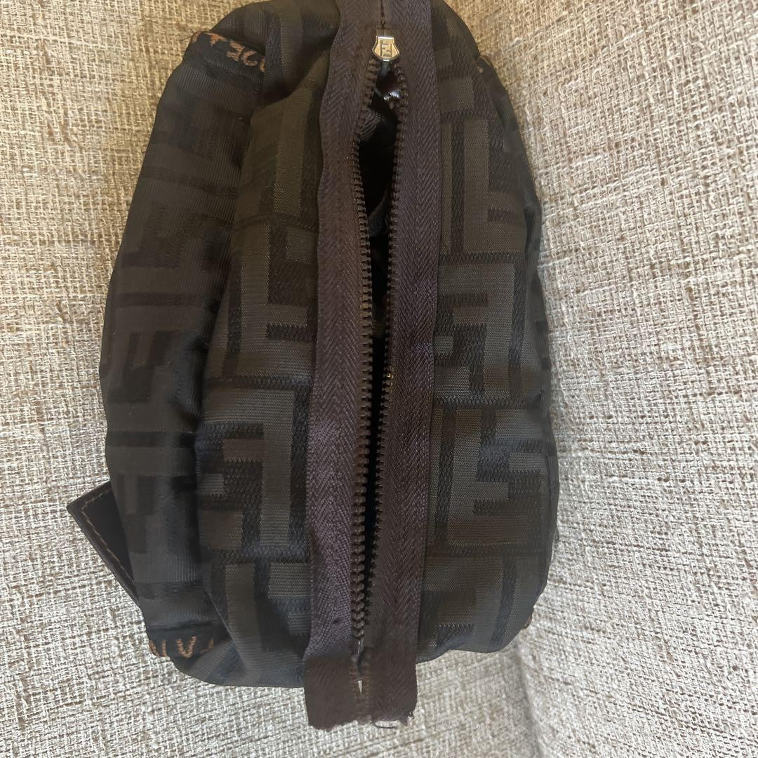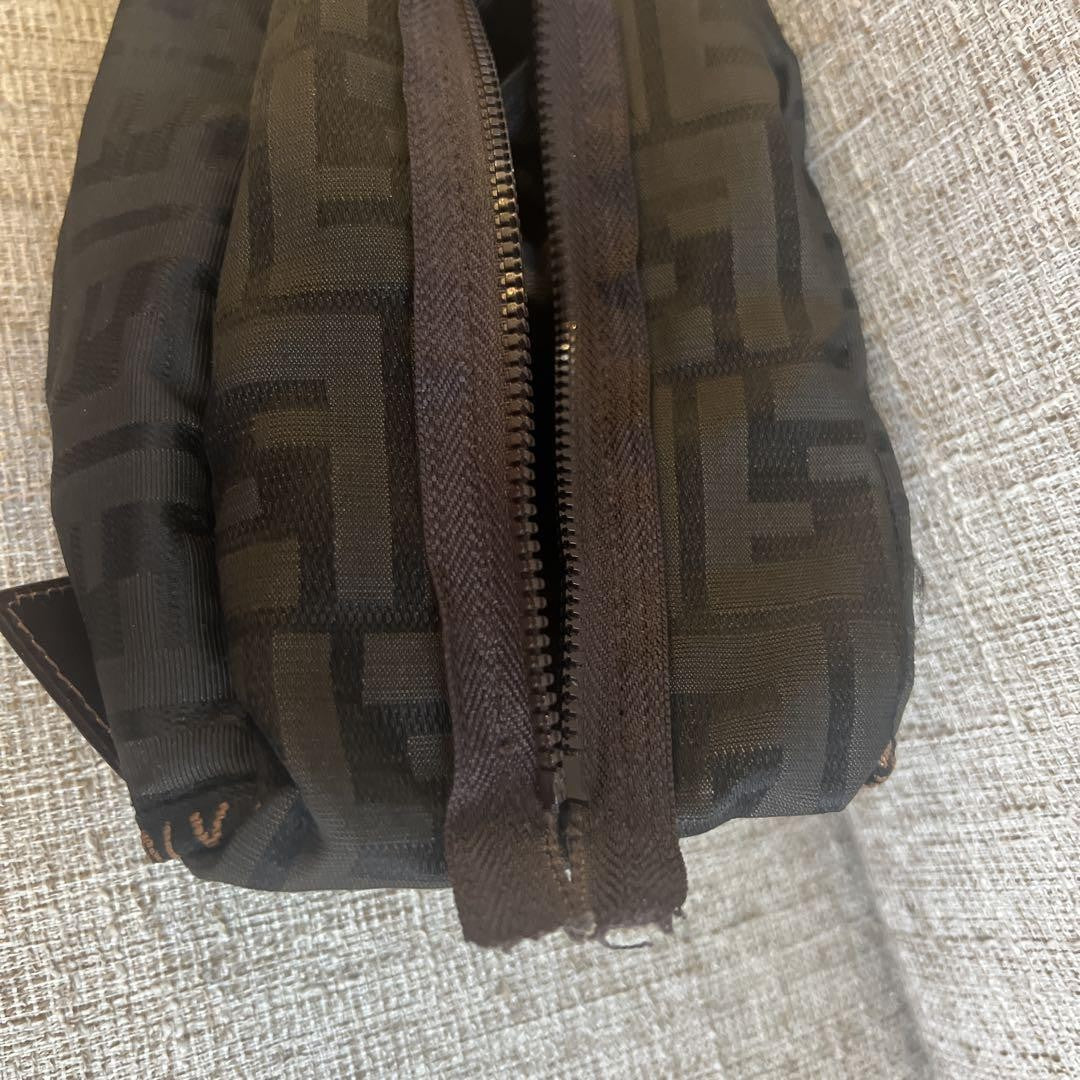 FENDI Hand Bag Tote Purse FF Zucca Nylon Brown Authentic