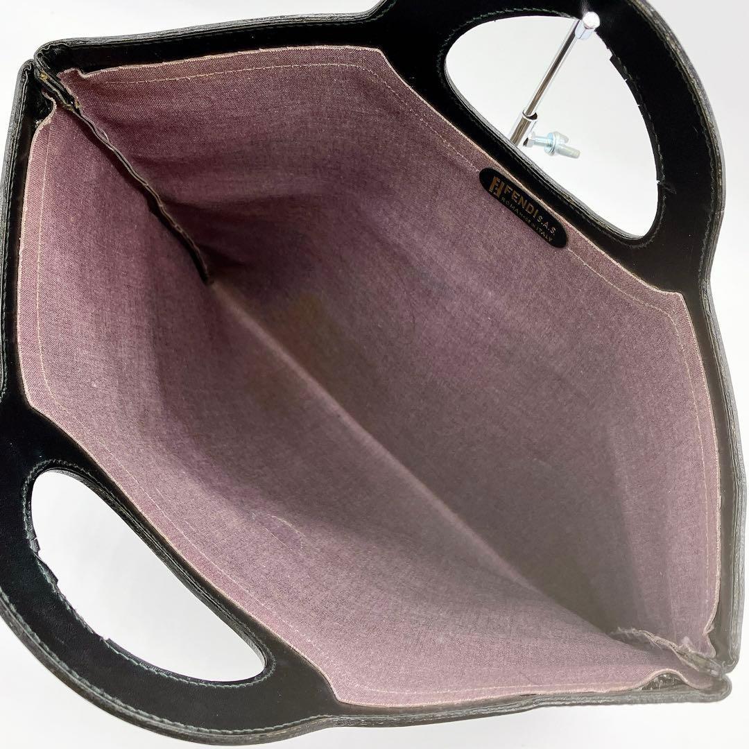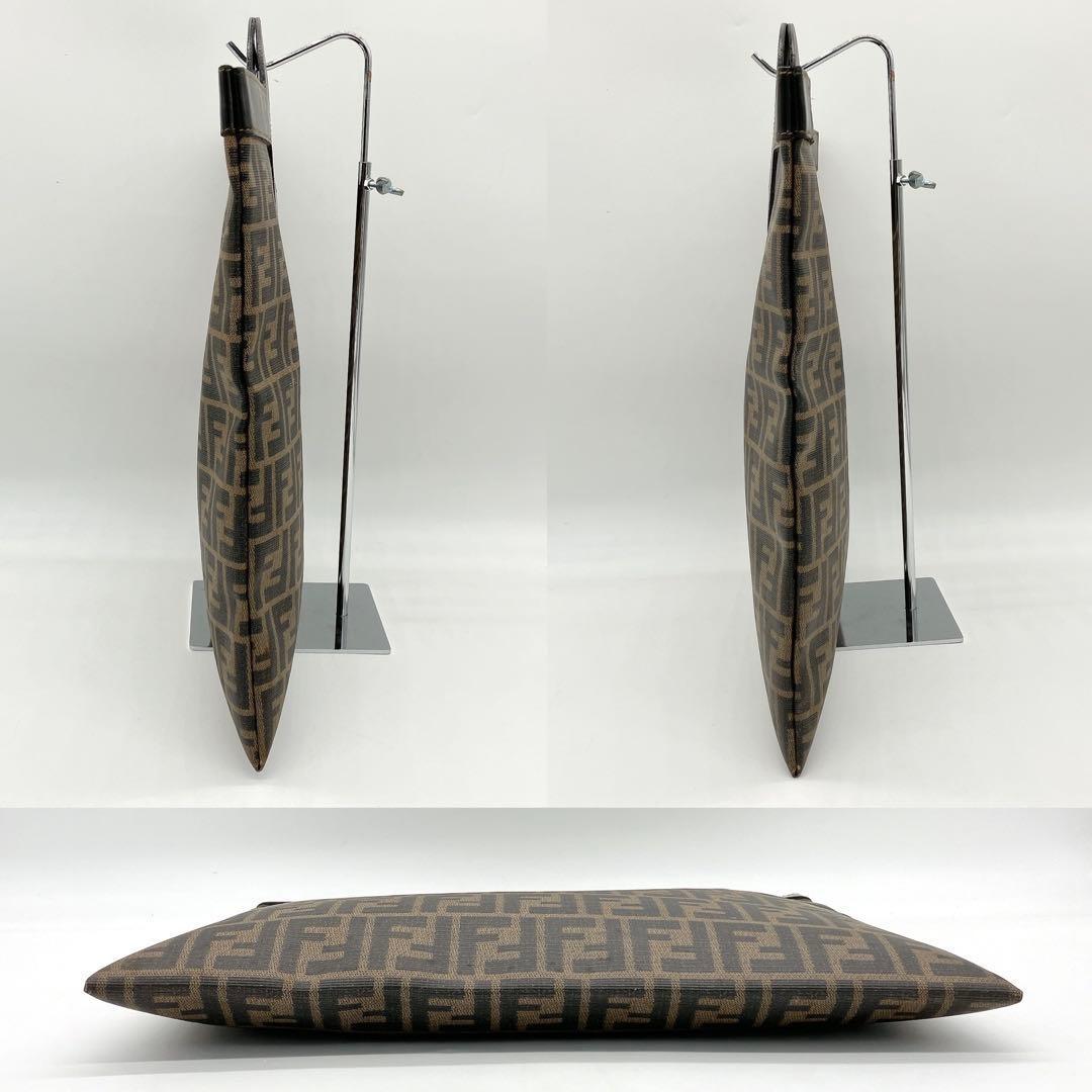 FENDI Hand Bag Tote Purse FF Zucca PVC Leather Brown Black Authentic