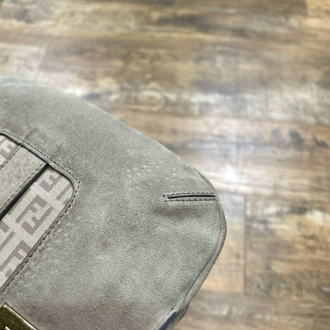 FENDI Hand Bag Tote Purse FF Zucca Zucchino Suede Gray Beige Authentic