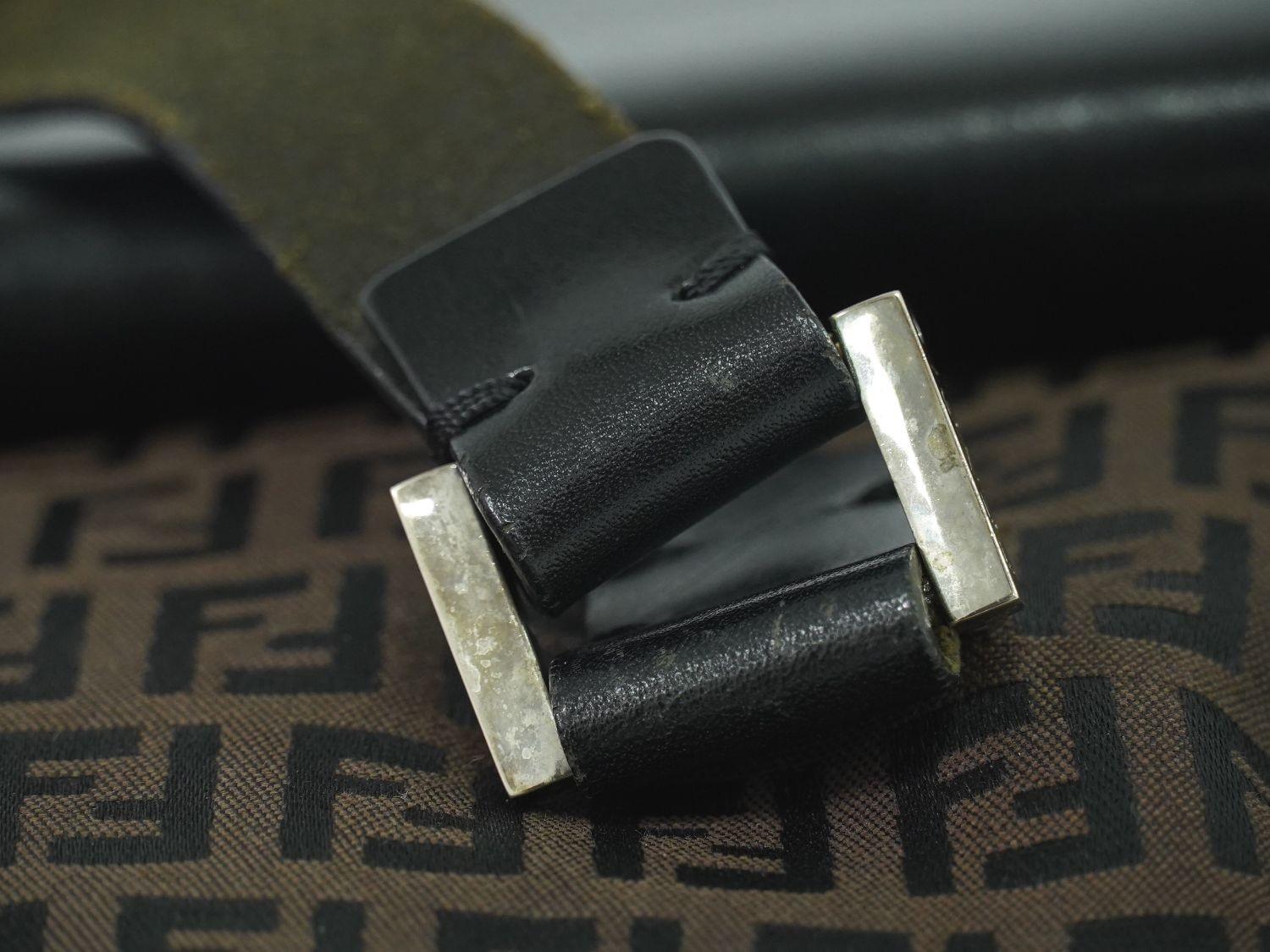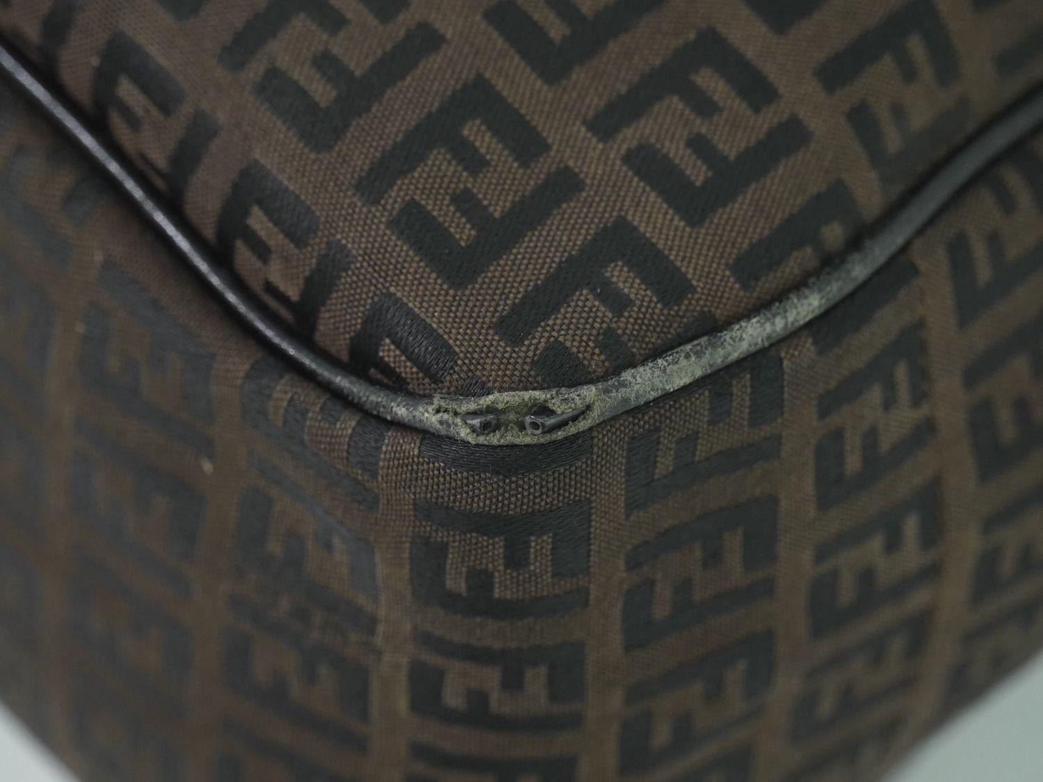 FENDI Hand Bag Tote Purse FF Zucchino Canvas Brown Authentic
