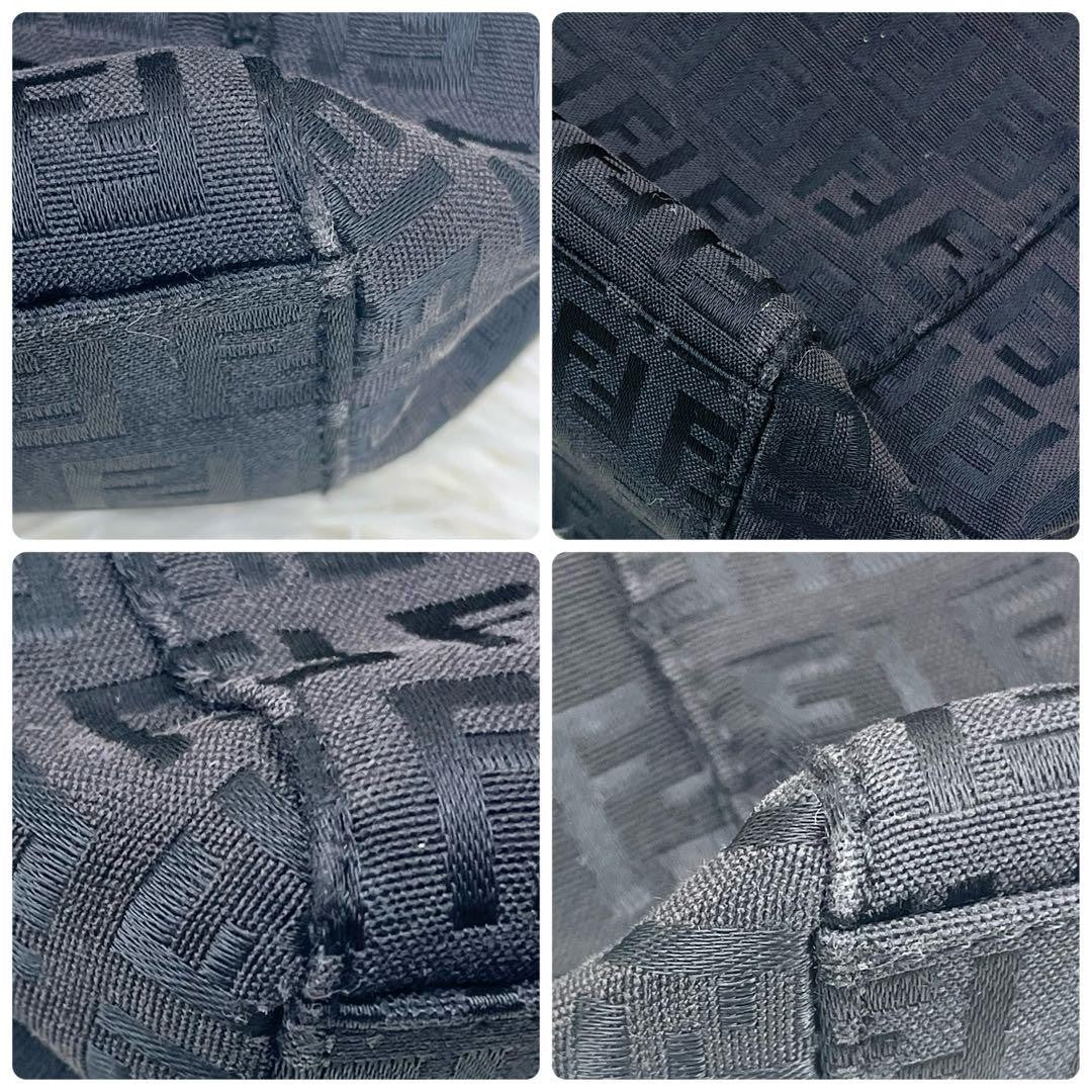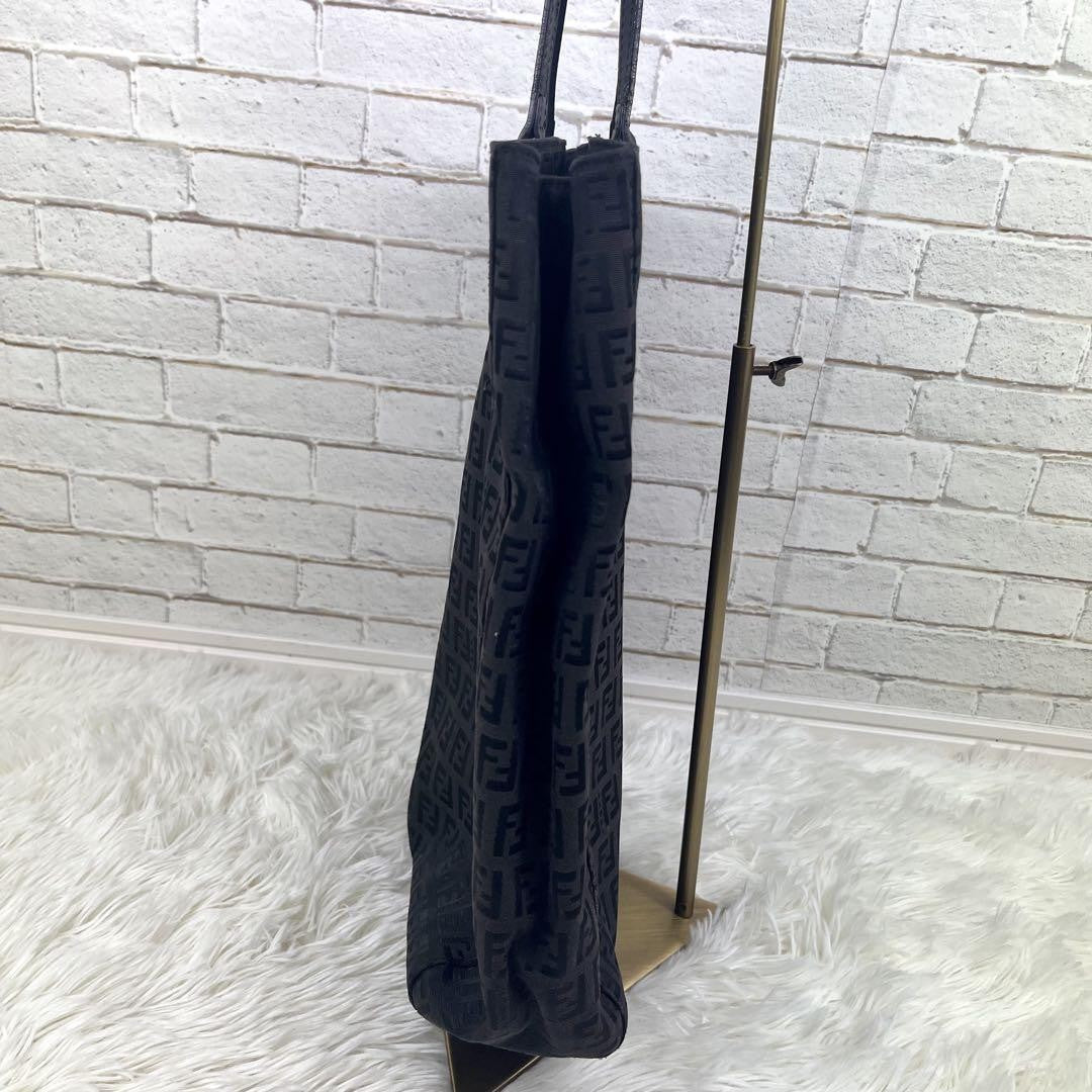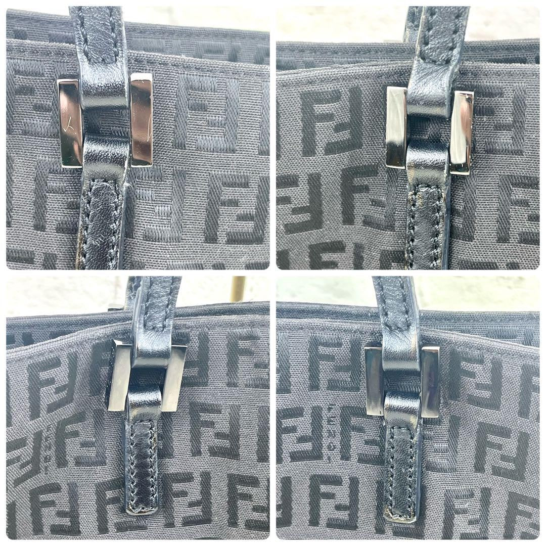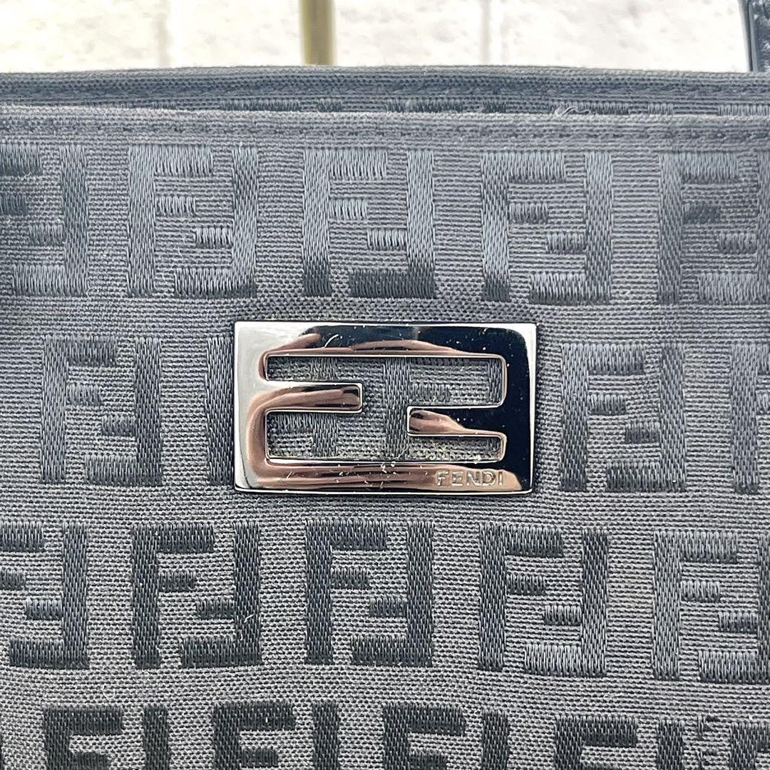FENDI Hand Bag Tote Purse FF Zucchino Canvas Cotton Black Authentic