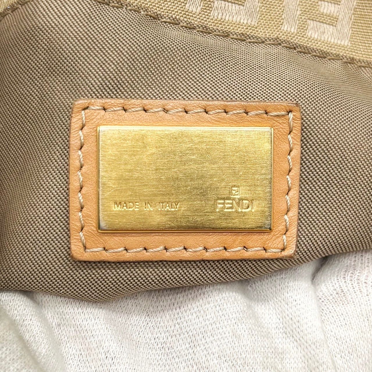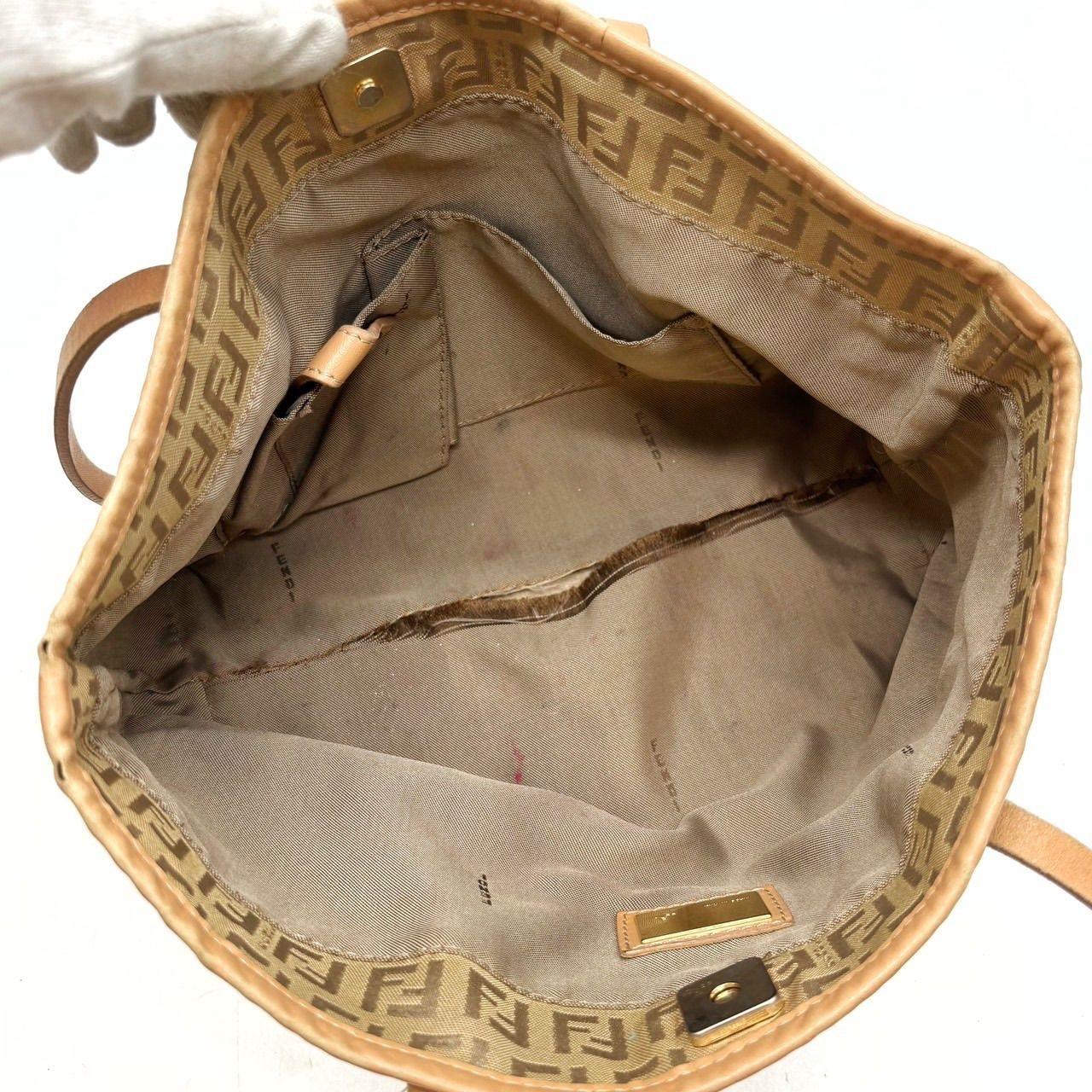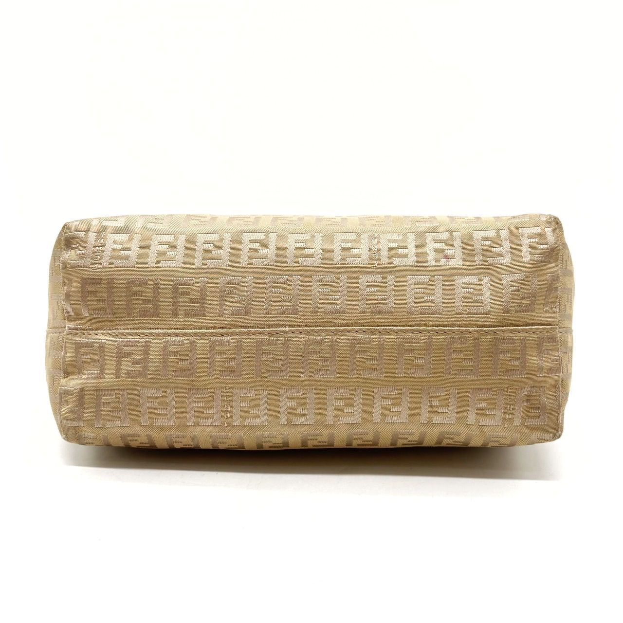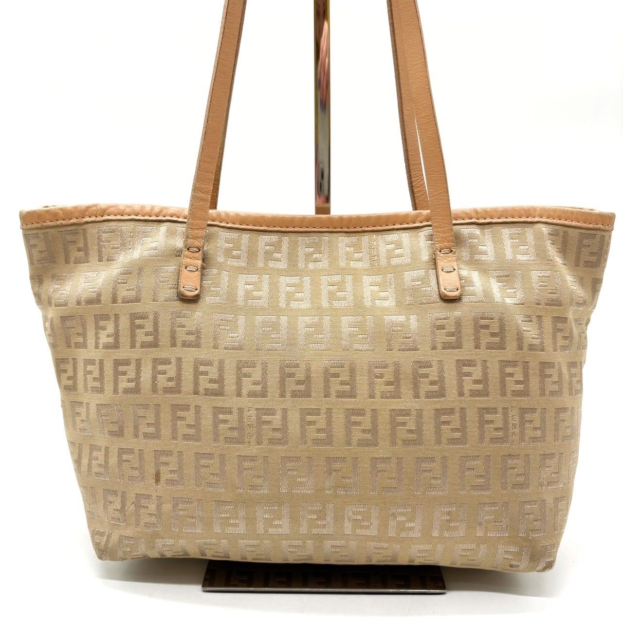 FENDI Hand Bag Tote Purse FF Zucchino Canvas Leather Beige Authentic