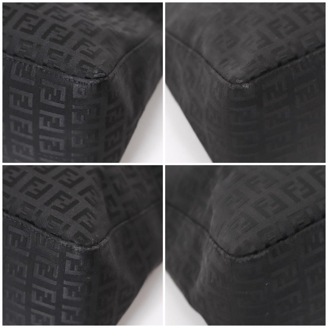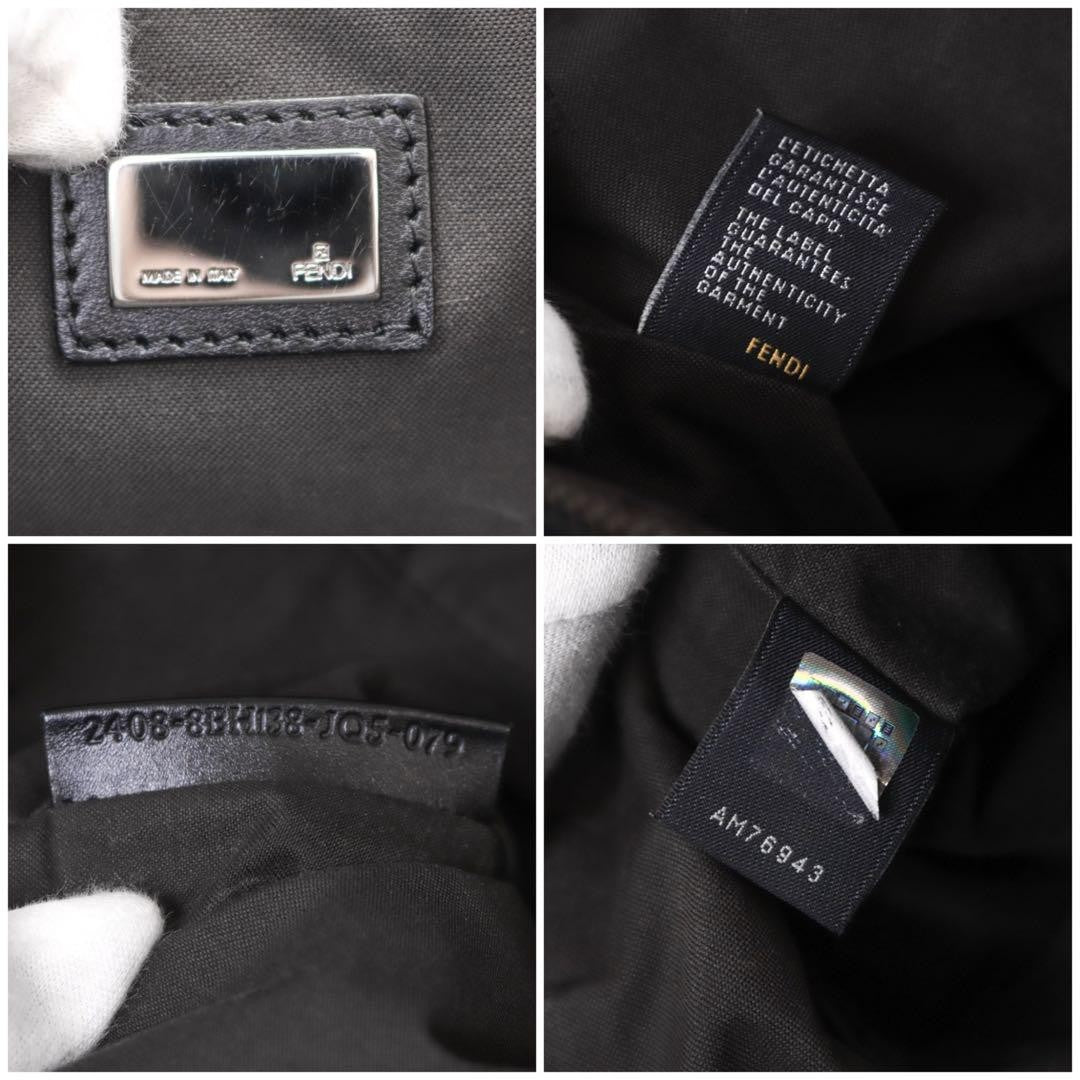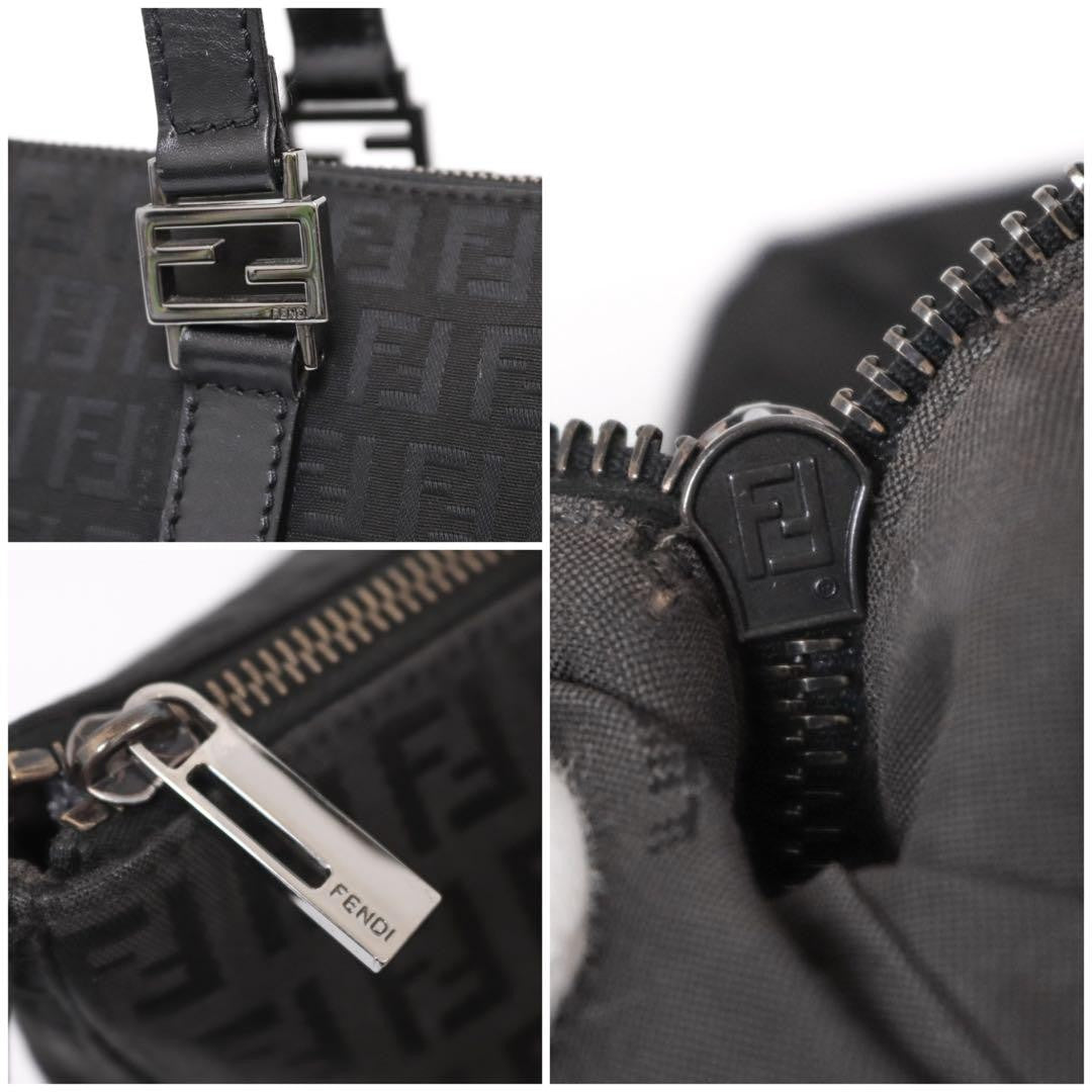 FENDI Hand Bag Tote Purse FF Zucchino Canvas Leather Nylon Black Authentic