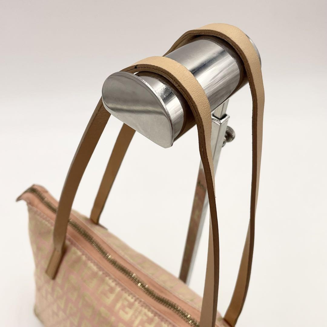 FENDI Hand Bag Tote Purse FF Zucchino Canvas Leather Pink Gold Authentic