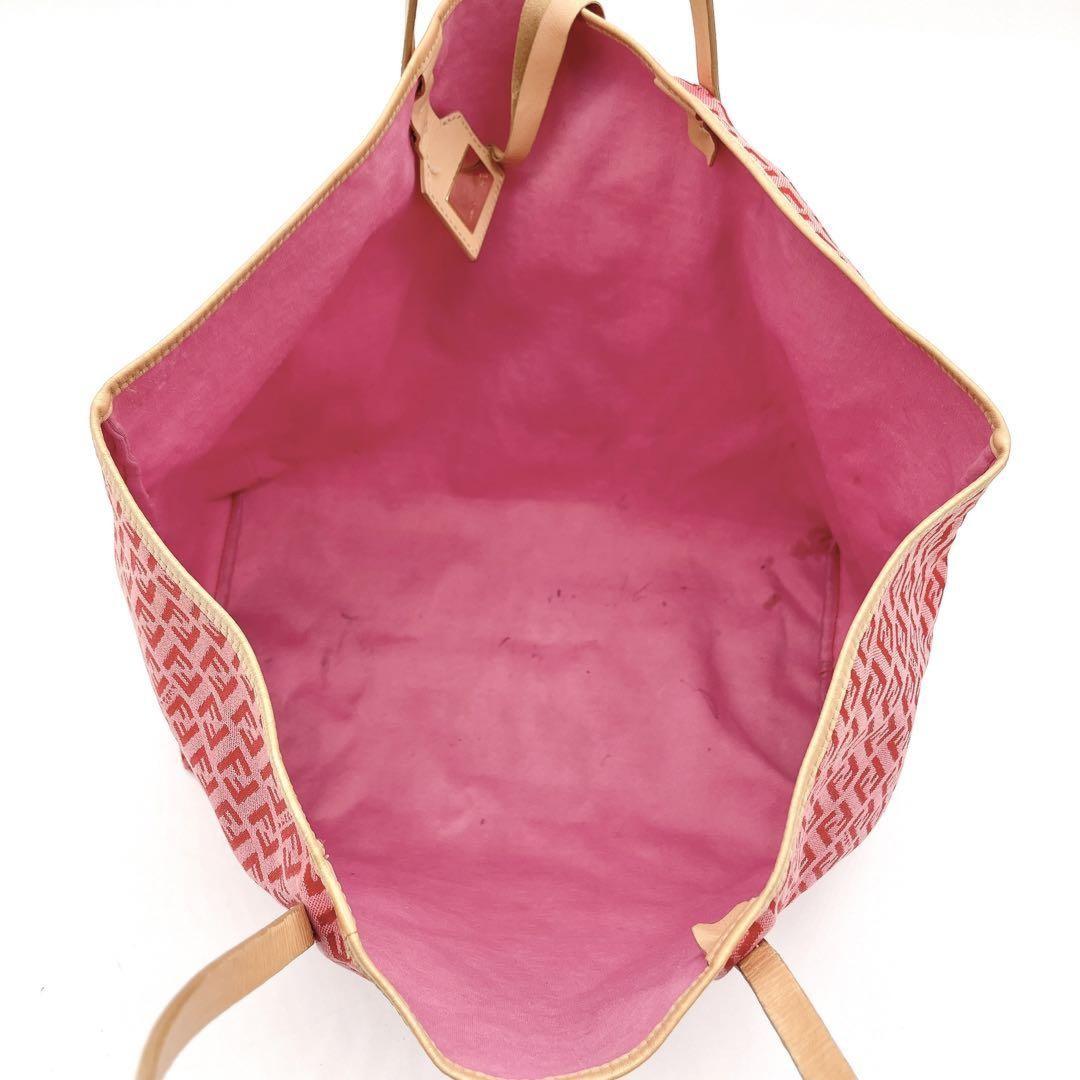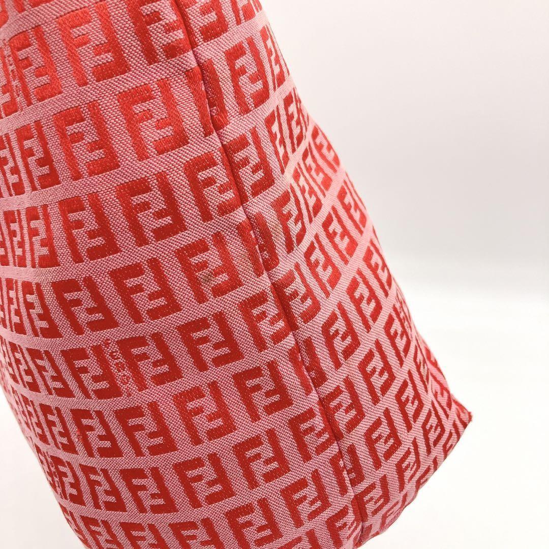 FENDI Hand Bag Tote Purse FF Zucchino Canvas Leather Red Pink Authentic
