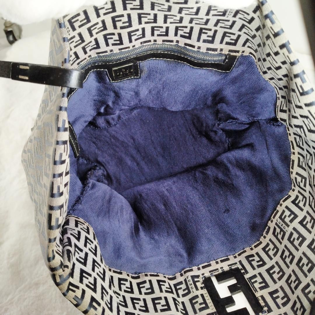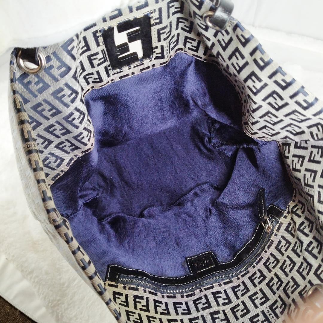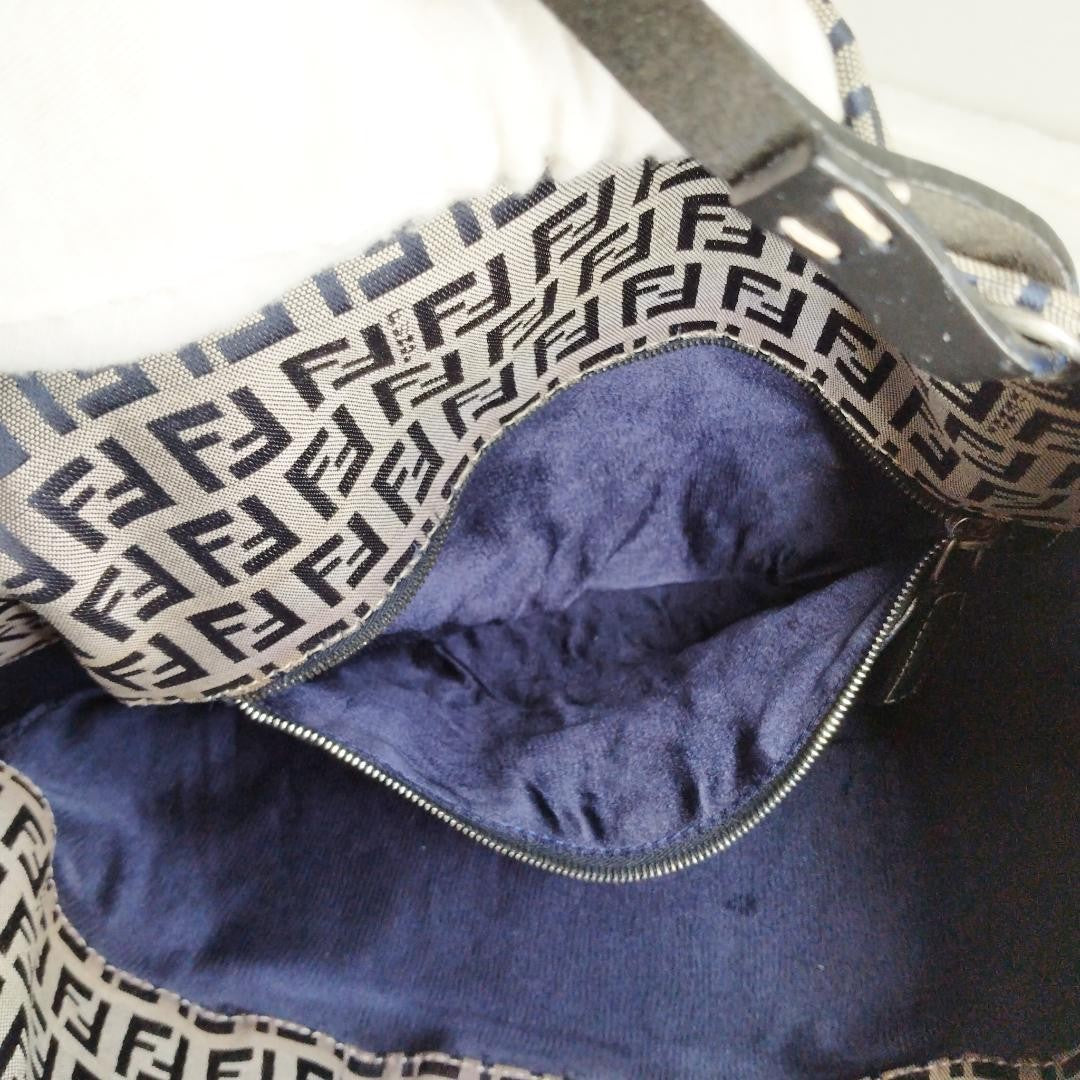 FENDI Hand Bag Tote Purse FF Zucchino Leather Black Authentic