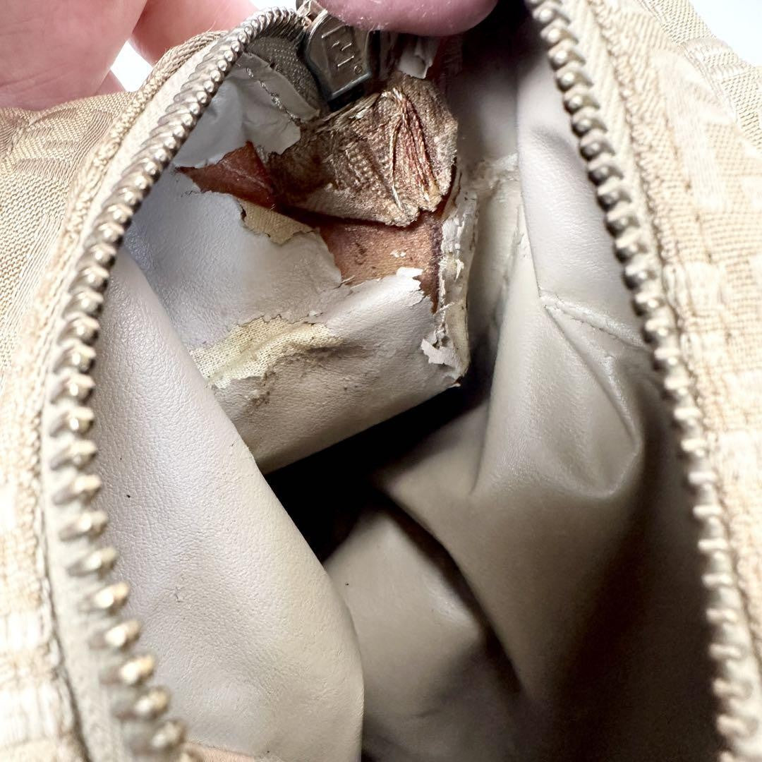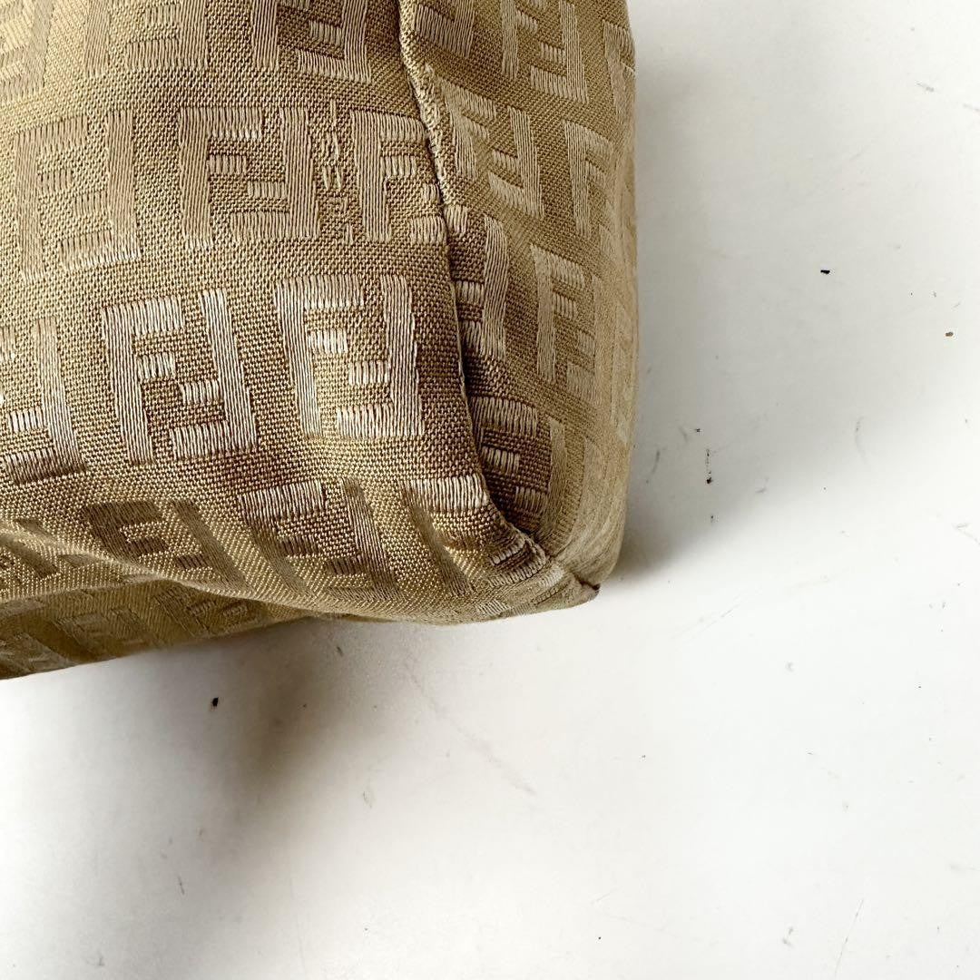 FENDI Hand Bag Tote Purse FF Zucchino Nylon Canvas Beige Authentic