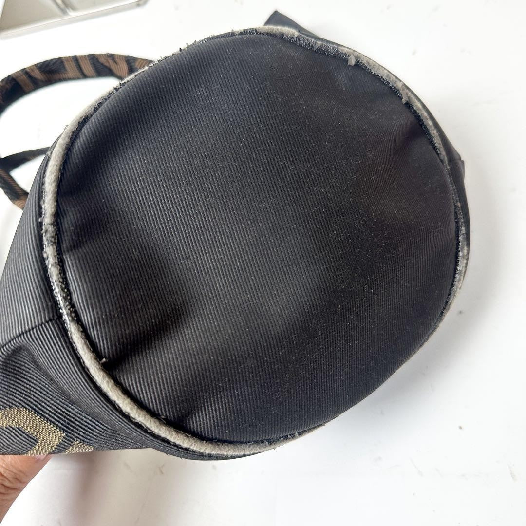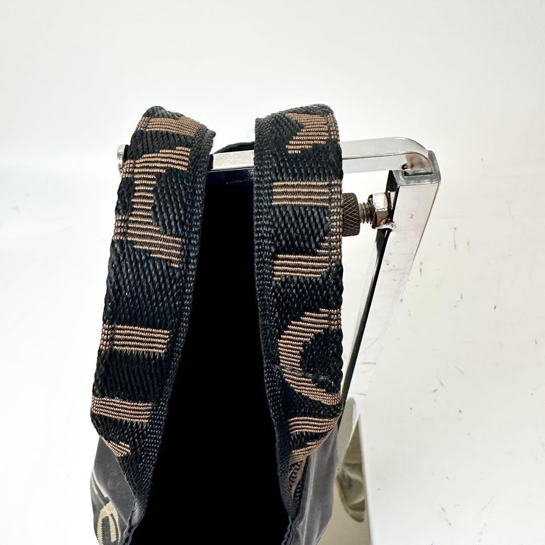 FENDI Hand Bag Tote Purse Logo Canvas Black Brown Authentic