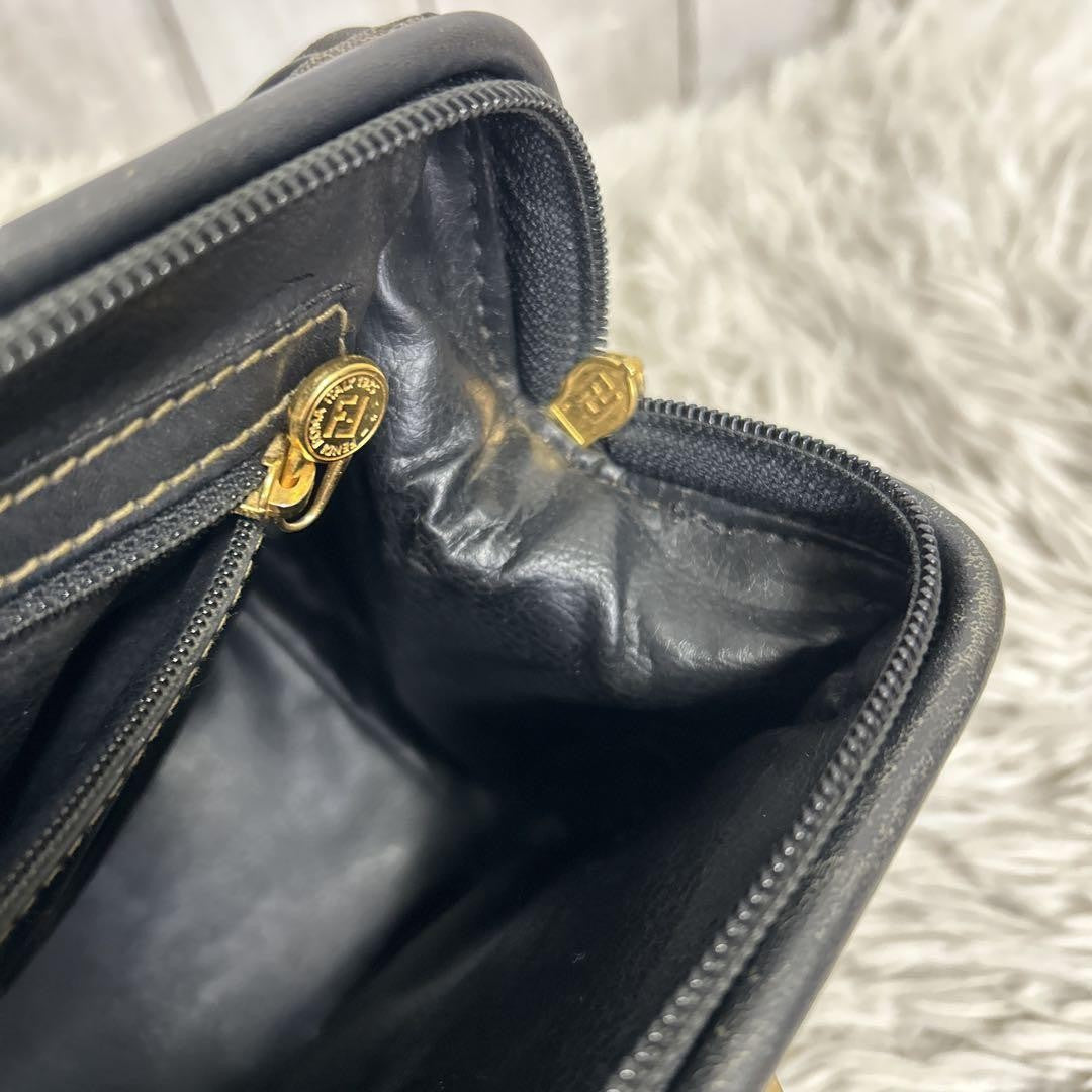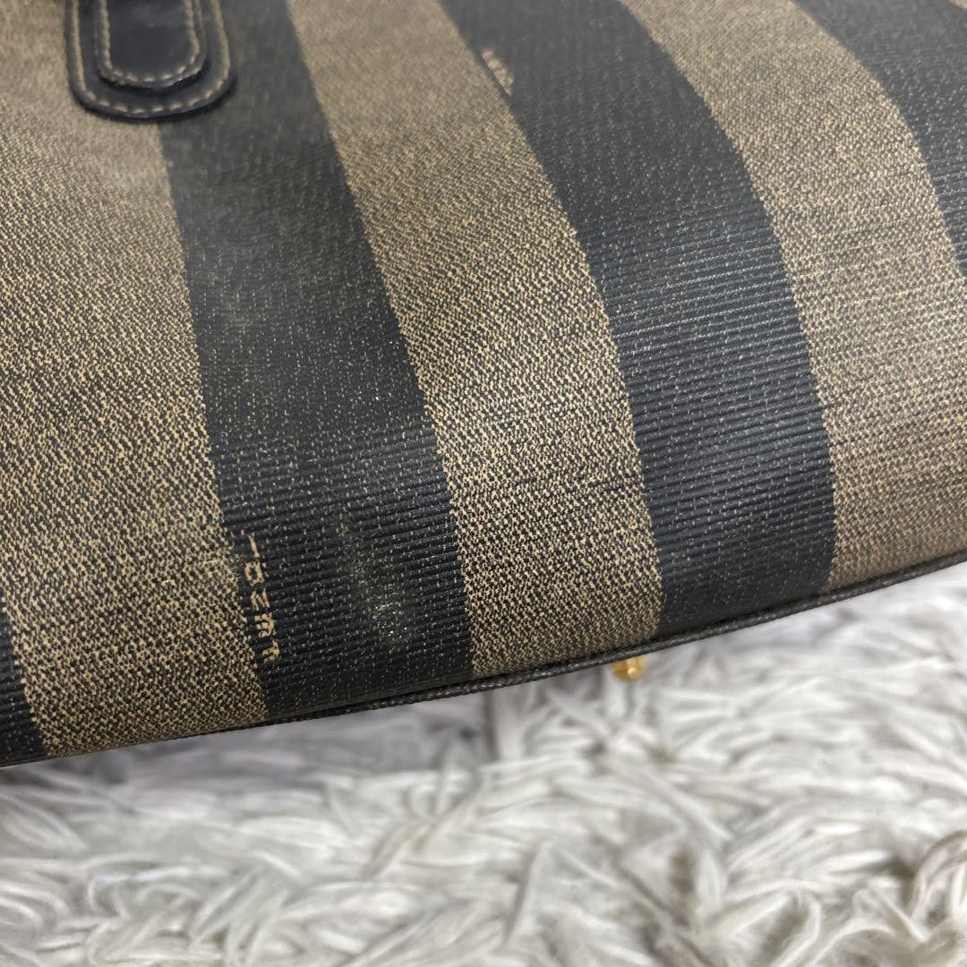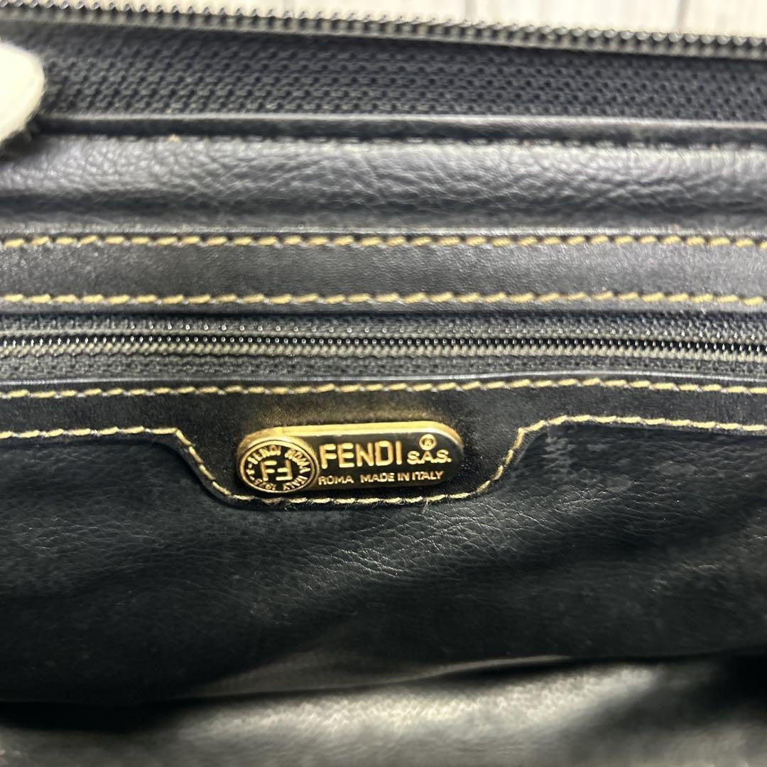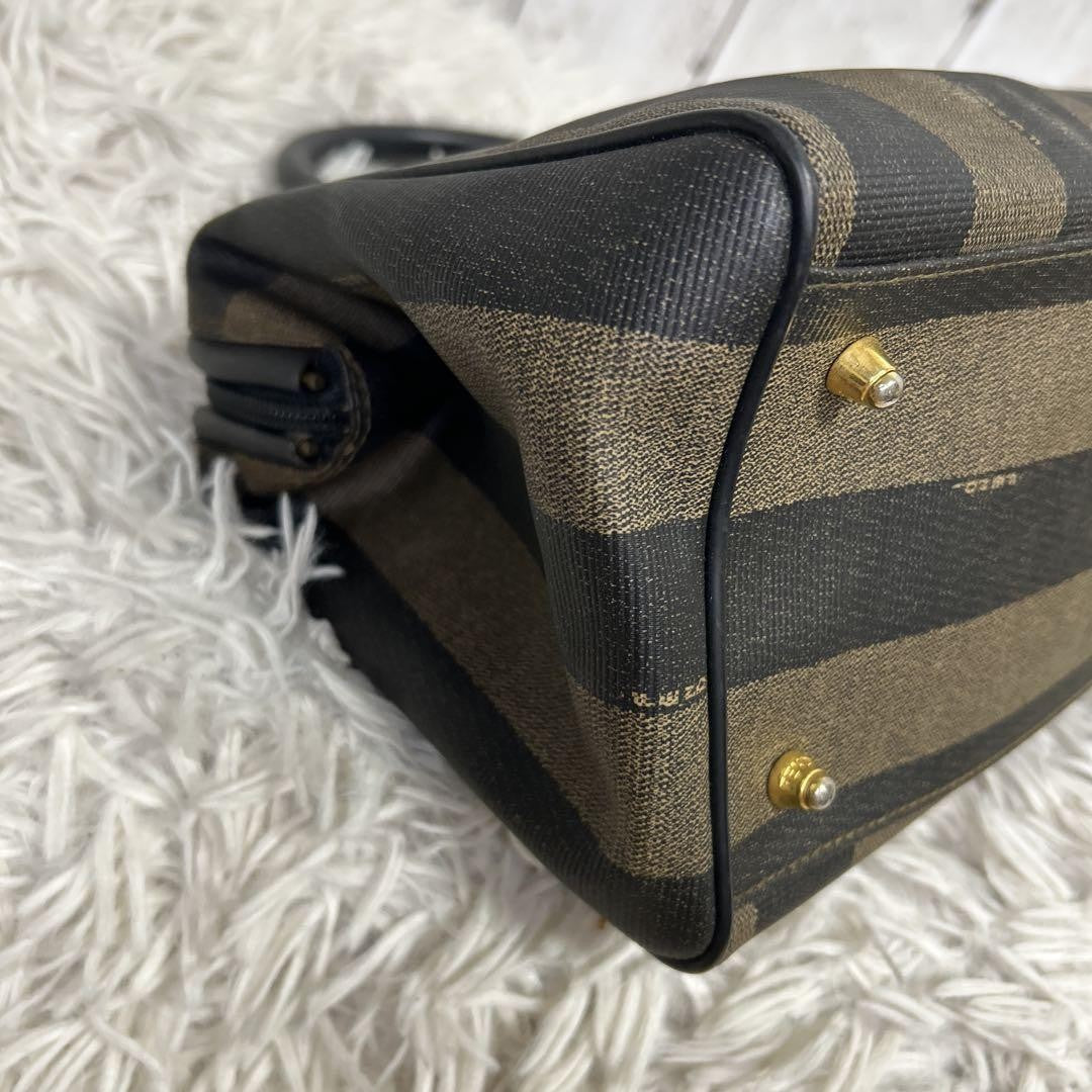 FENDI Hand Bag Tote Purse Mini Boston Bag FF Pecan PVC Leather Brown Black Auth