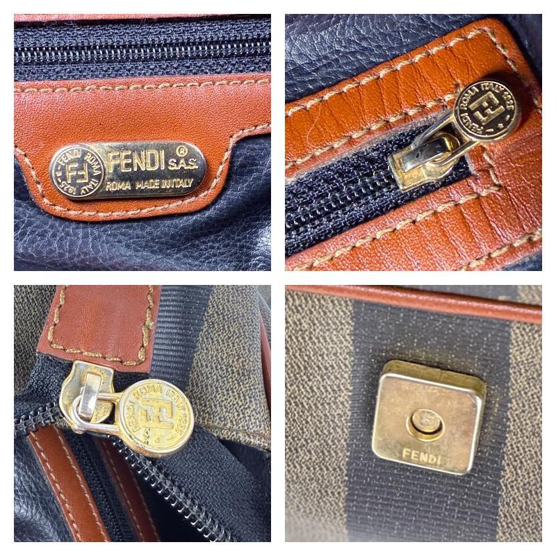 FENDI Hand Bag Tote Purse Mini Boston Pecan PVC Leather Black Authentic
