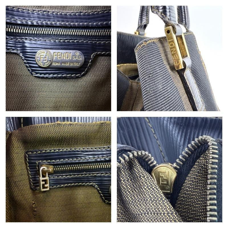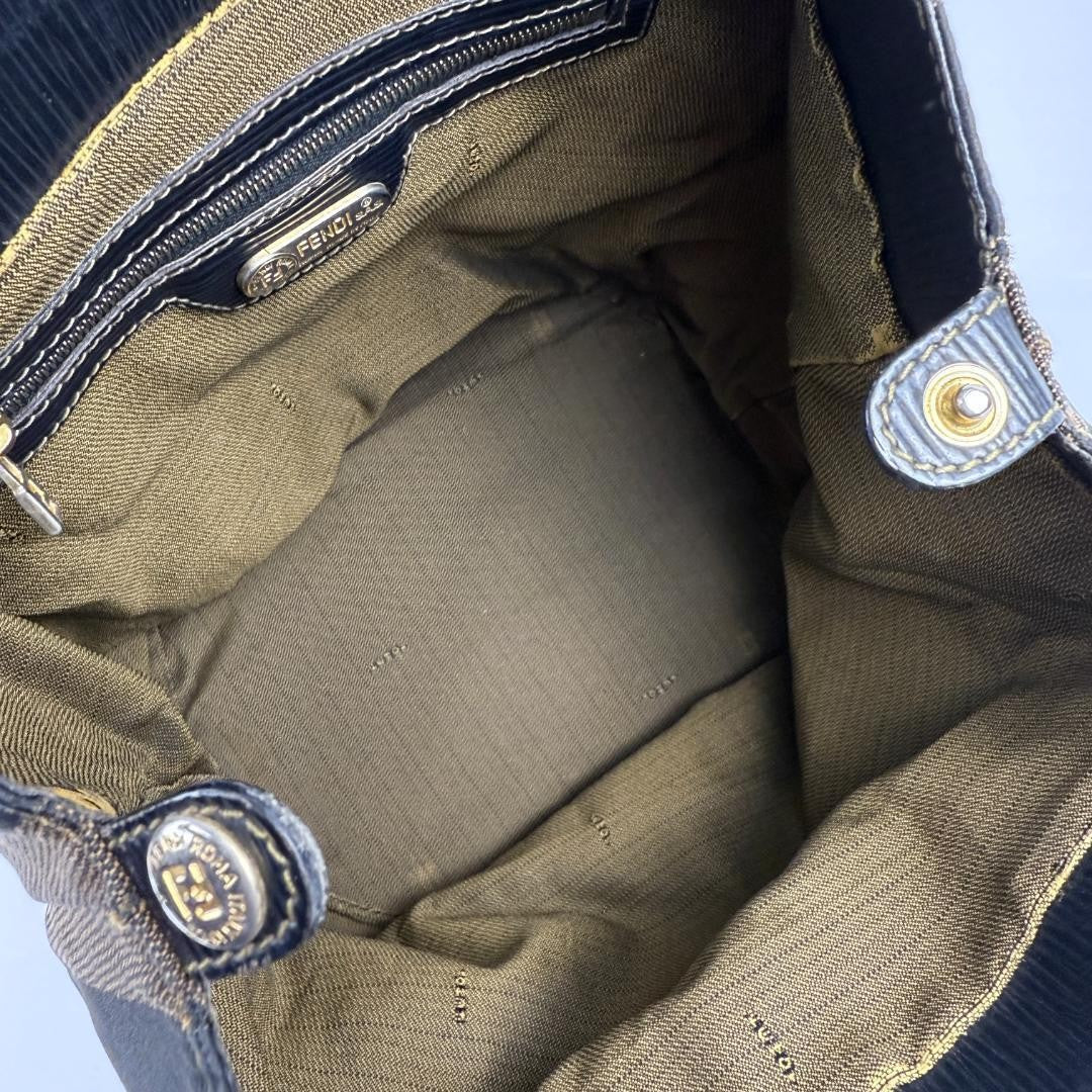 FENDI Hand Bag Tote Purse Pecan Canvas Leather Black Brown Authentic