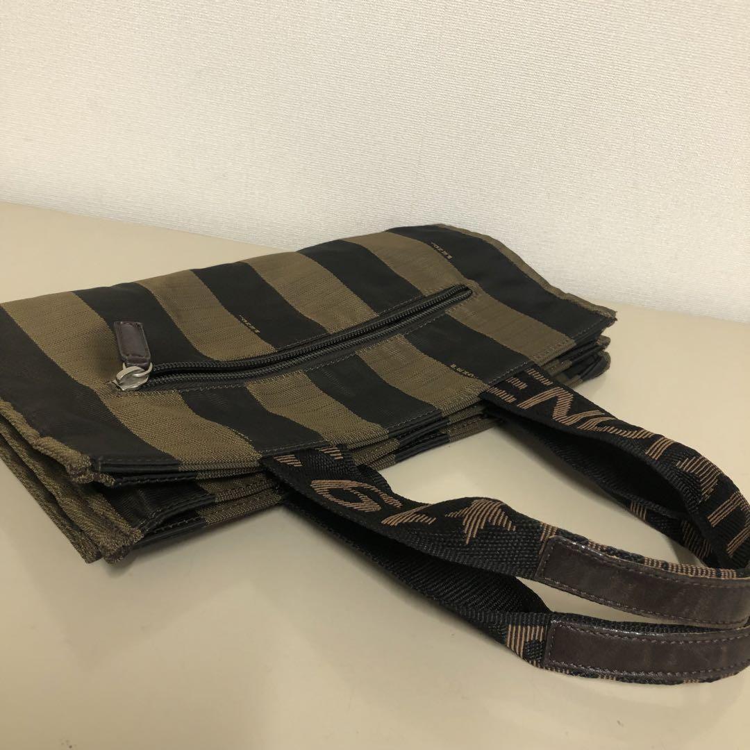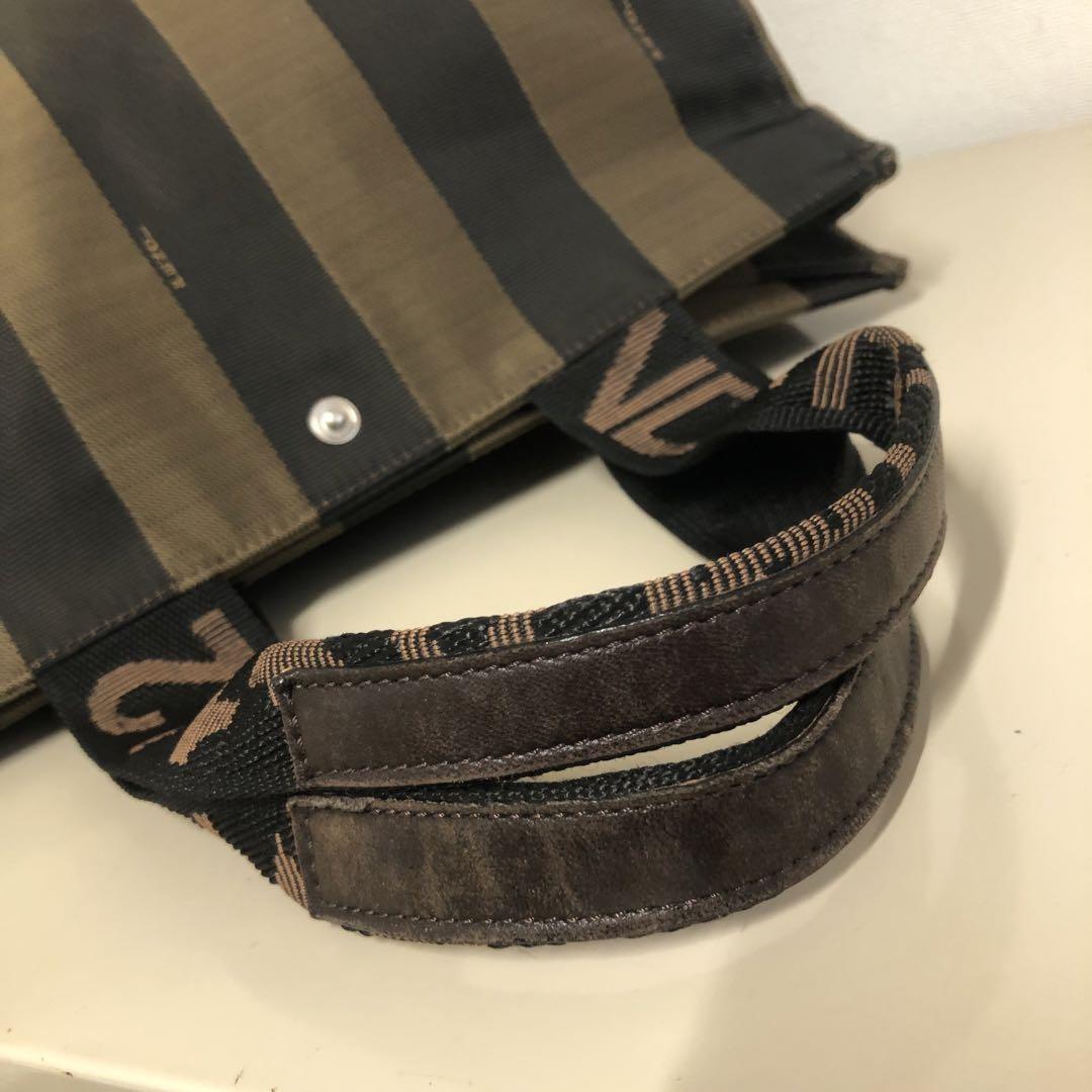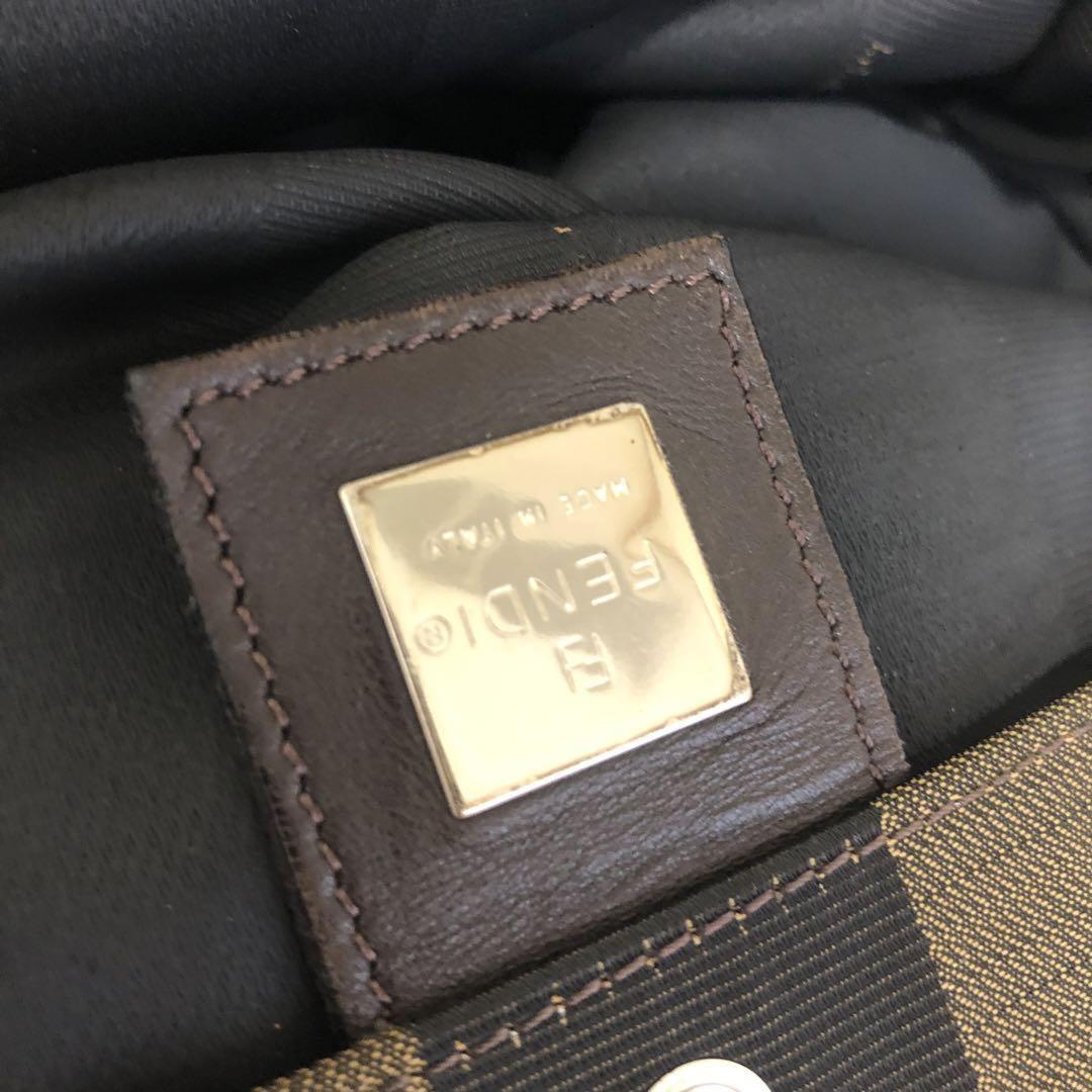 FENDI Hand Bag Tote Purse Pecan Nylon Leather PVC Canvas Khaki Authentic