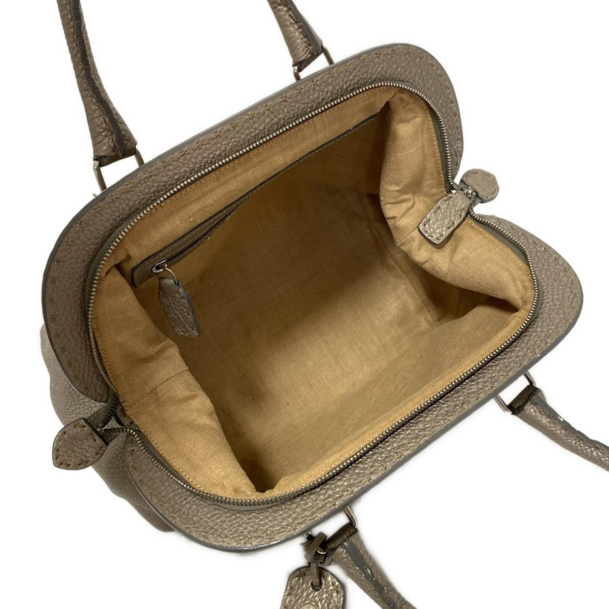 FENDI Hand Bag Tote Purse Selleria Leather Gray Authentic