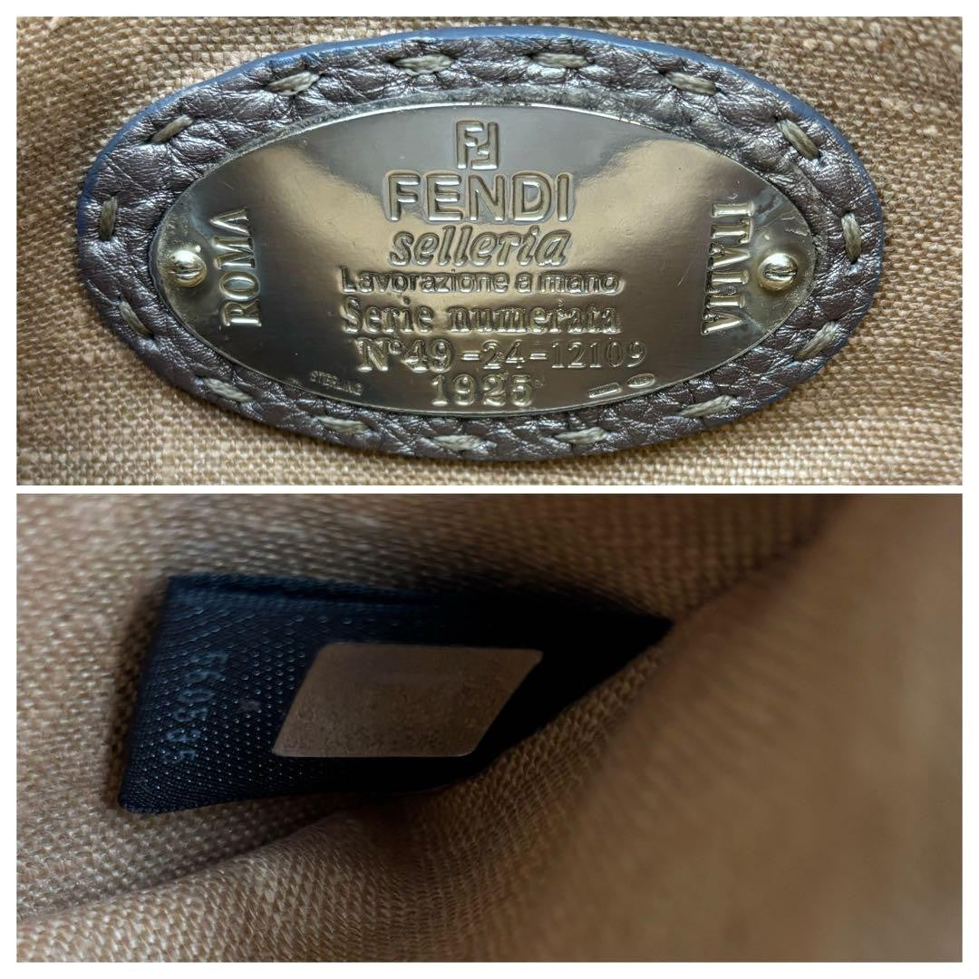 FENDI Hand Bag Tote Purse Selleria Leather Greige Authentic