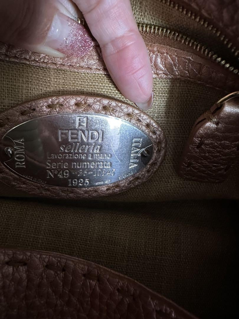 FENDI Hand Bag Tote Purse Selleria Leather Rose Gold Authentic