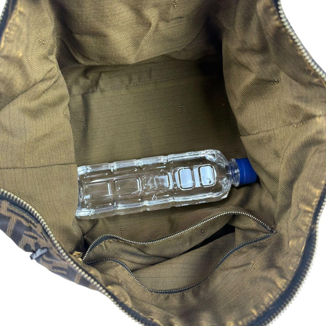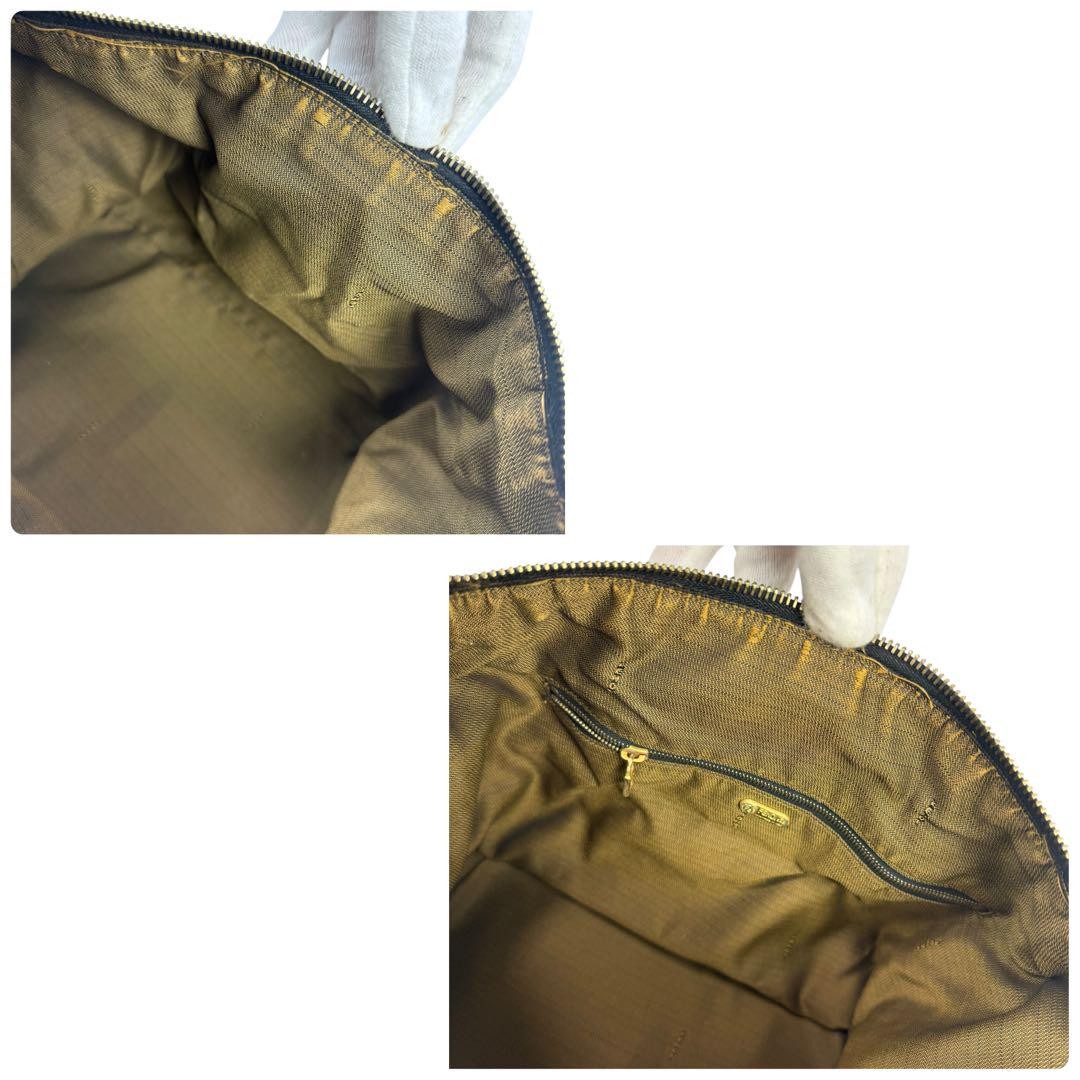 FENDI Hand Bag Tote Purse Vanity FF Zucca Canvas Leather Khaki Authentic