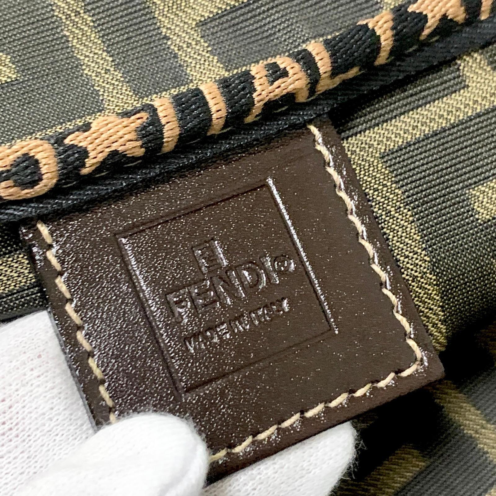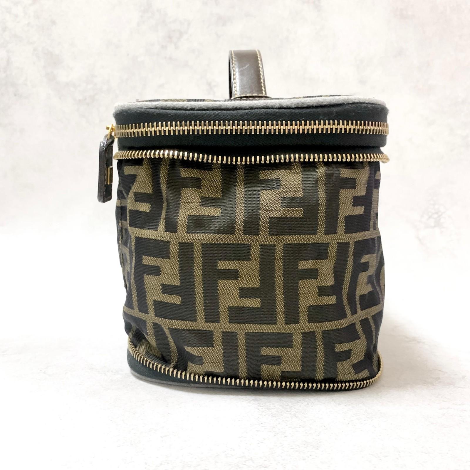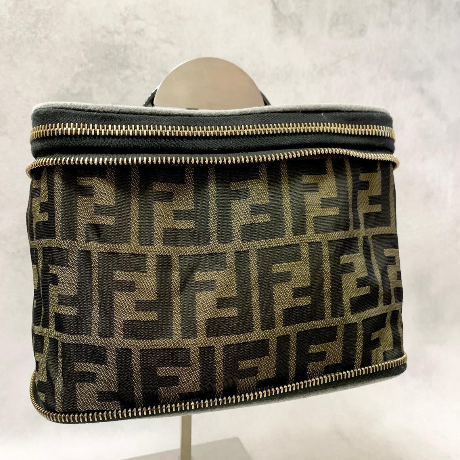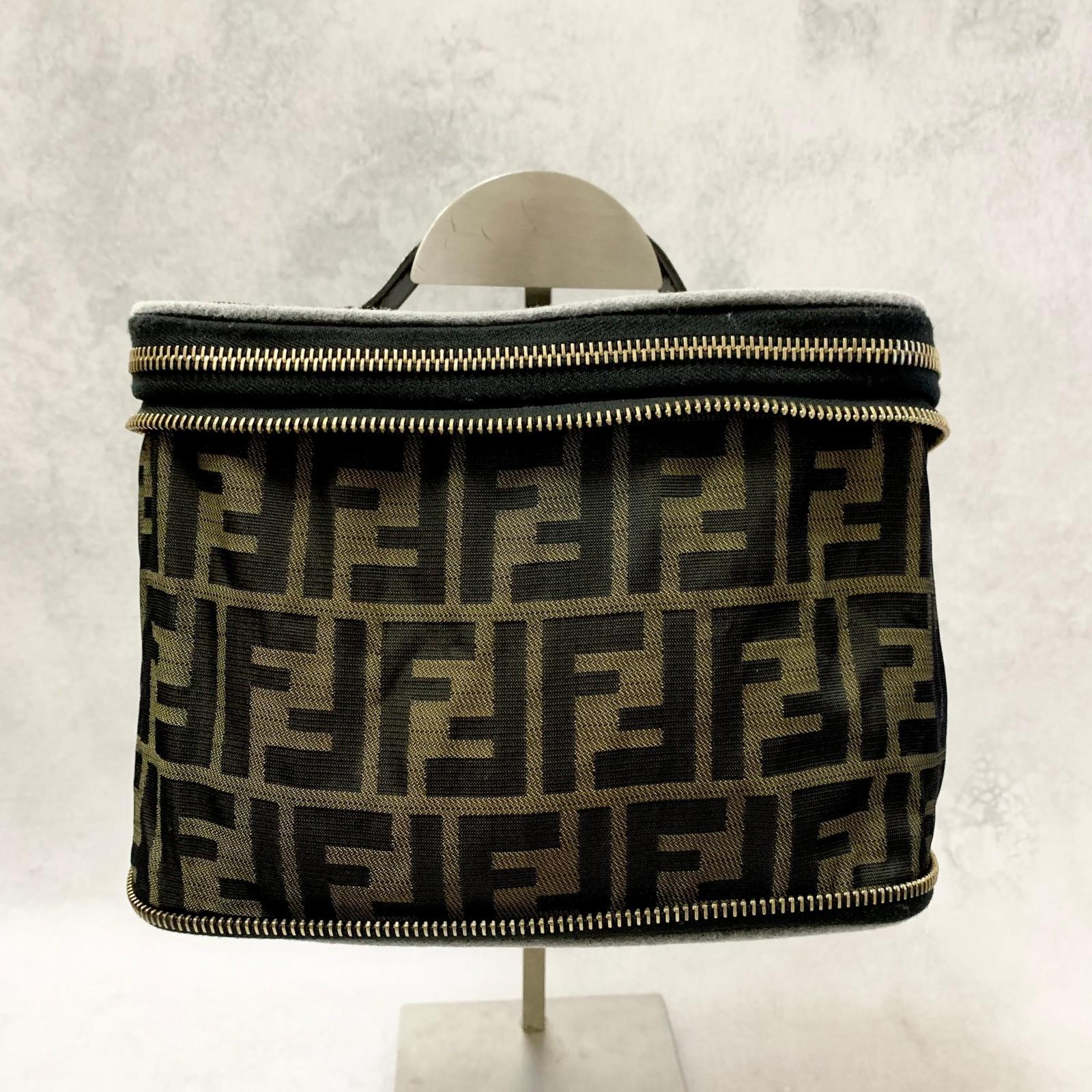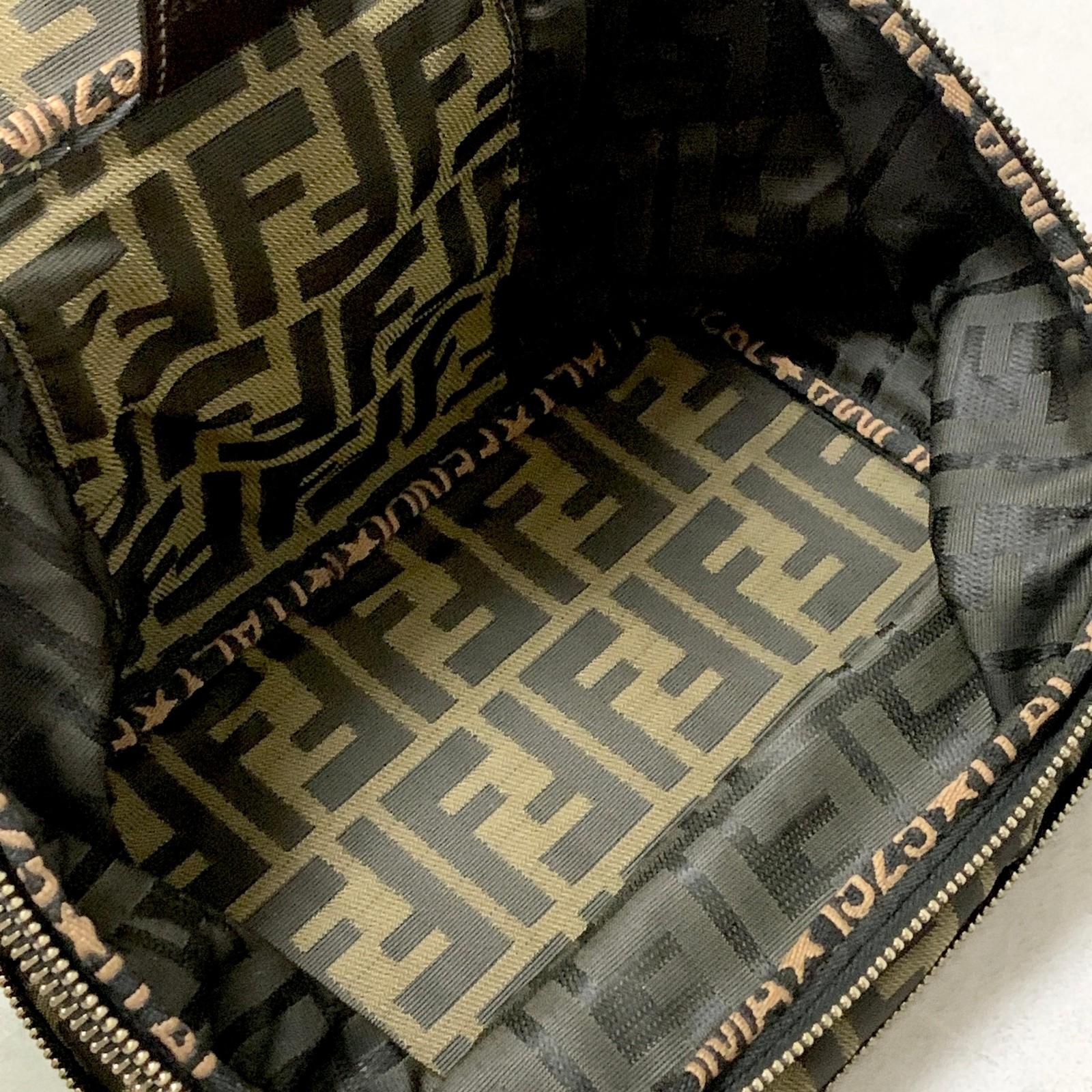 FENDI Hand Bag Vanity Pouch FF Zucca Purse Canvas Brown Authentic Used Unisex
