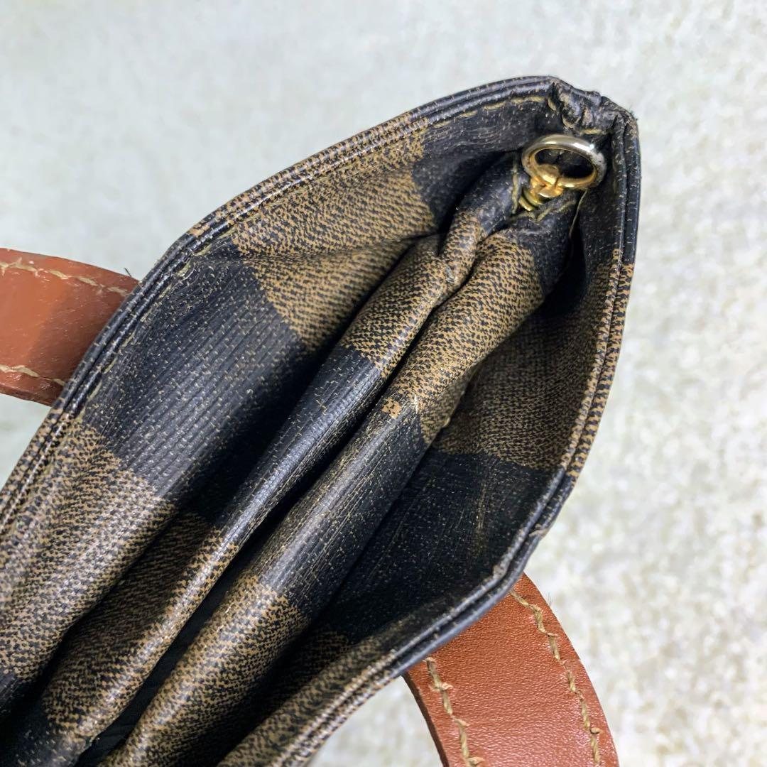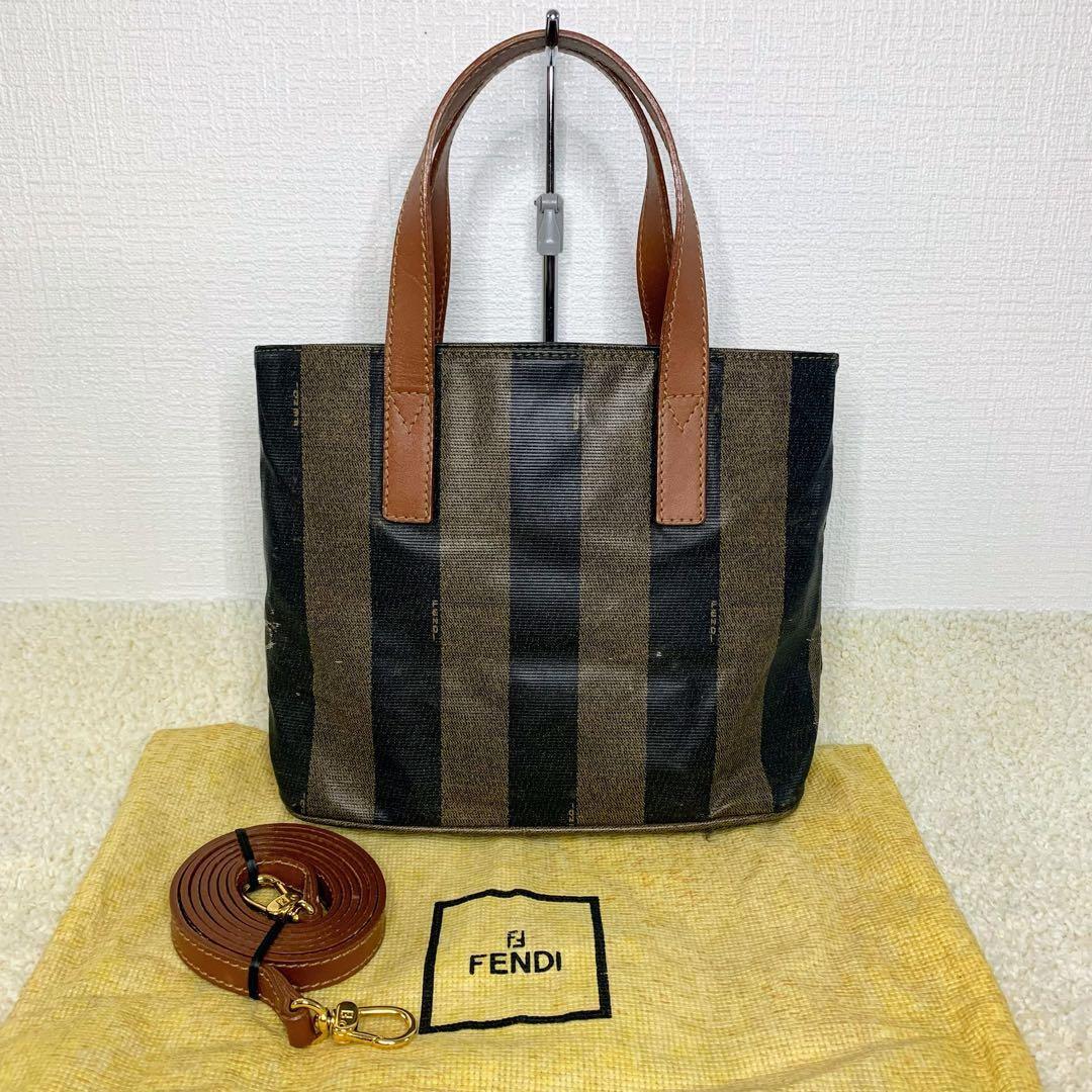FENDI Hand Shoulder Bag Tote Purse 2way FF Pecan Stripe Authentic