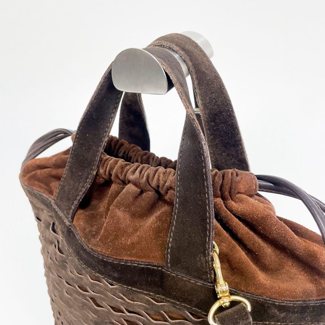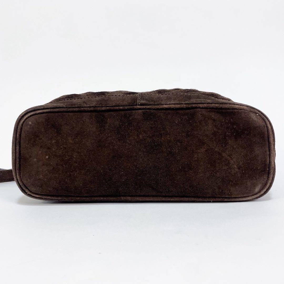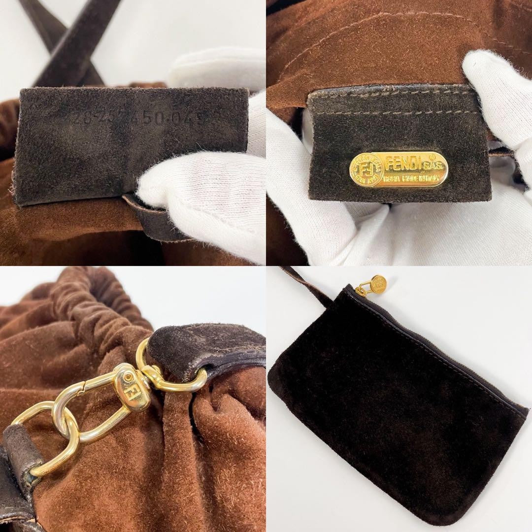 FENDI Hand Shoulder Bag Tote Purse 2way FF Suede Leather Brown Authentic