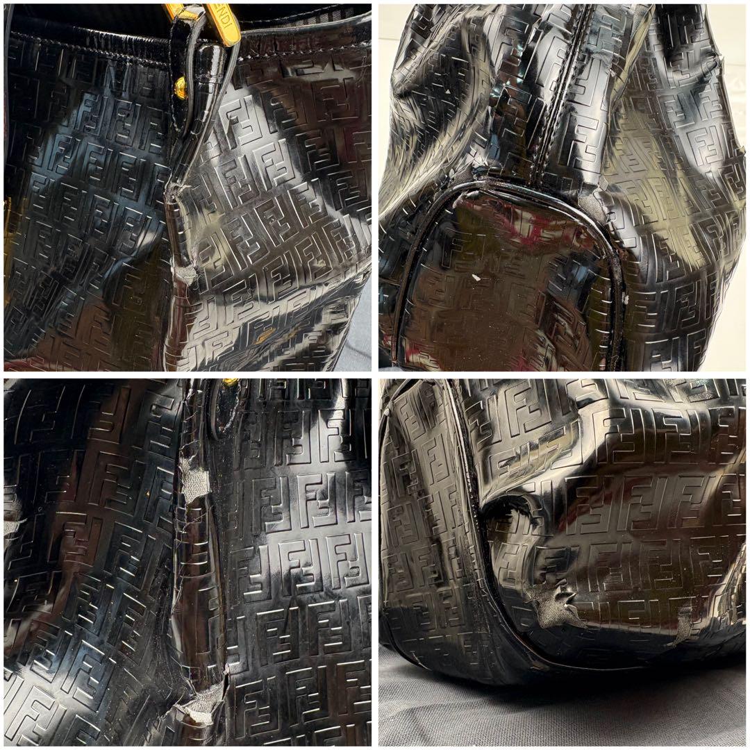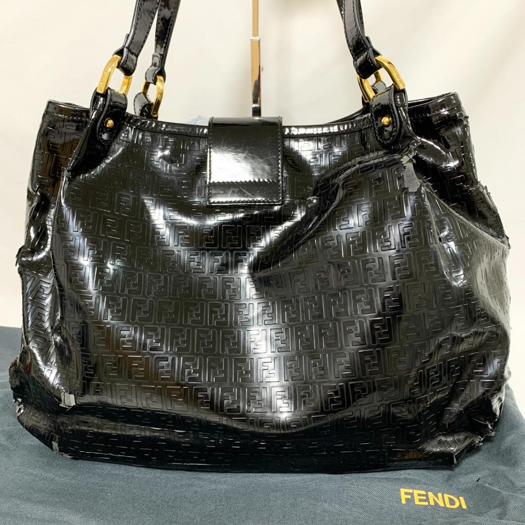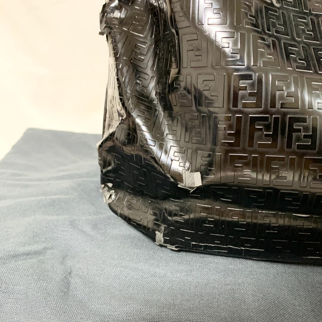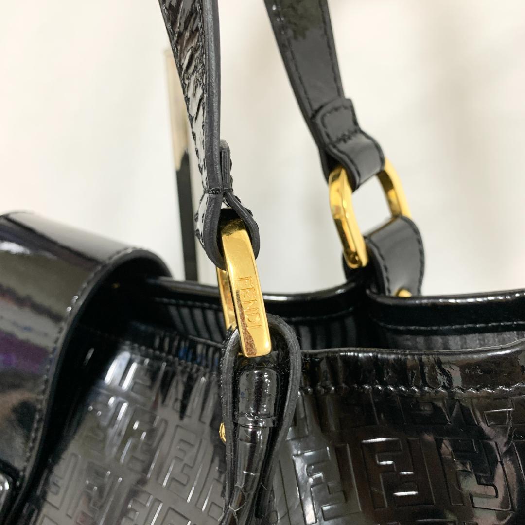 FENDI Hand Shoulder Bag Tote Purse FF Zucca Black Authentic