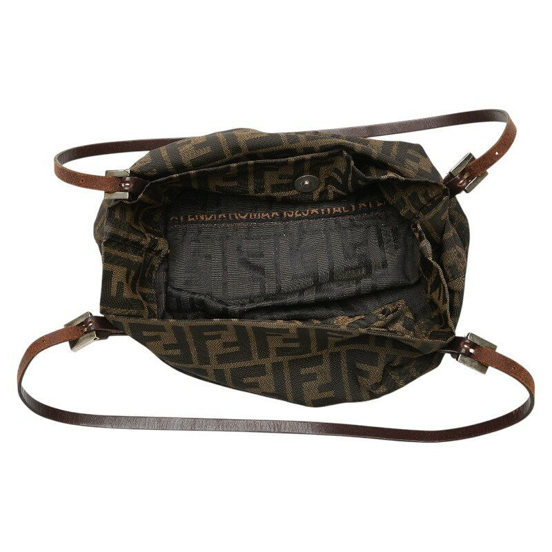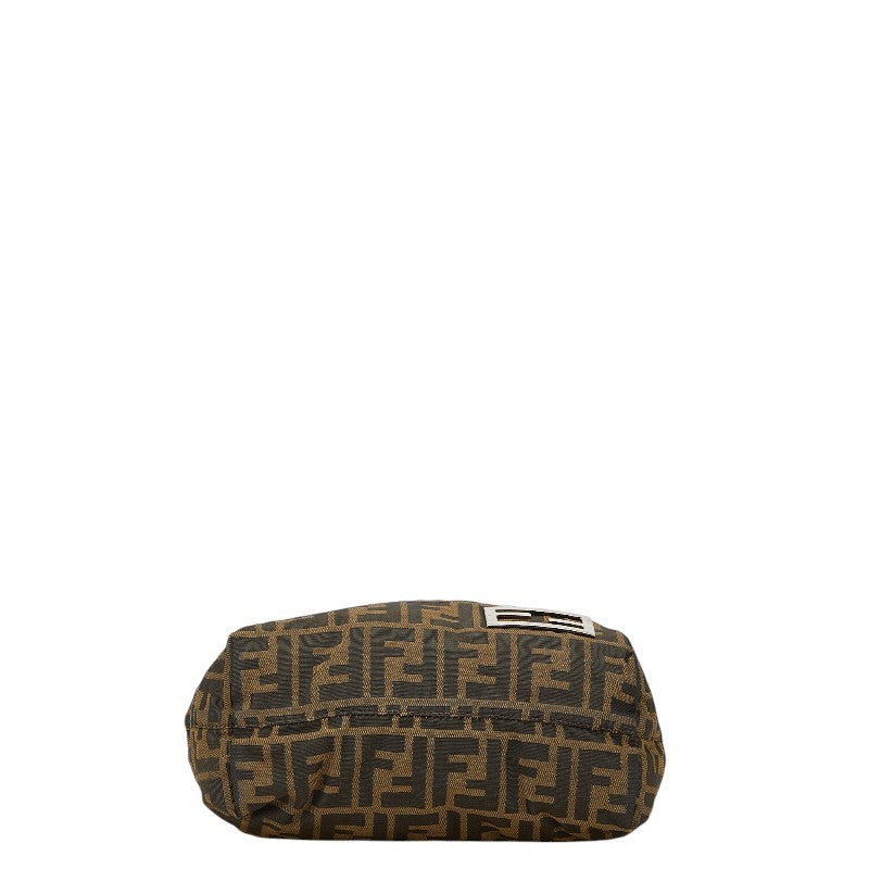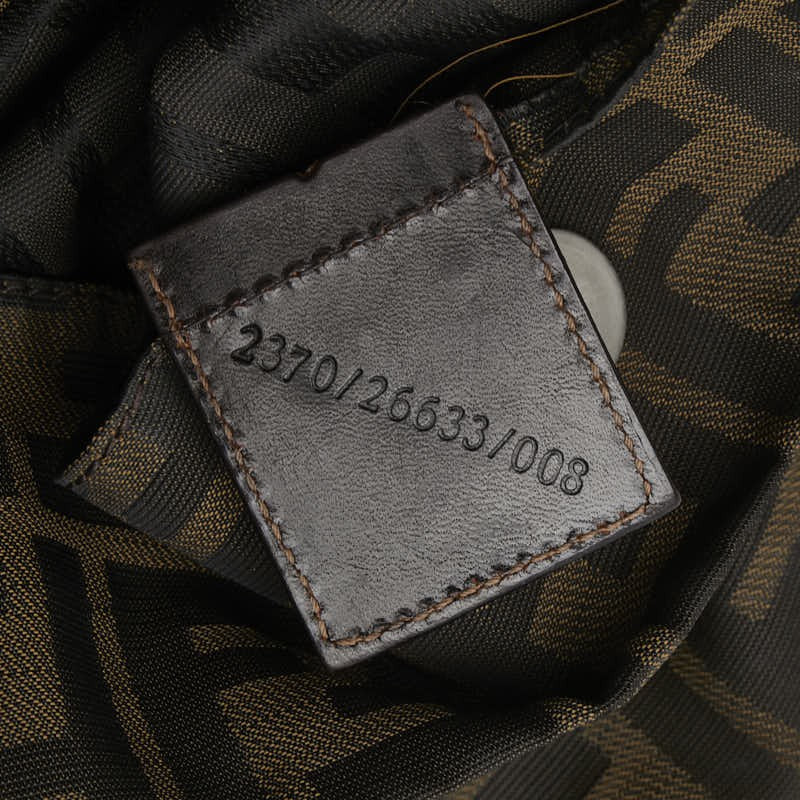 FENDI Hand Shoulder Bag Tote Purse FF Zucca Nylon Leather Khaki Brown Authentic