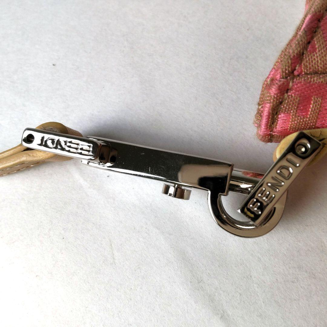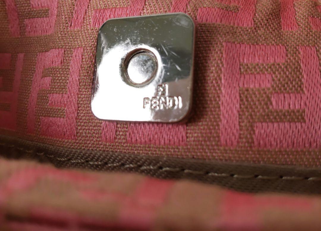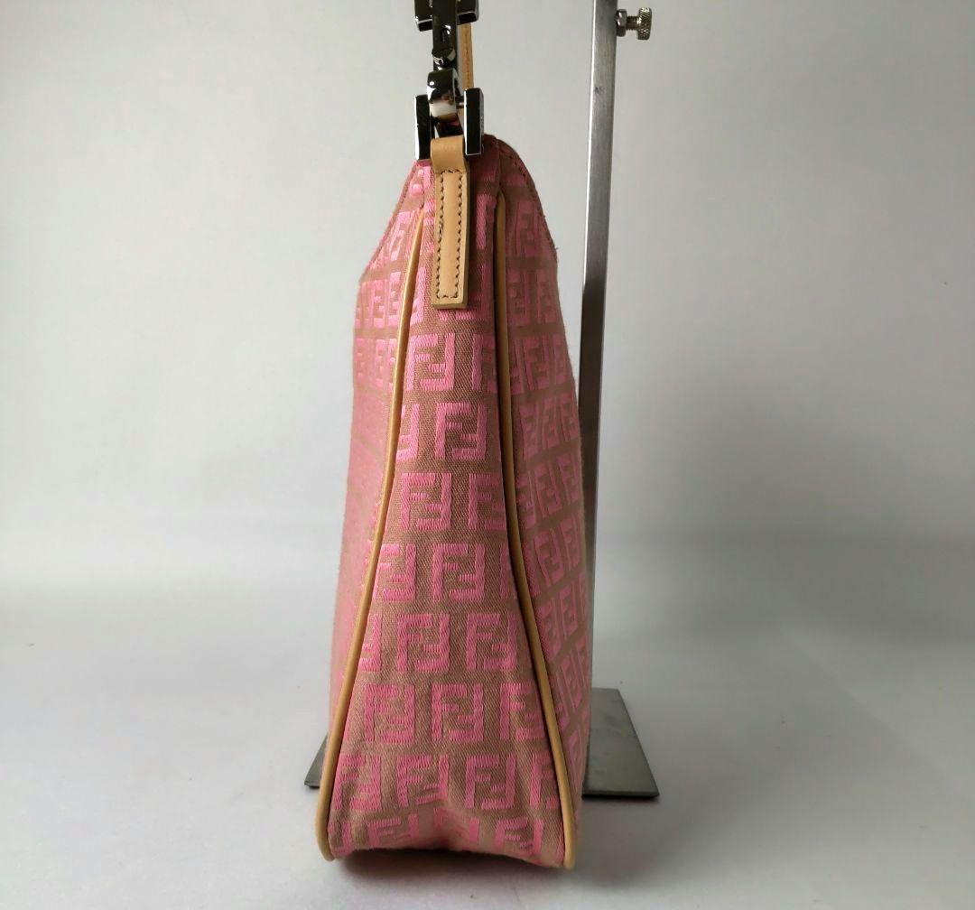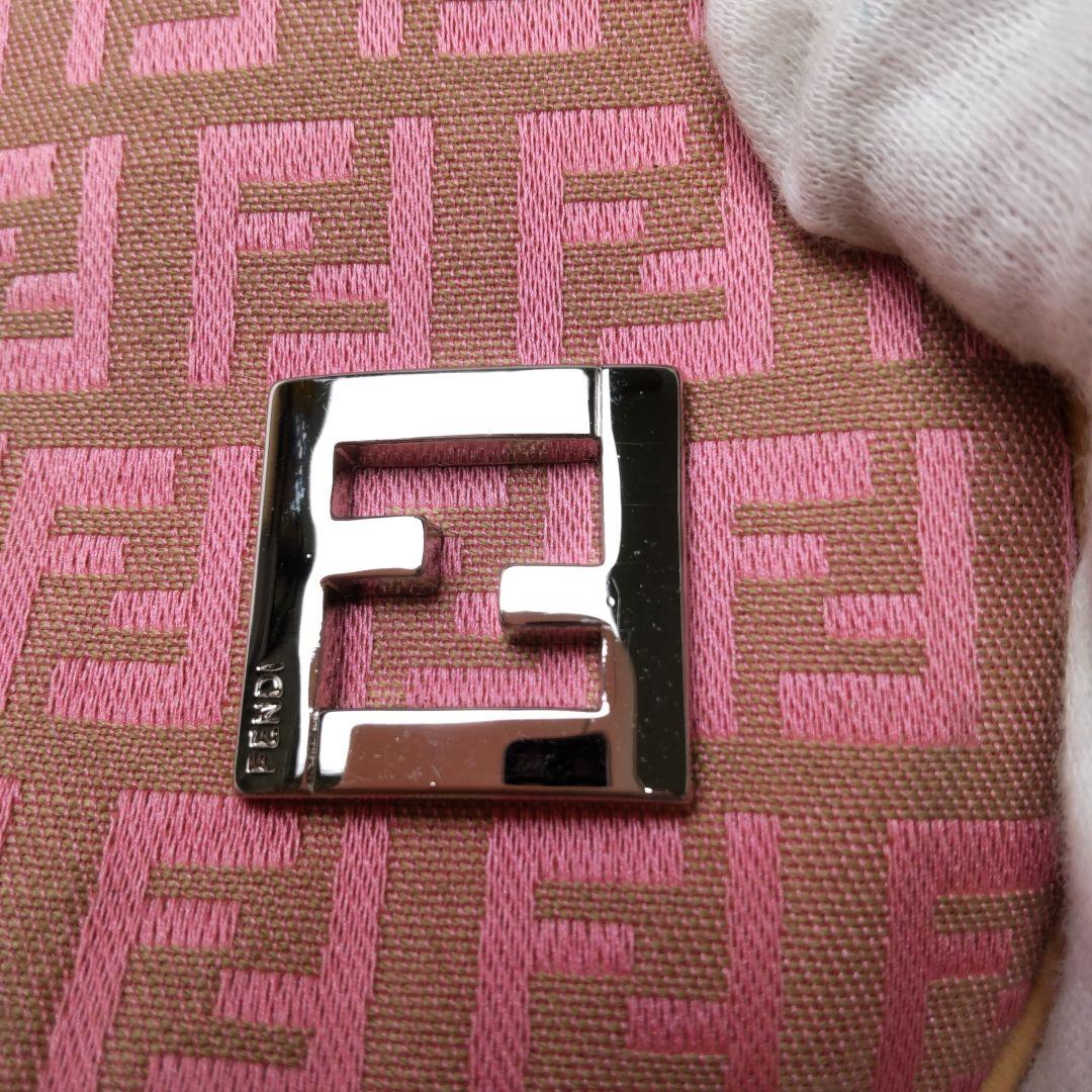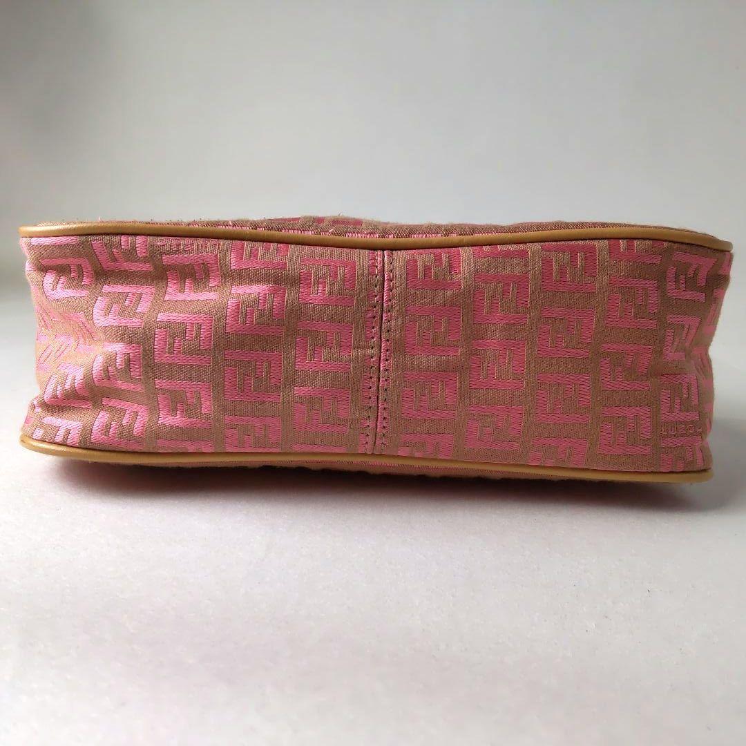 FENDI Hand Shoulder Bag Tote Purse FF Zucchino Canvas Leather Pink Beige Auth